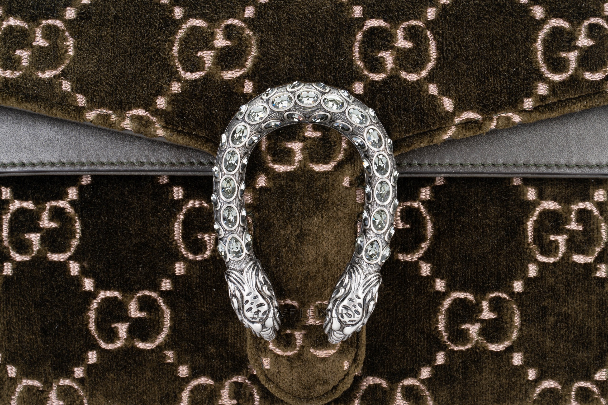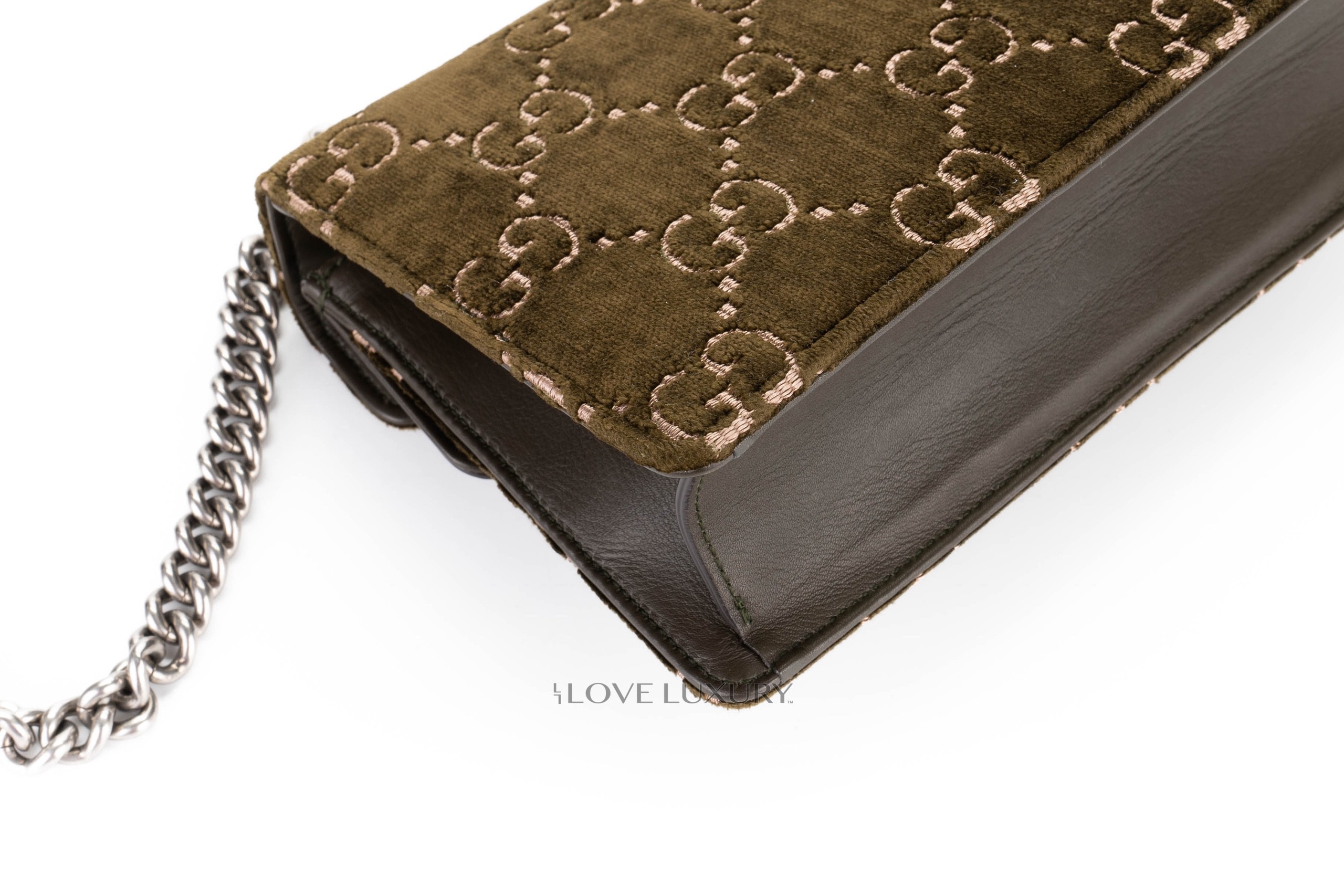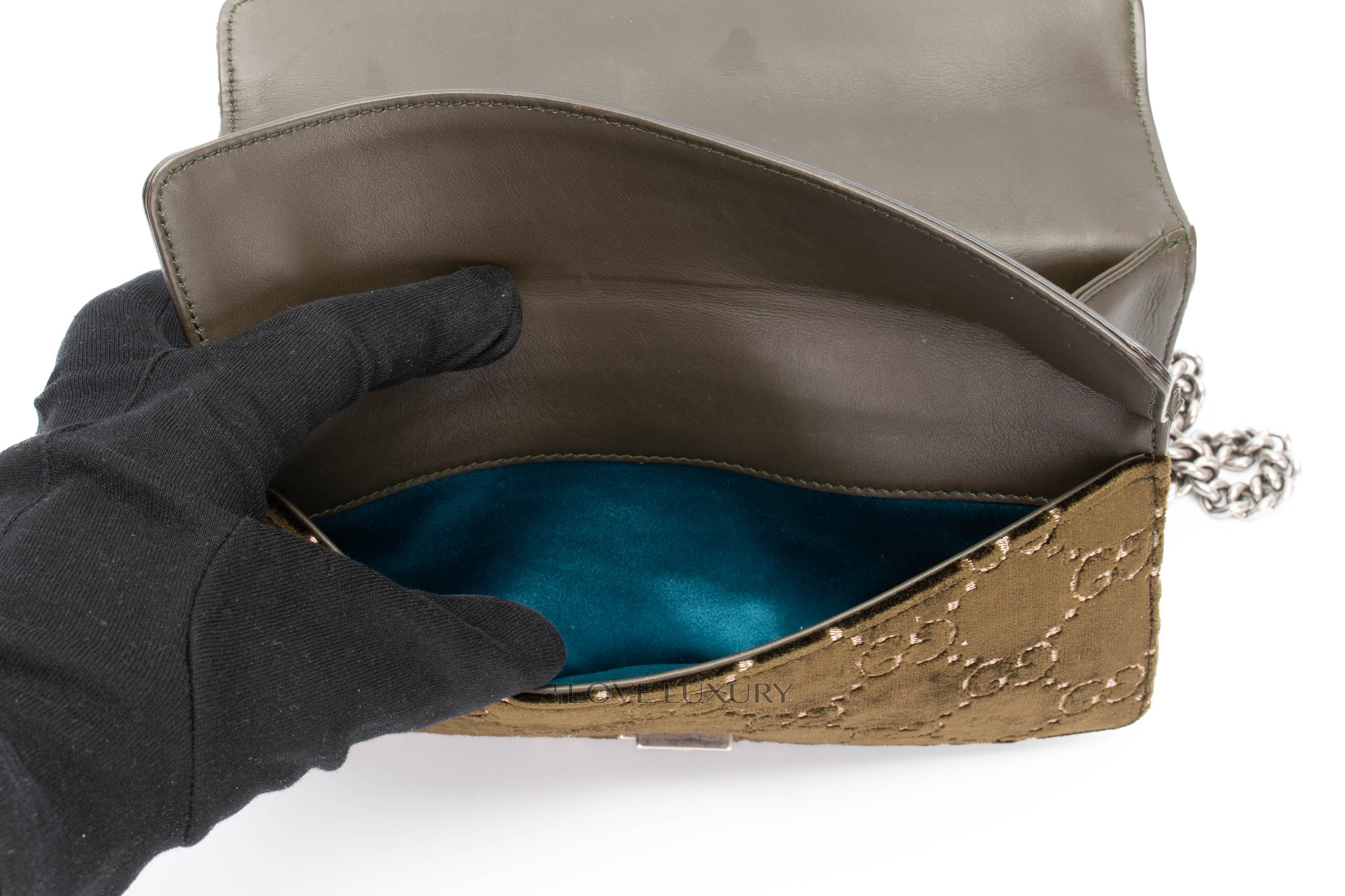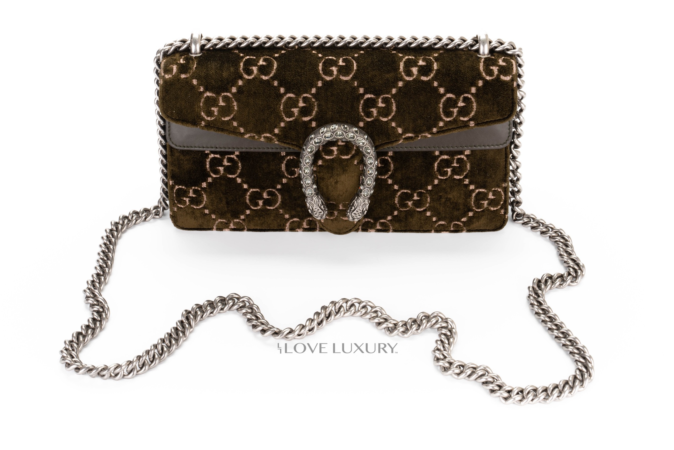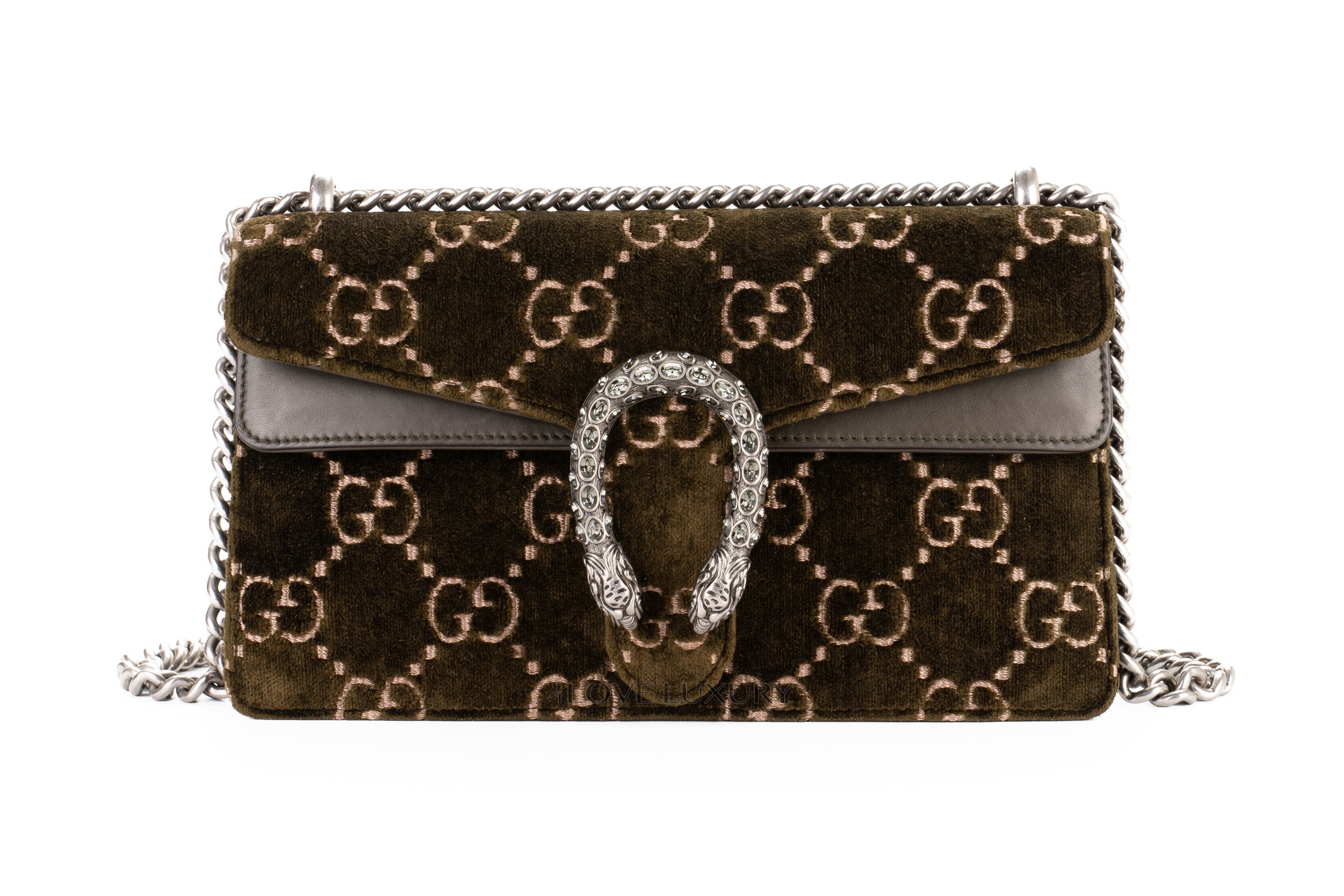 Gucci Dionysus Small Dark Green GG Print Velvet Shoulder Bag