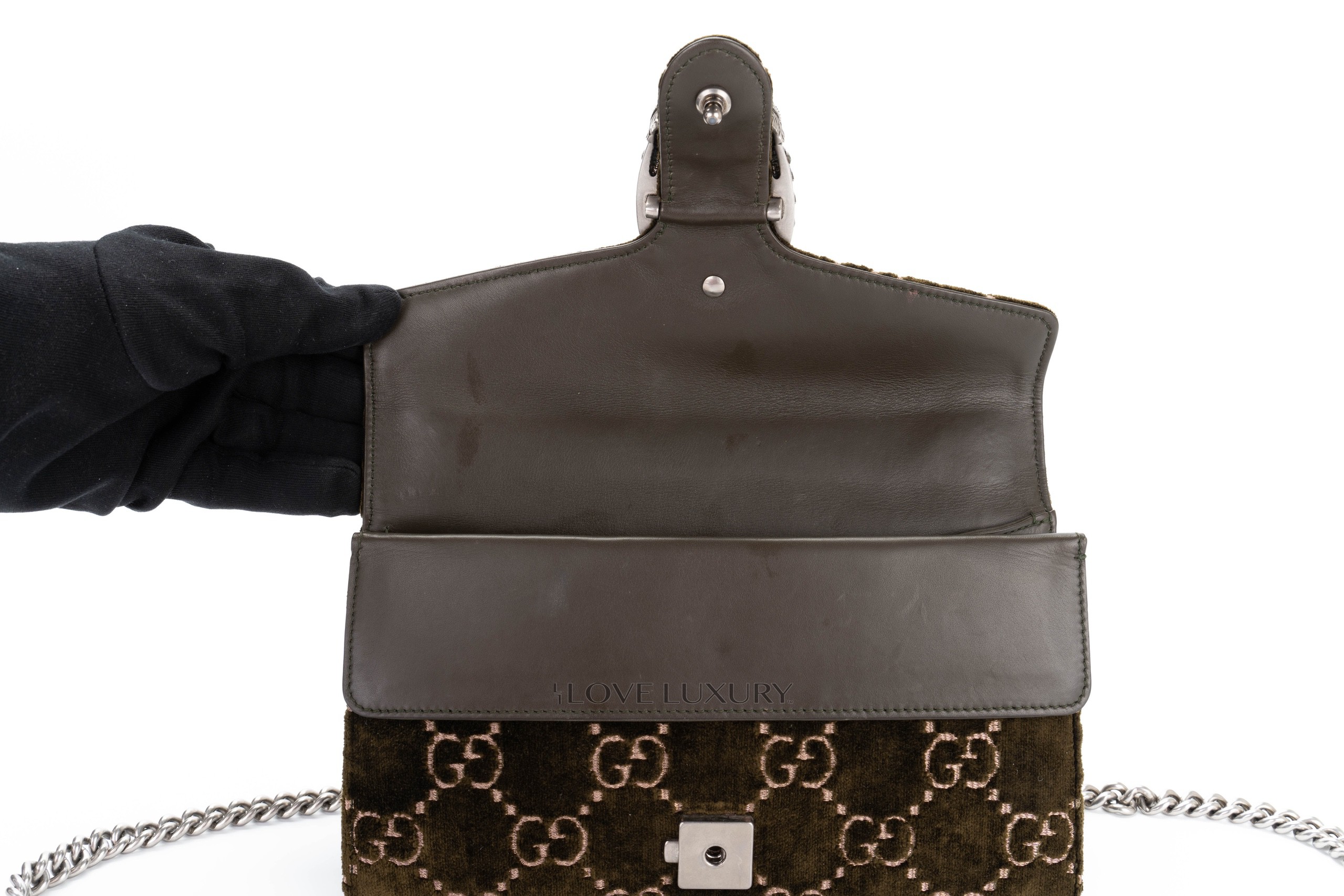 Gucci Dionysus Small Dark Green GG Print Velvet Shoulder Bag / Excellent Pre-Loved condition