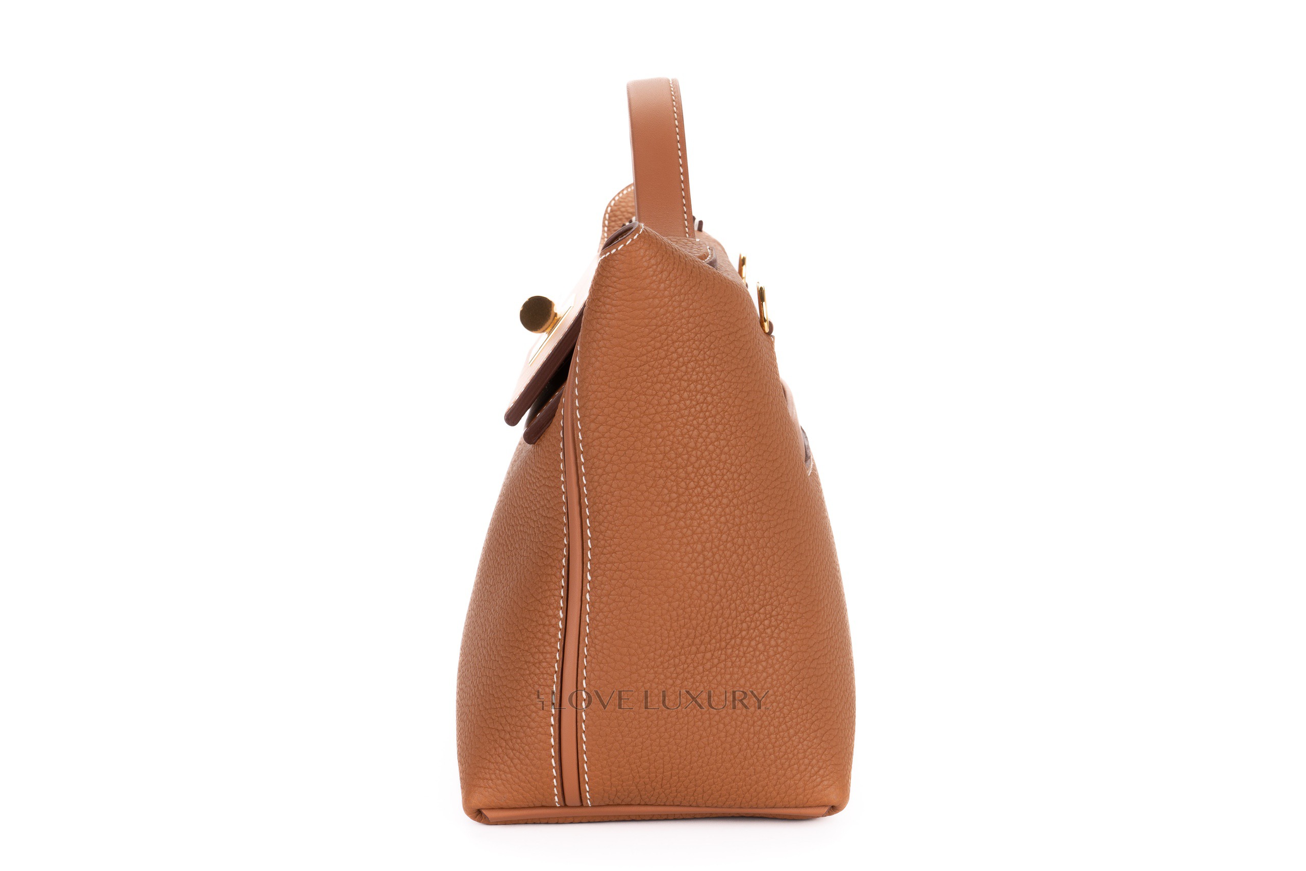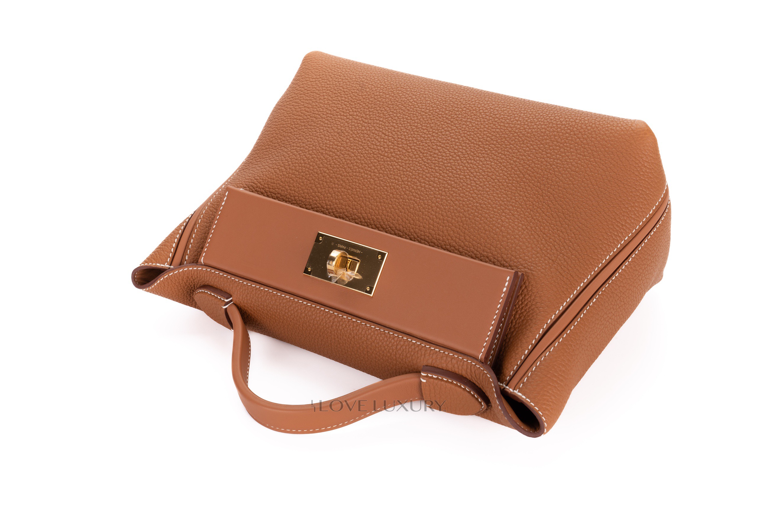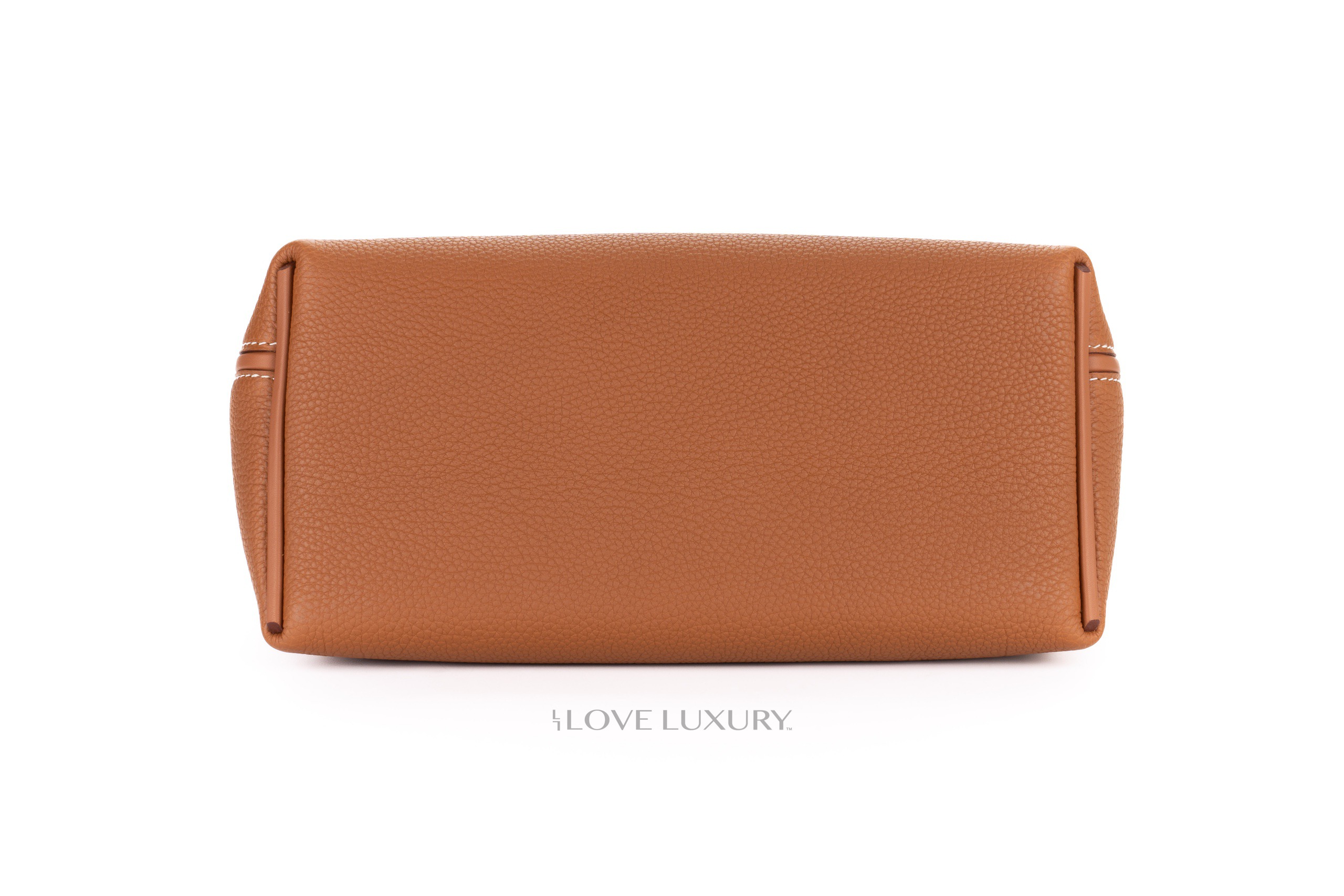 This specific model from Hermès is a model we do not usually stock, but we couldn’t resist the classic colour of Gold. Its a spacious bag that fits a lot and its perfect for daily use. There is a lovely flat top handle and a detachable strap. This bag combines both Togo and Swift leather and is complememted with gold hardware. It’s a new unworn piece. Comes as a full set including a copy receipt.