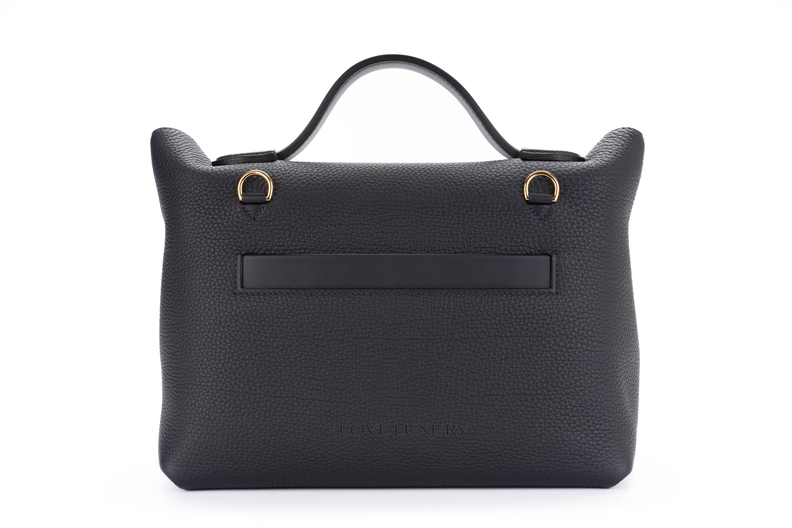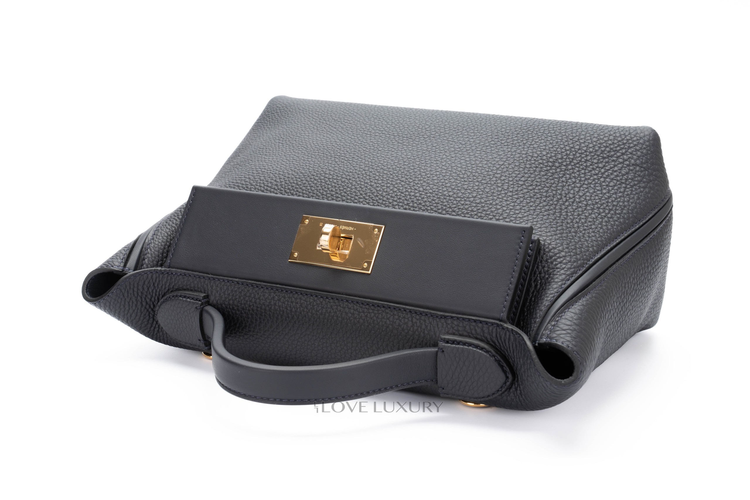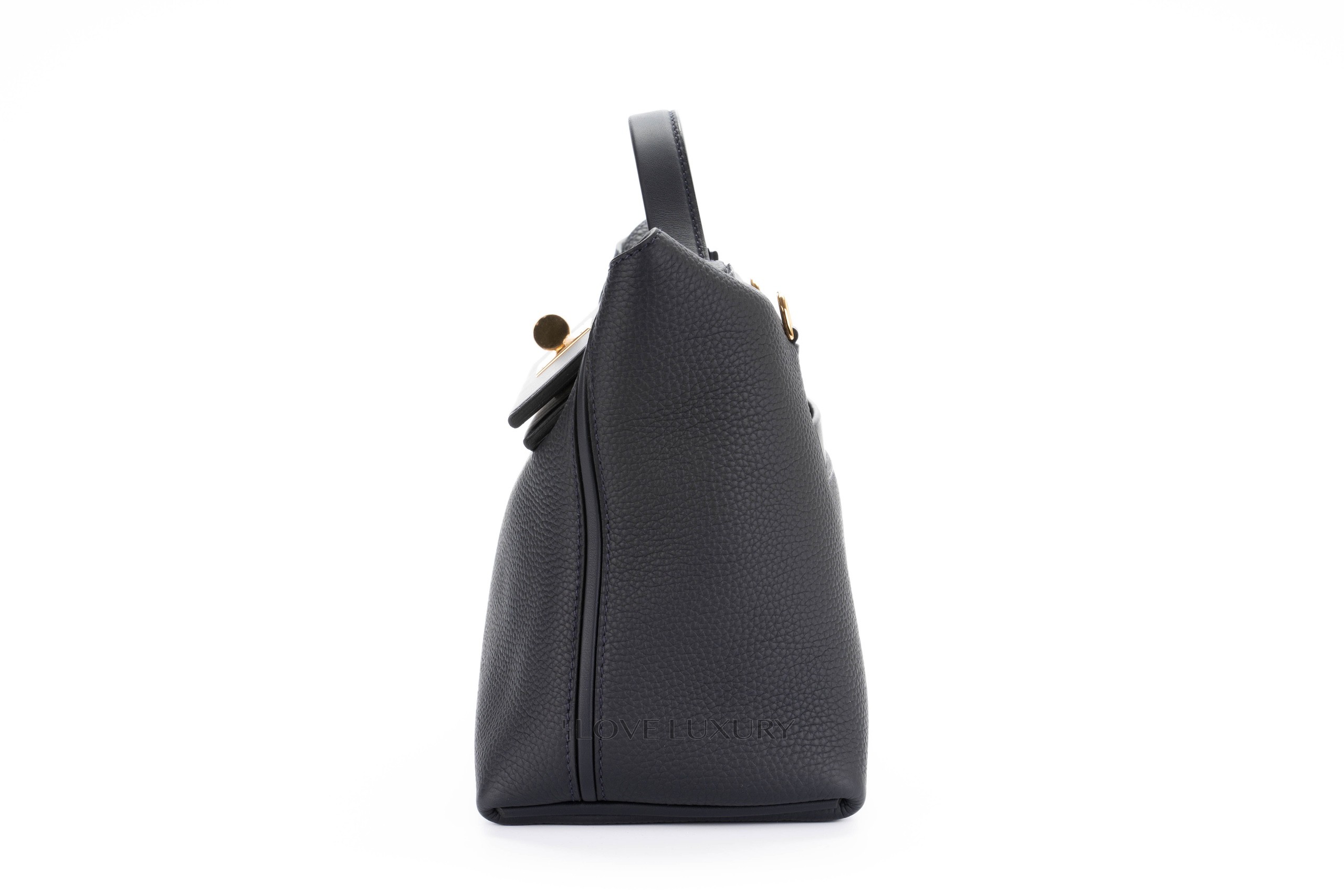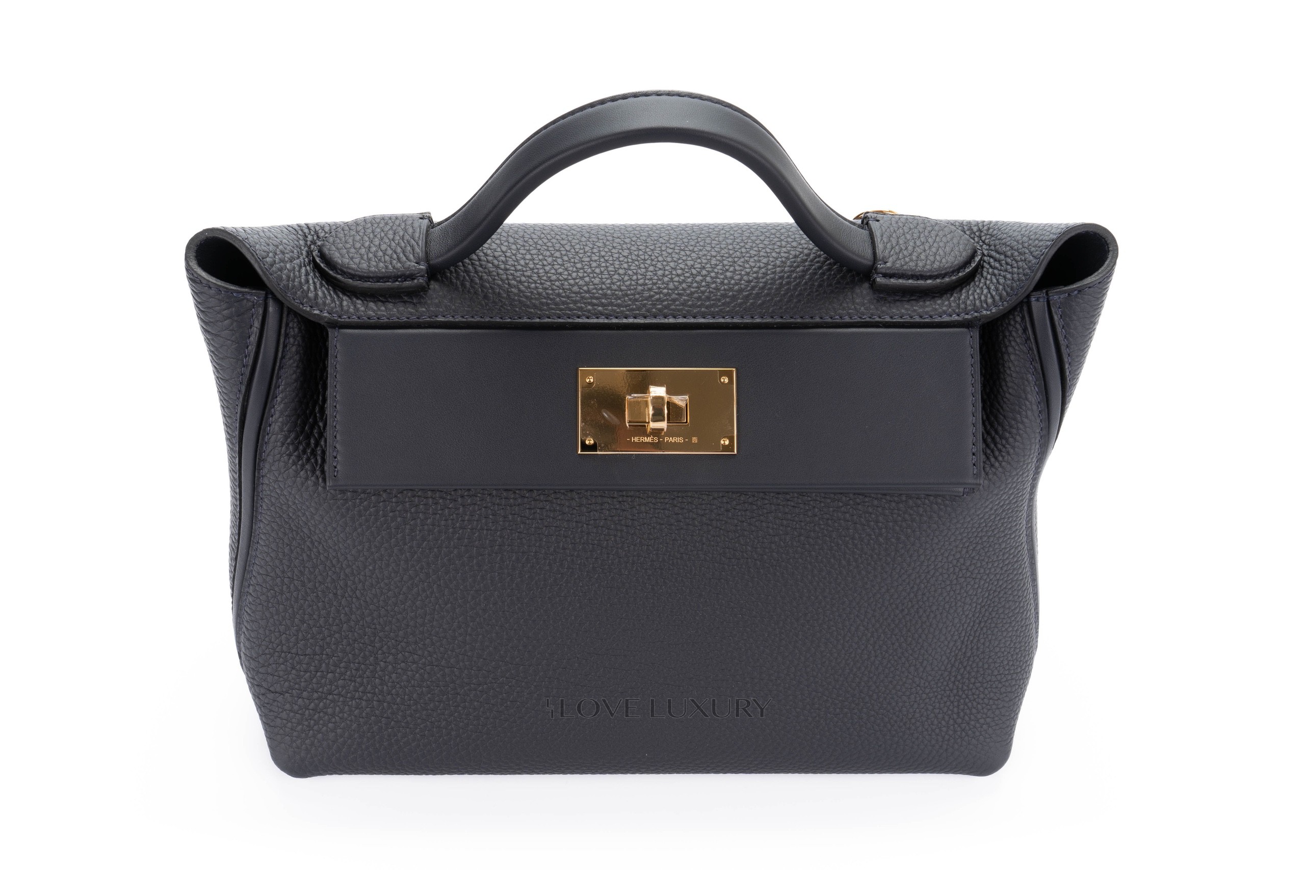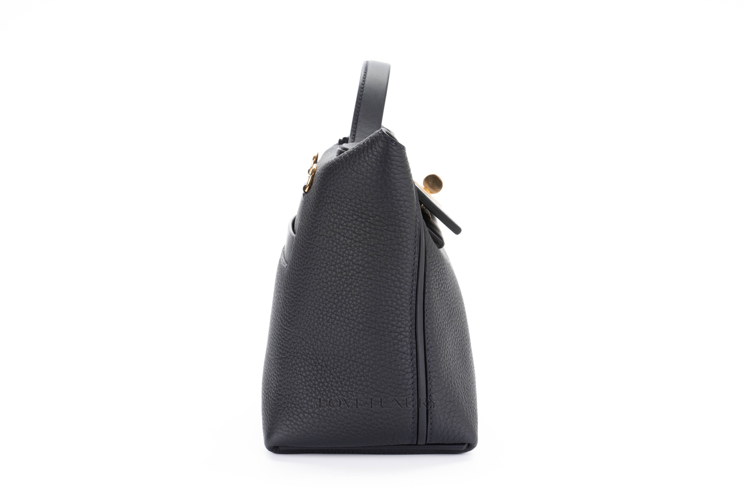This specific model from Hermès is a model we do not usually stock, but we couldn’t resist the classic colour of Caban which is a new color Hermès introduced in 2022. Caban is marketed as ‘the new Black’ at a glance you could be forgiven for believing this is a black bag. Only upon closer inspection can you see the true deep darkest of blue hues. Its a spacious bag that fits a lot and its perfect for daily use. There is a lovely flat top handle and a detachable strap. This bag combines both Togo and Swift leather and is complememted with gold hardware. It’s a new unworn 2022 piece. Comes as a full set including receipt.