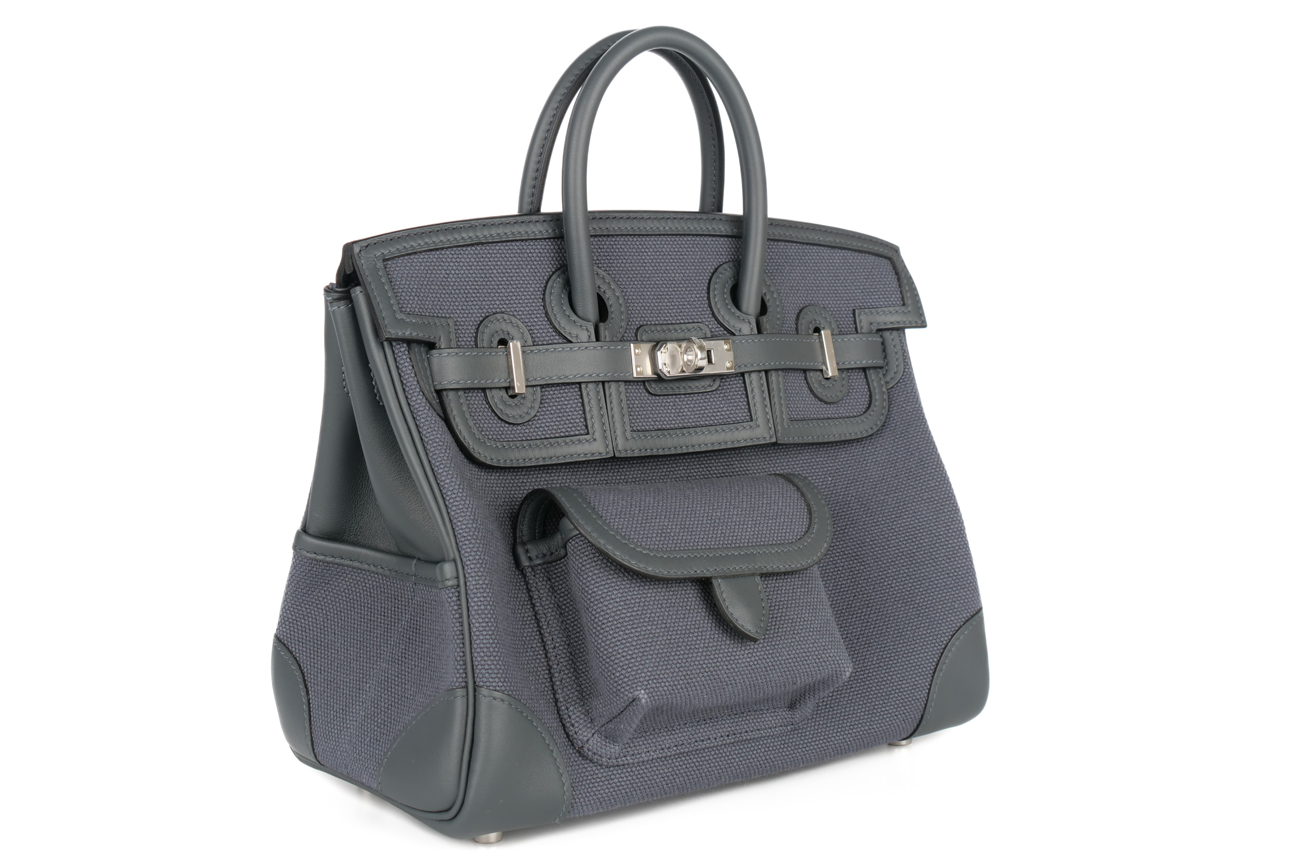 Hermès Birkin 25 Cargo Gris Misty Toile / Swift Palladium Hardware / W Stamp 2025, Brand New