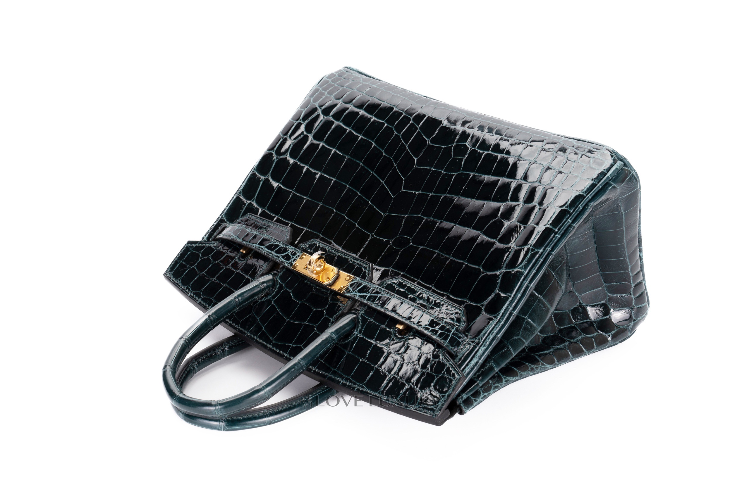 Hermès Birkin 25 in Niloticus Crocodile in Vert Rosseau is a deep green in box fresh condition as a full set minus the receipt crafted with gold hardware. When we see such amazing examples of Hermès craftsmanship it really takes our breath away. The vert rosseau shade is truly a stunning shade of green, green is always a fabulous combination with gold hardware and exudes a regal feel. This is a bag not to be missed by the avid Hermès collector a rare and beautiful find.