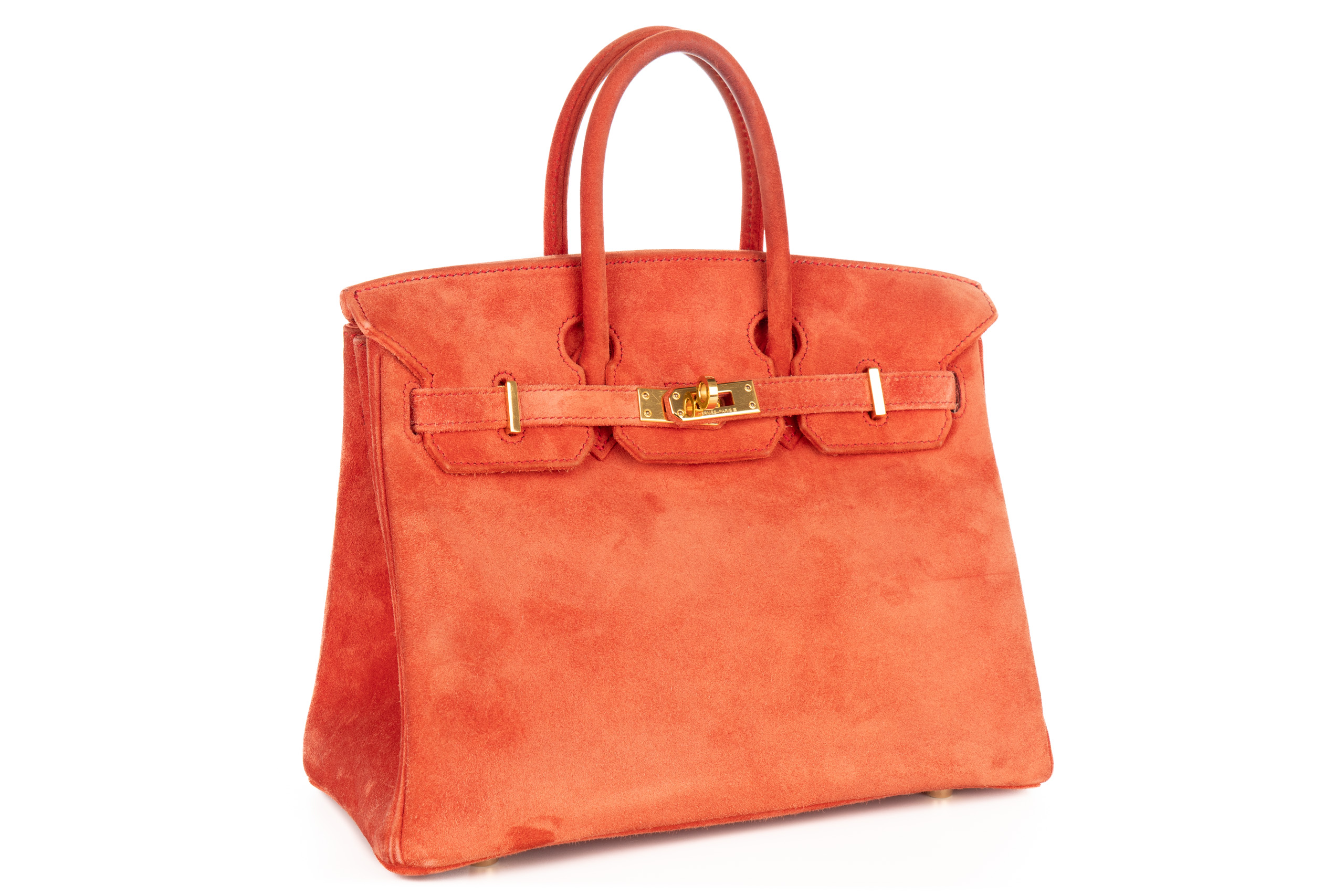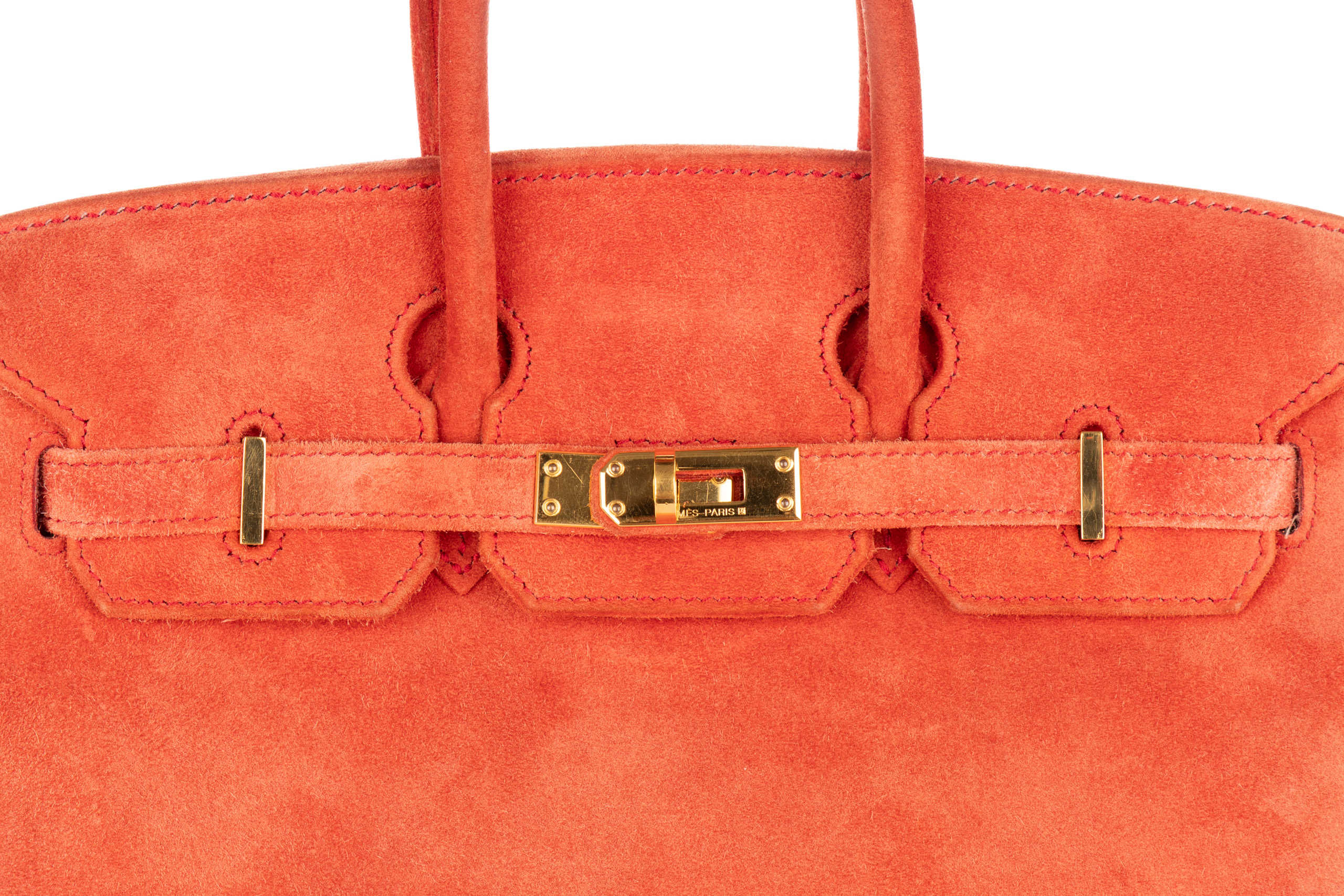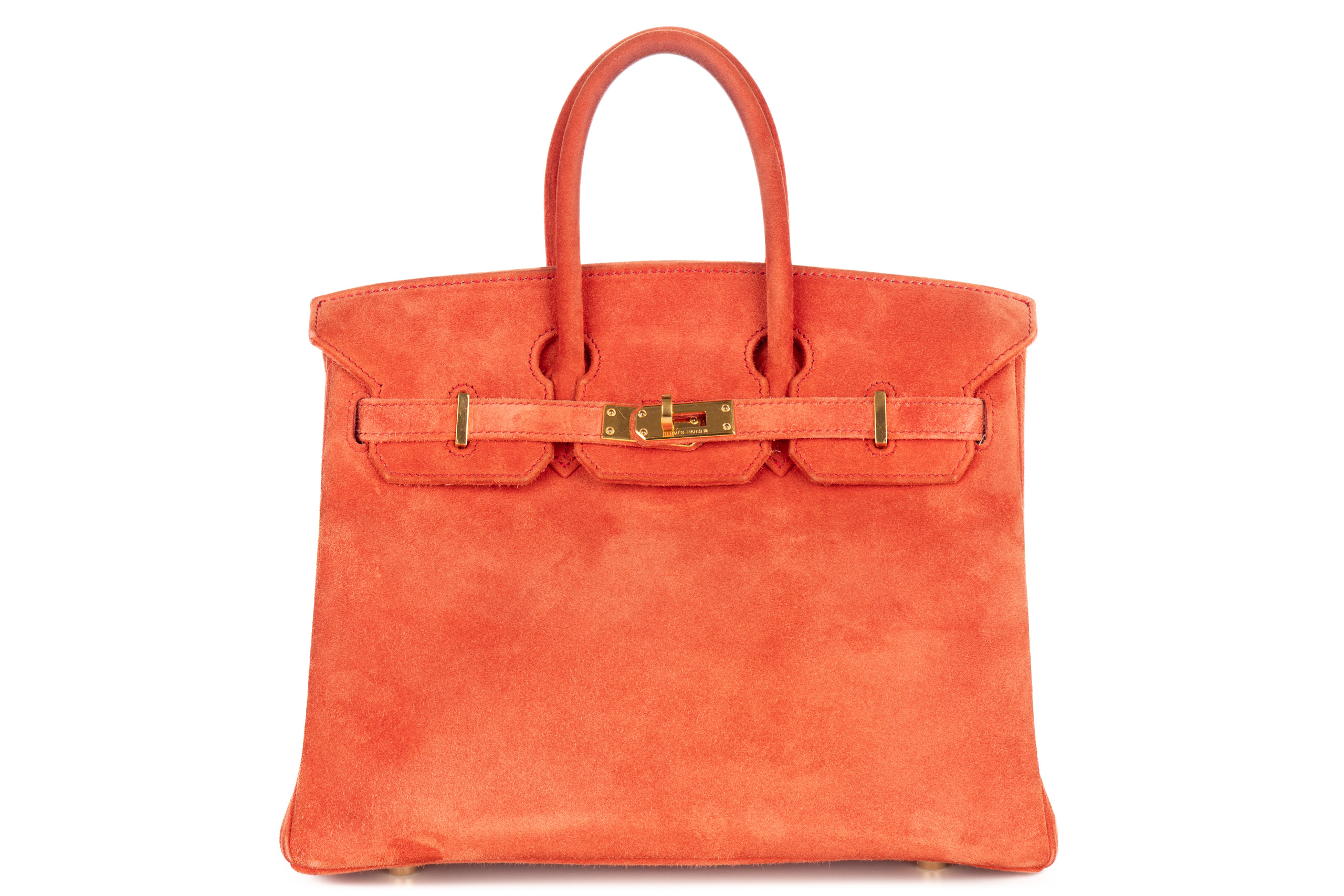 Hermès Birkin 25 Doblis Geranium Suede Gold Hardware / H Square Stamp 2004, Preloved