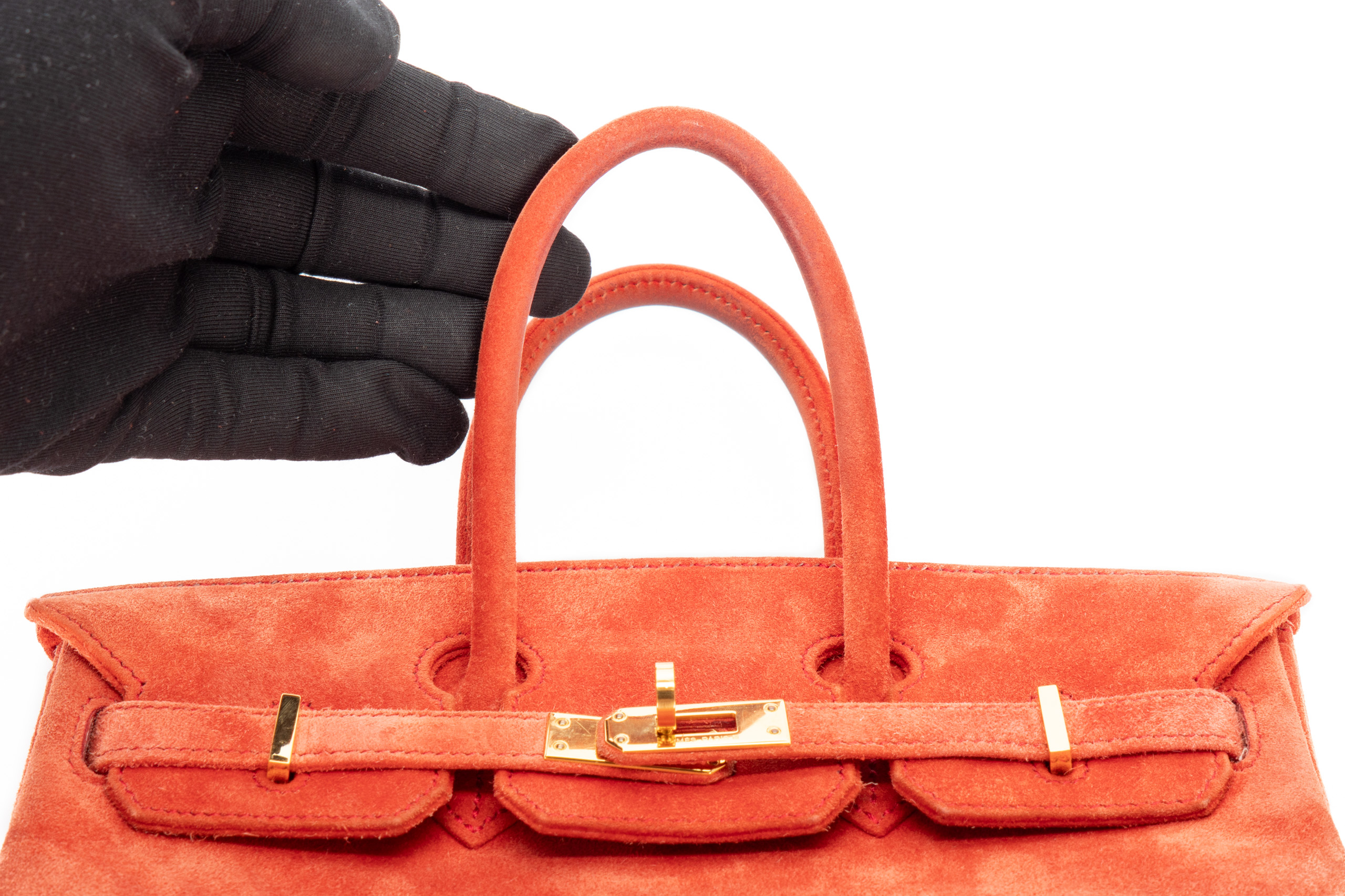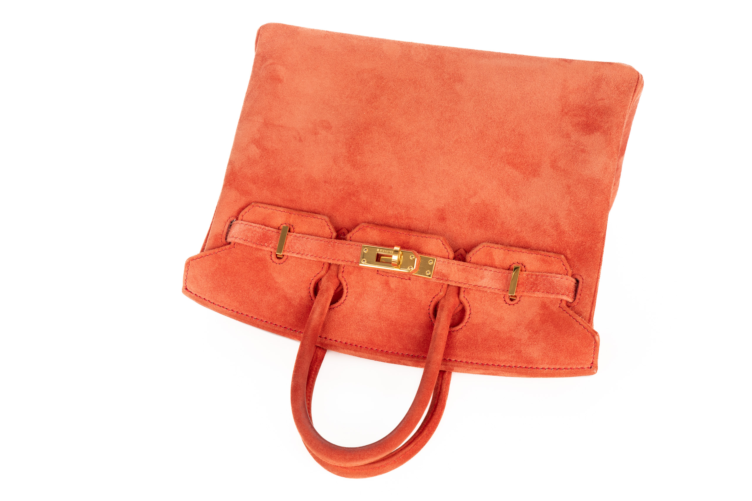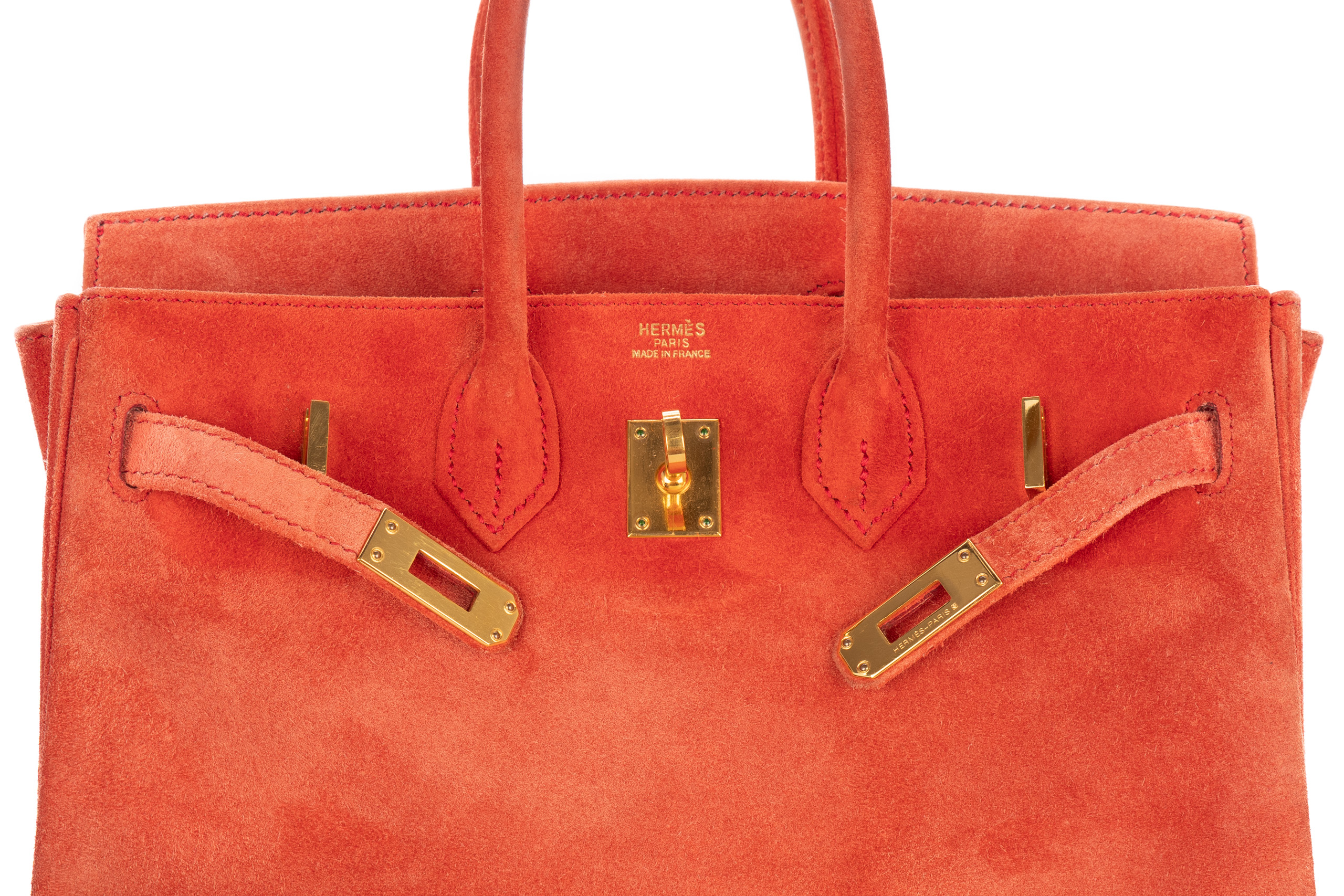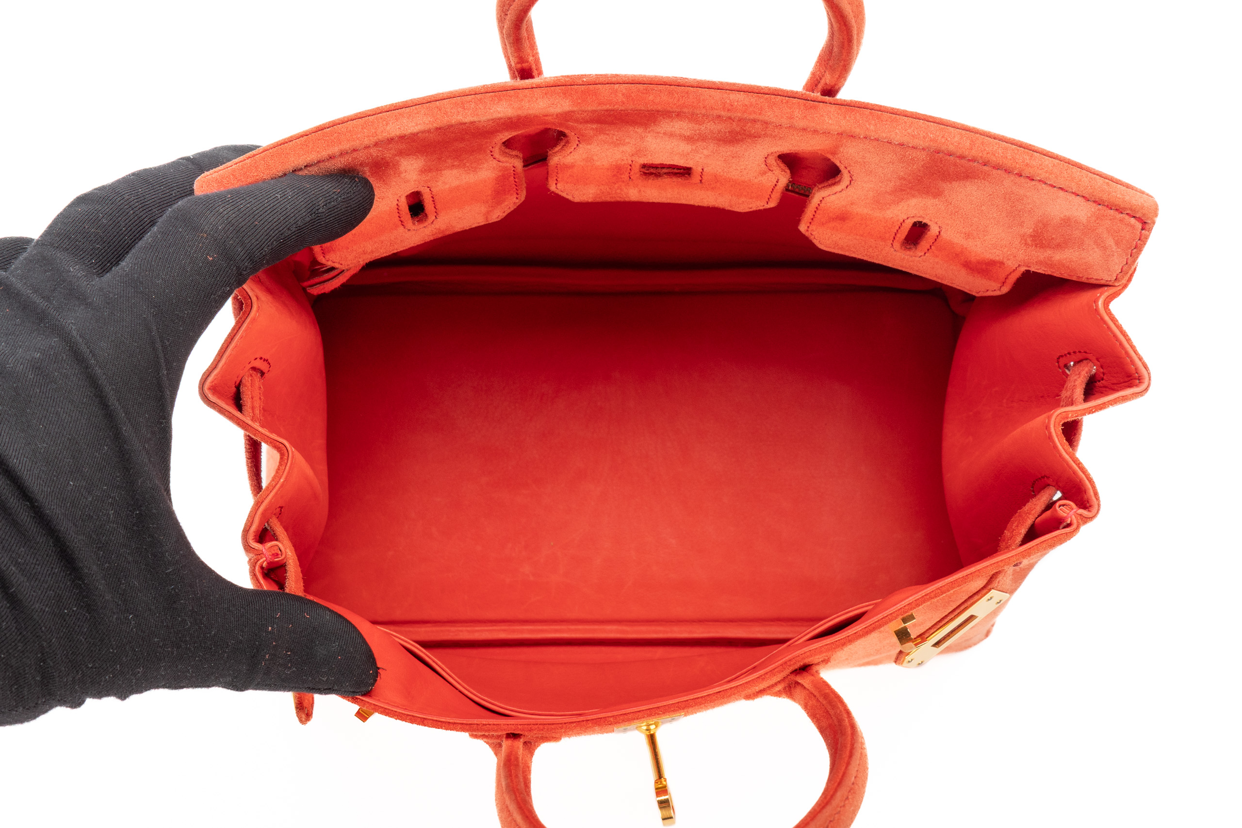 Hermès Birkin 25 Doblis Geranium Suede Gold Hardware / H Square Stamp 2004, Preloved