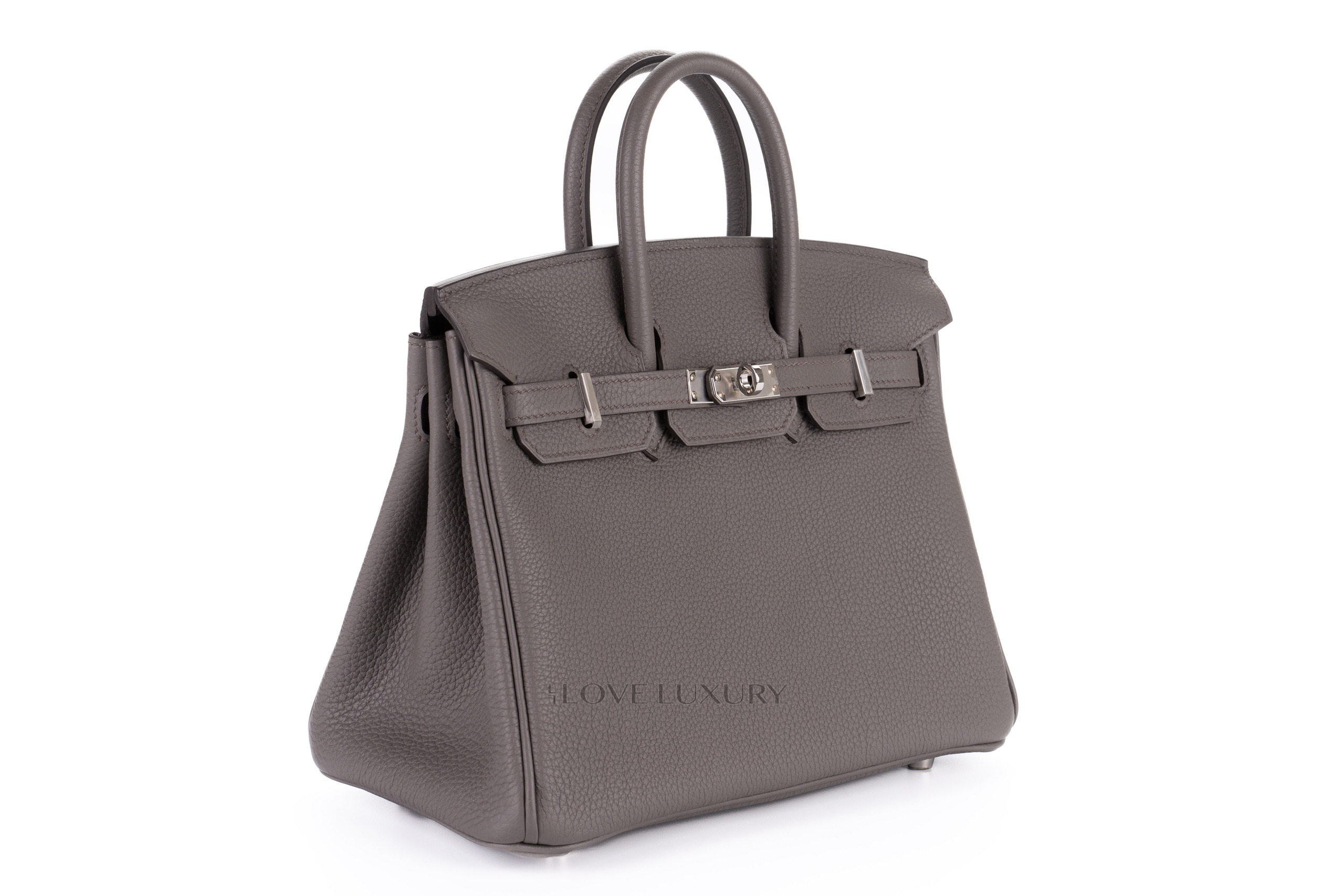 Here at Love Luxury we have a few colours that are particularly loved, Gris Etain is one of them. This Birkin 25 is crafted from Hermès Togo leather, meaning that is is grained and therefore very durable. The Palladium hardware combination with Gris Etain is absolutely stunning and should absolutely be seen in the flesh. This bag is new box frshb never been used. This bag comes as a full set including the receipt.