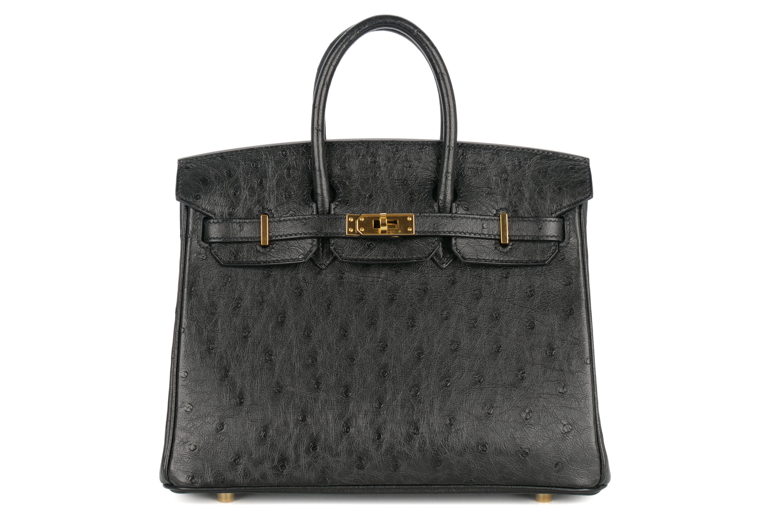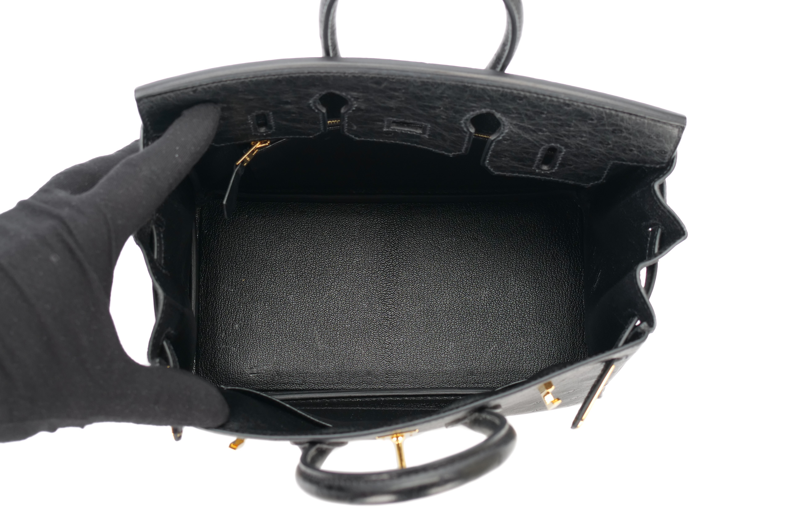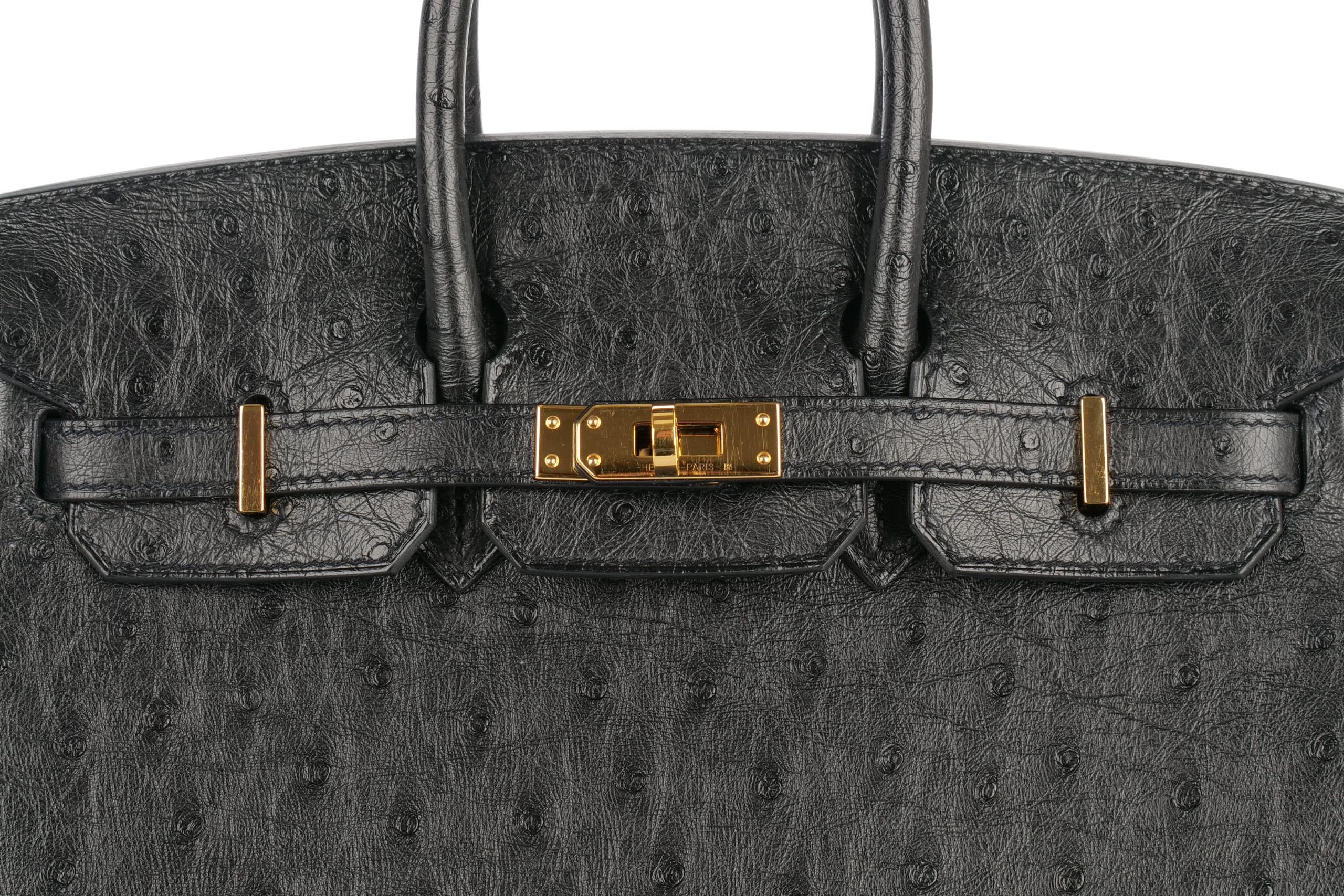 Hermès Birkin 25 Noir / Black Ostrich Gold Hardware / Z Stamp 2021, Excellent Preloved