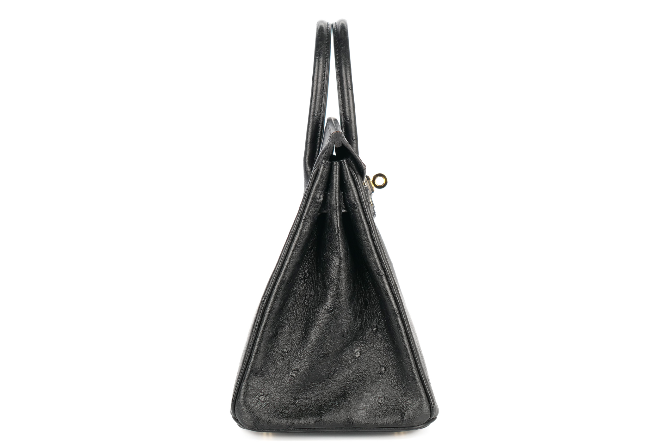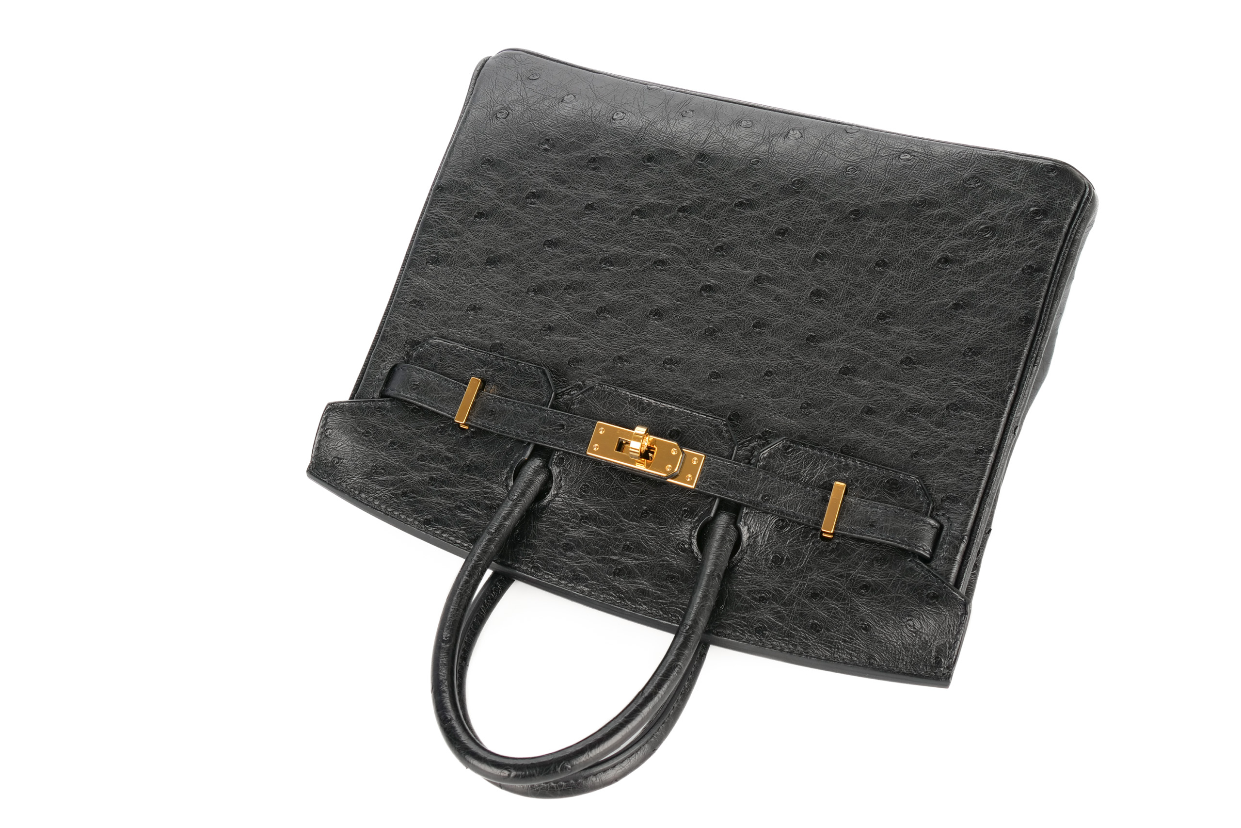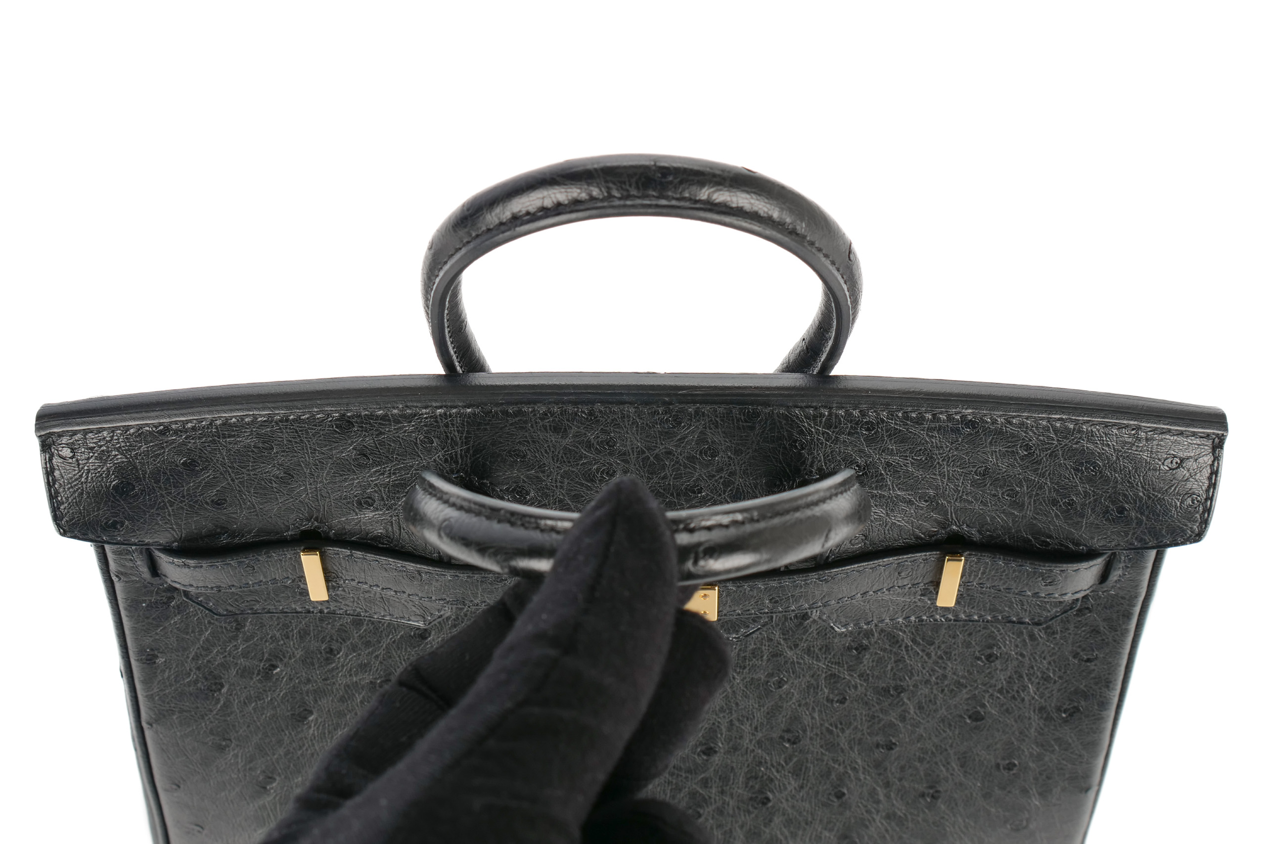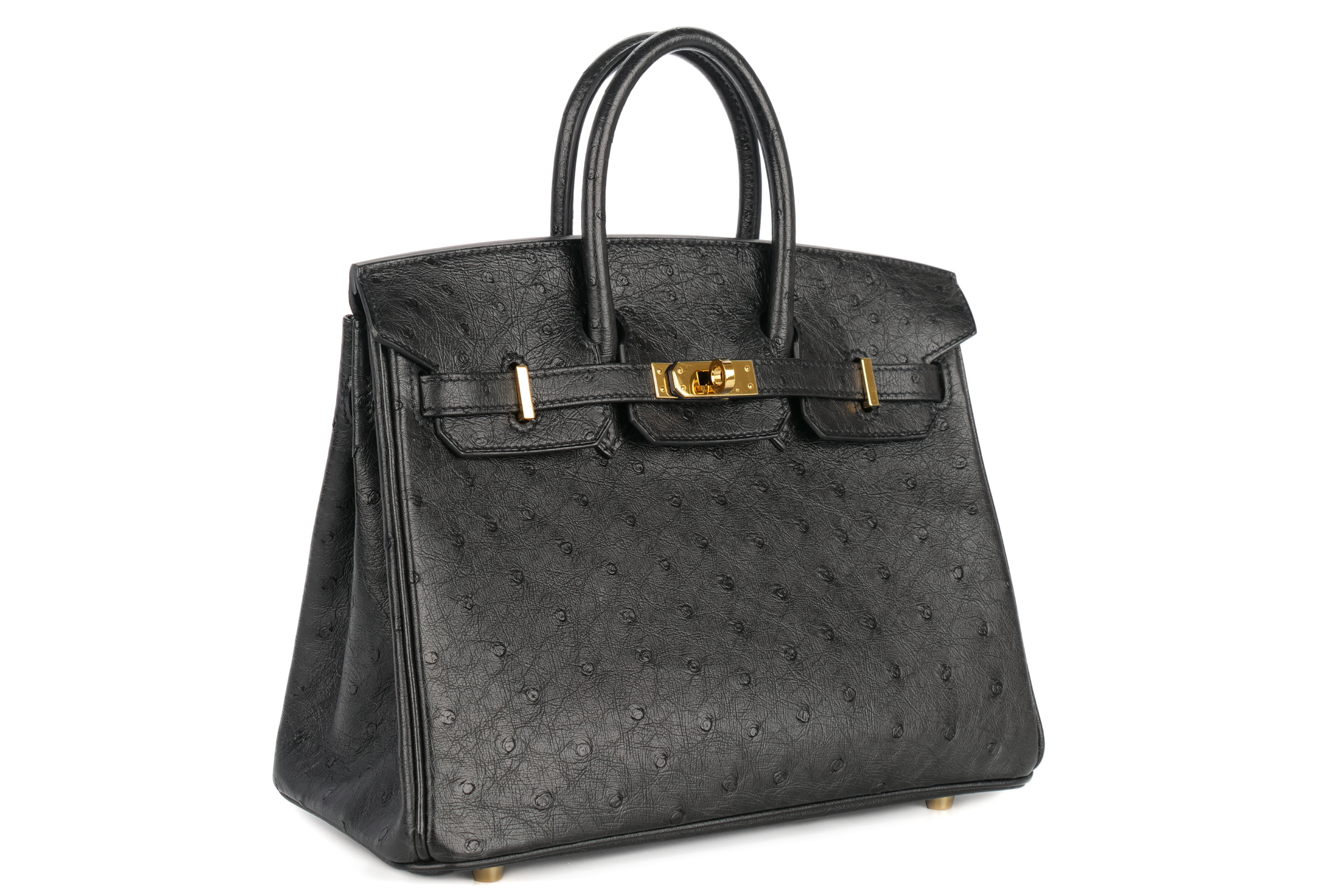 Hermès Birkin 25 Noir / Black Ostrich Gold Hardware / Z Stamp 2021, Excellent Preloved