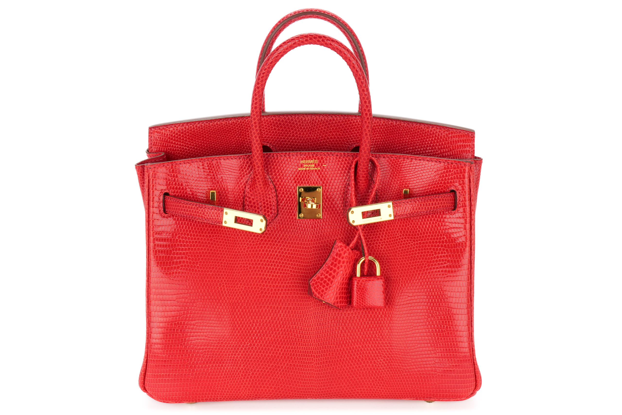 Hermès Birkin 25 Rouge Exotique Lizard Gold Hardware / P Square 2012, Preloved