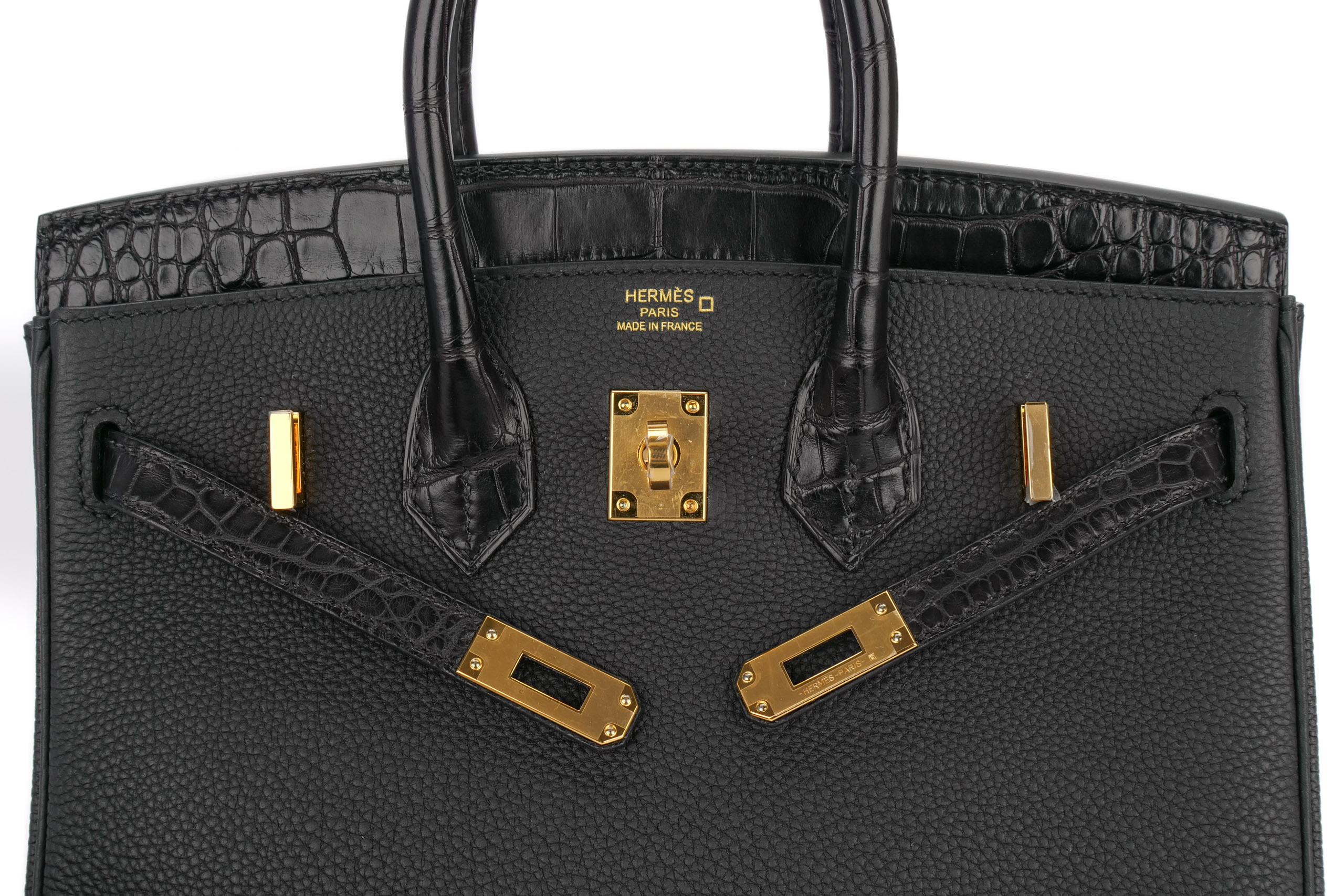 Hermès Birkin 25 Touch Noir / Black Togo Matte Alligator Missipian Gold Hardware / B Stamp 2023, Brand New