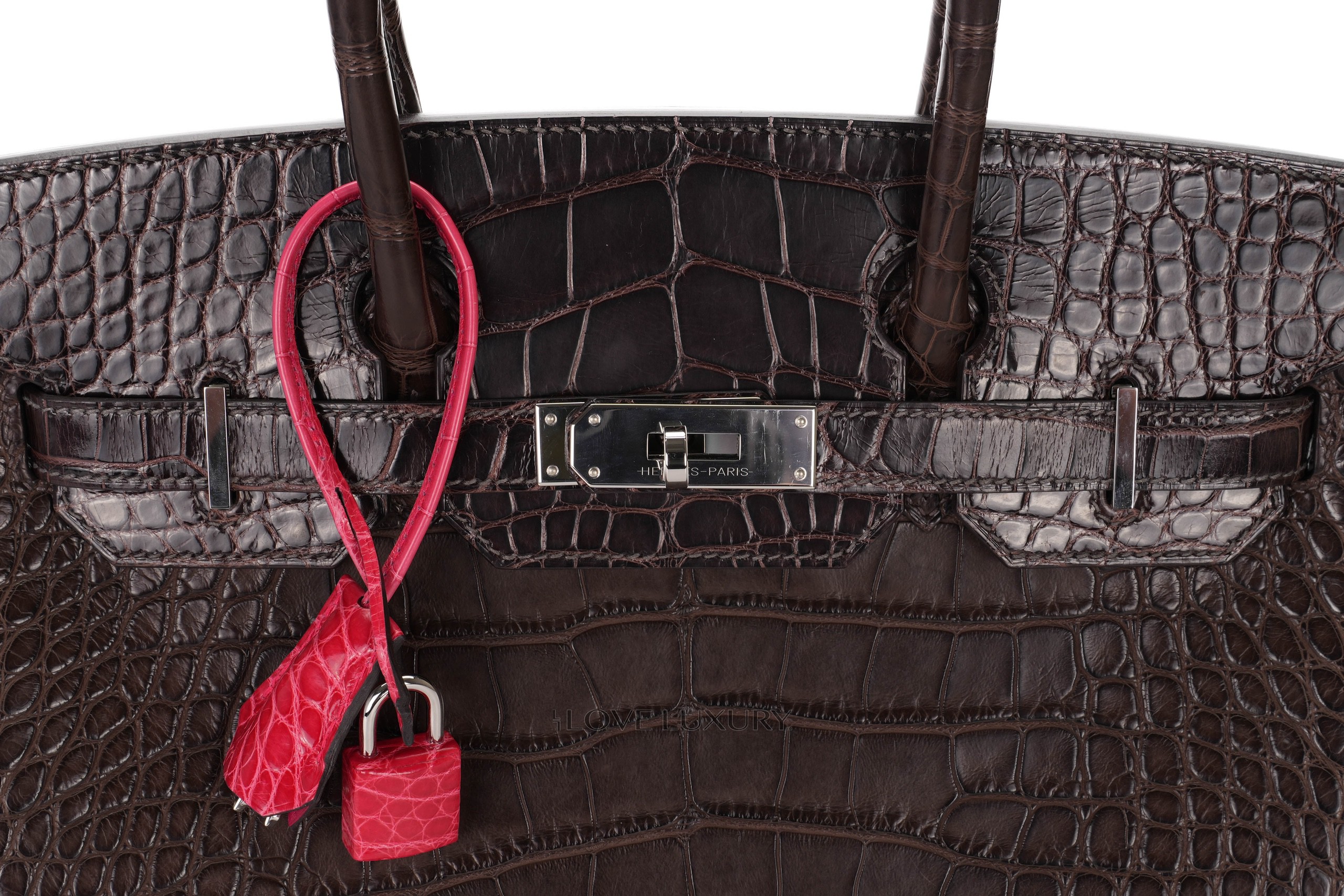 Hermès Birkin 30 Alligator Ebene Matte / Macassar Shiny / Rose Mexcico Palladium Hardware / Z stamp 2021 Box Fresh