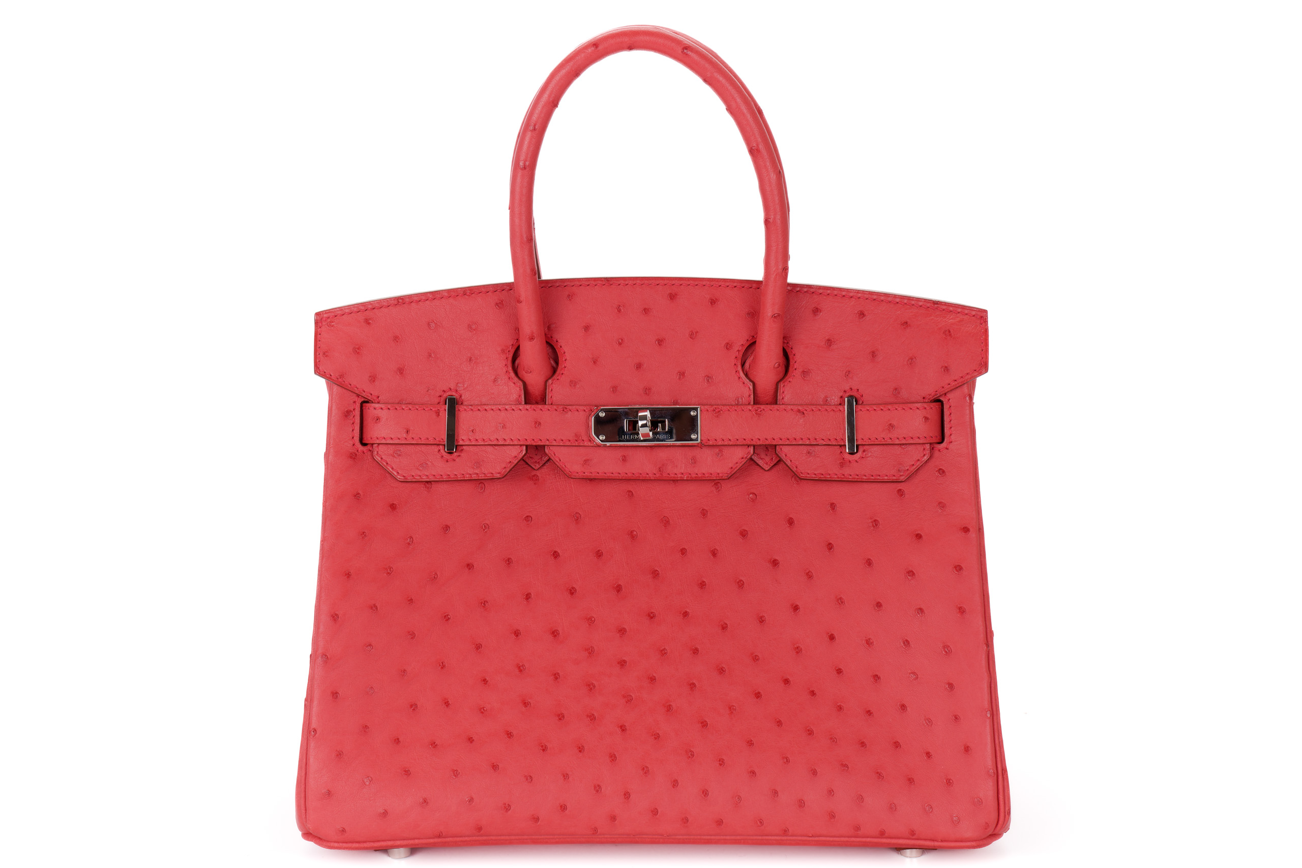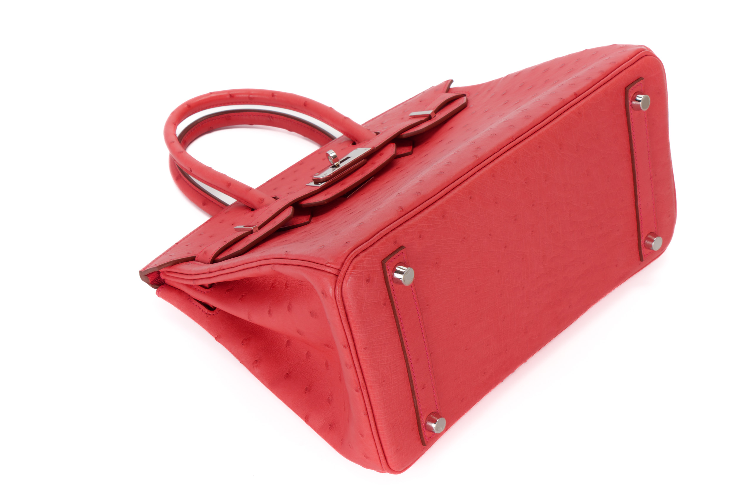 Hermès Birkin 30 Bougainvillier Ostrich Palladium Hardware / P Square 2012 Pre-Loved condition