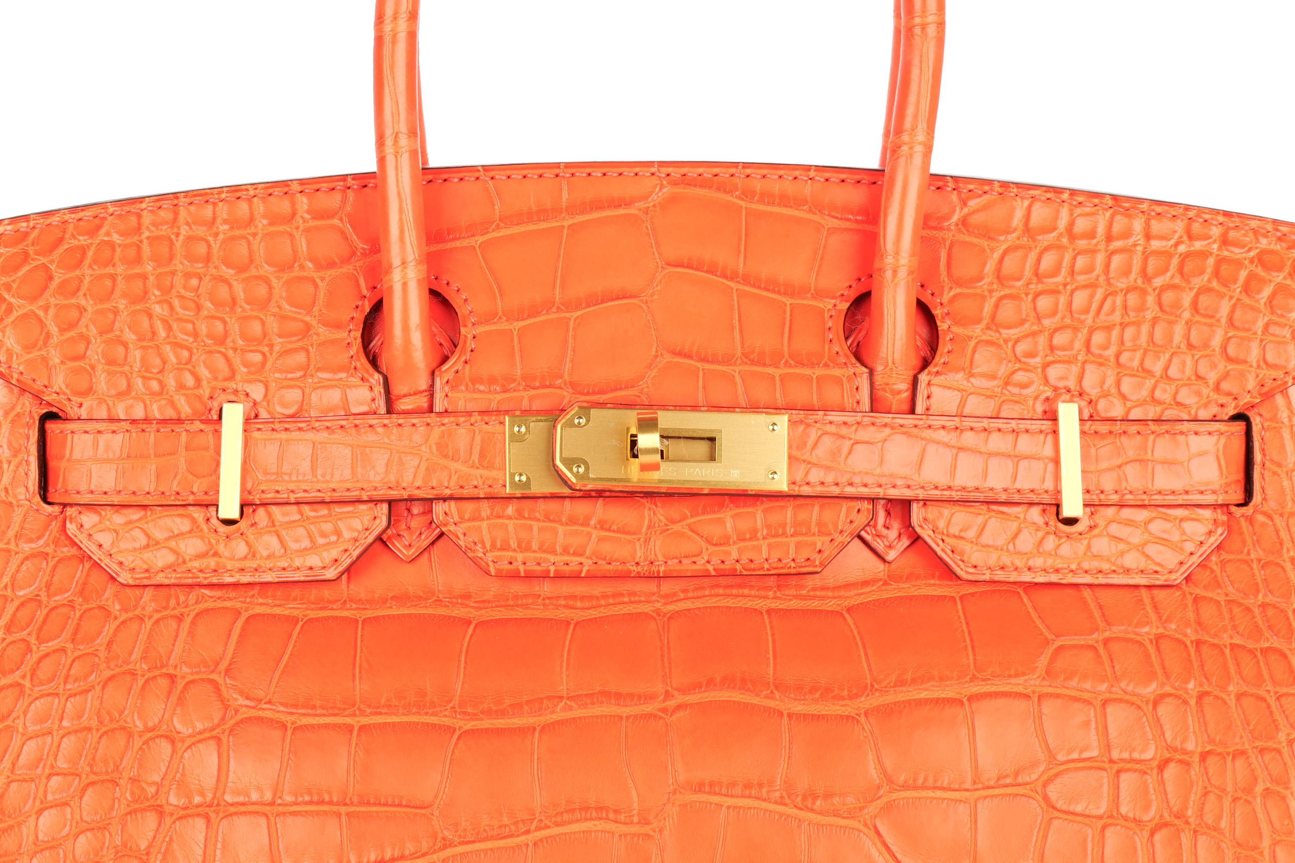 Hermès Birkin 30 Horse Shoe Stamp Capucine Matte Alligator Brushed Gold Hardware / D Stamp 2020, Brand New
