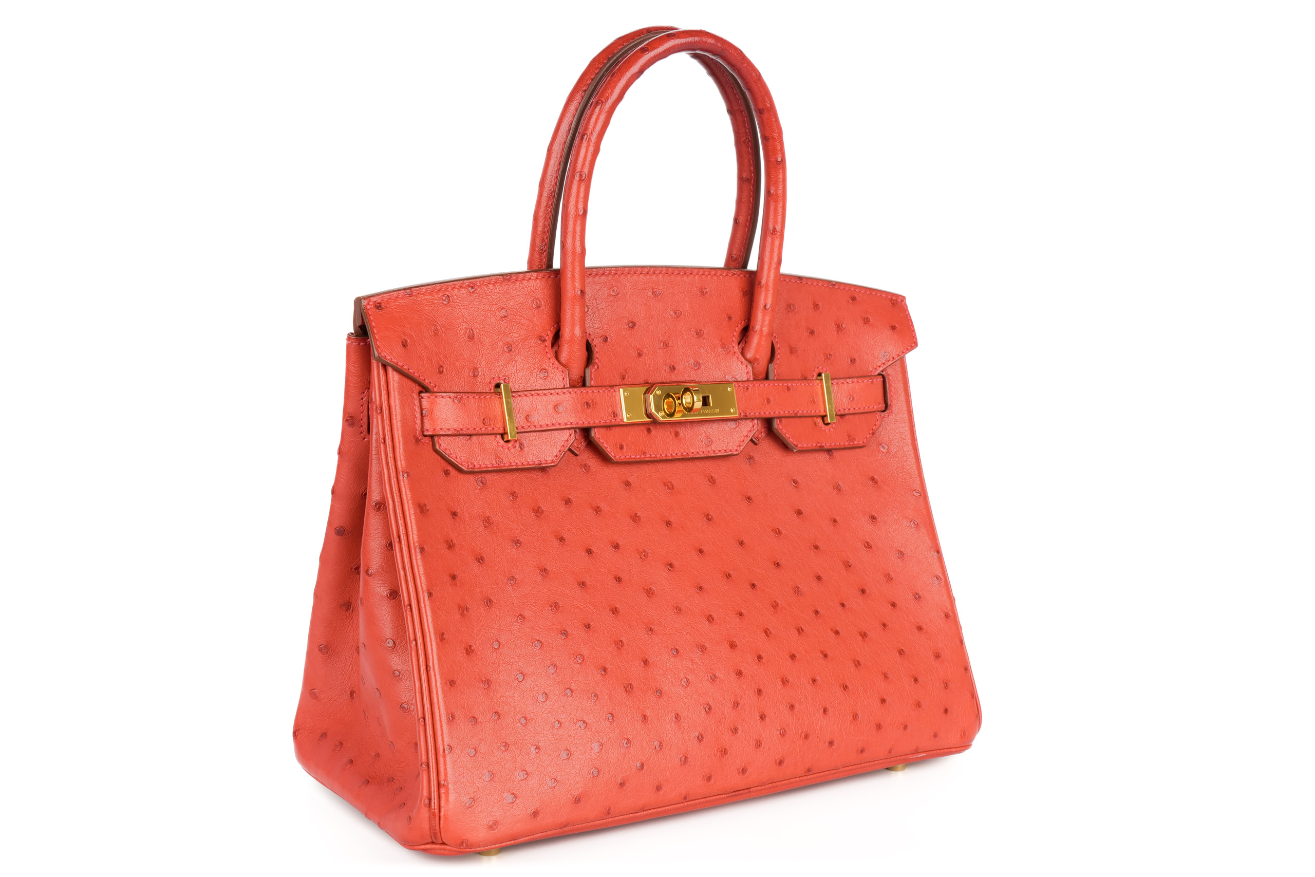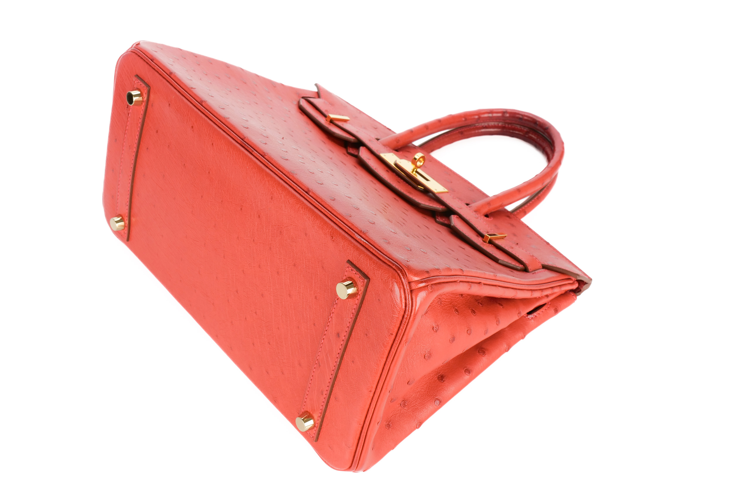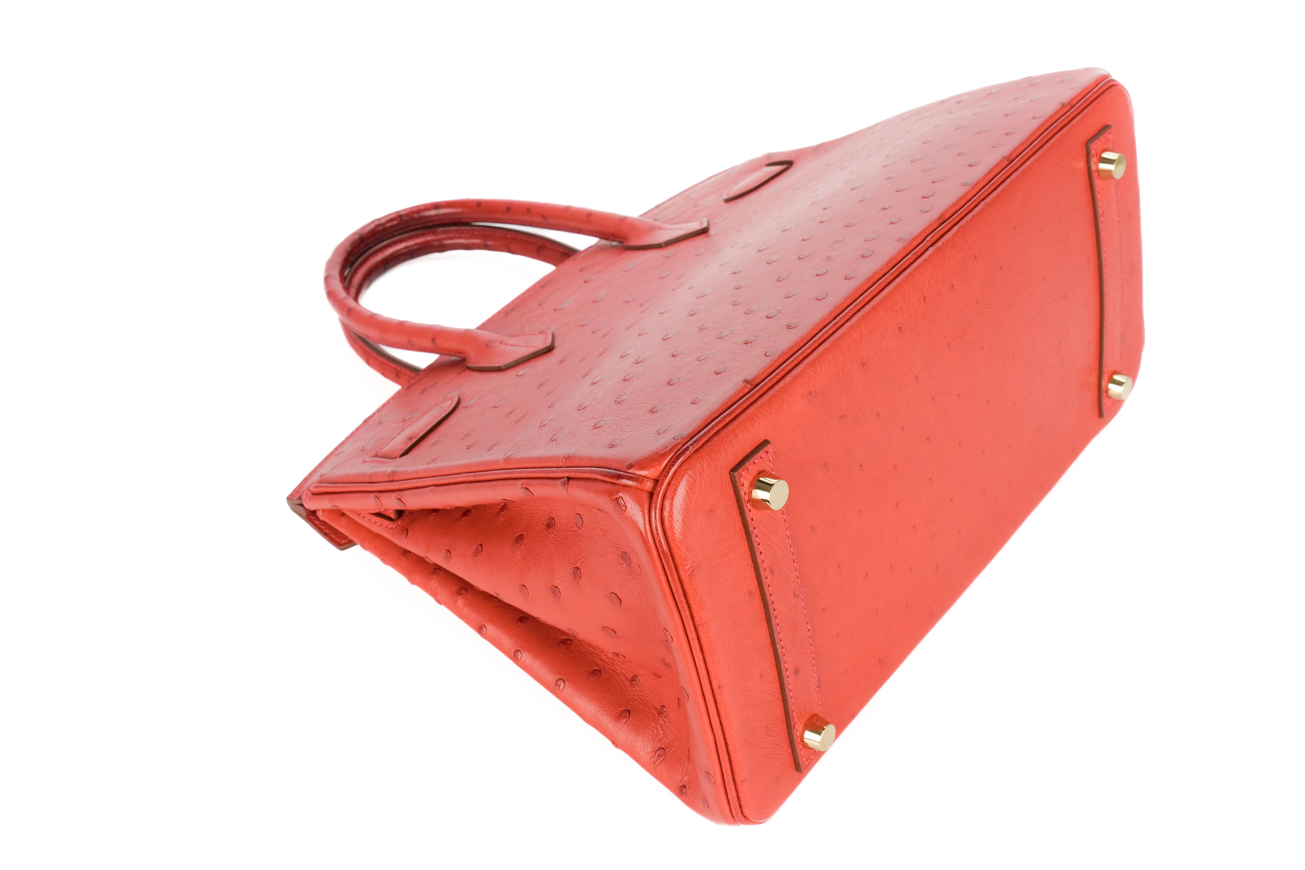 Hermès Birkin 30 Rouge Vif Ostrich Gold Hardware / X Stamp 2016, Preloved