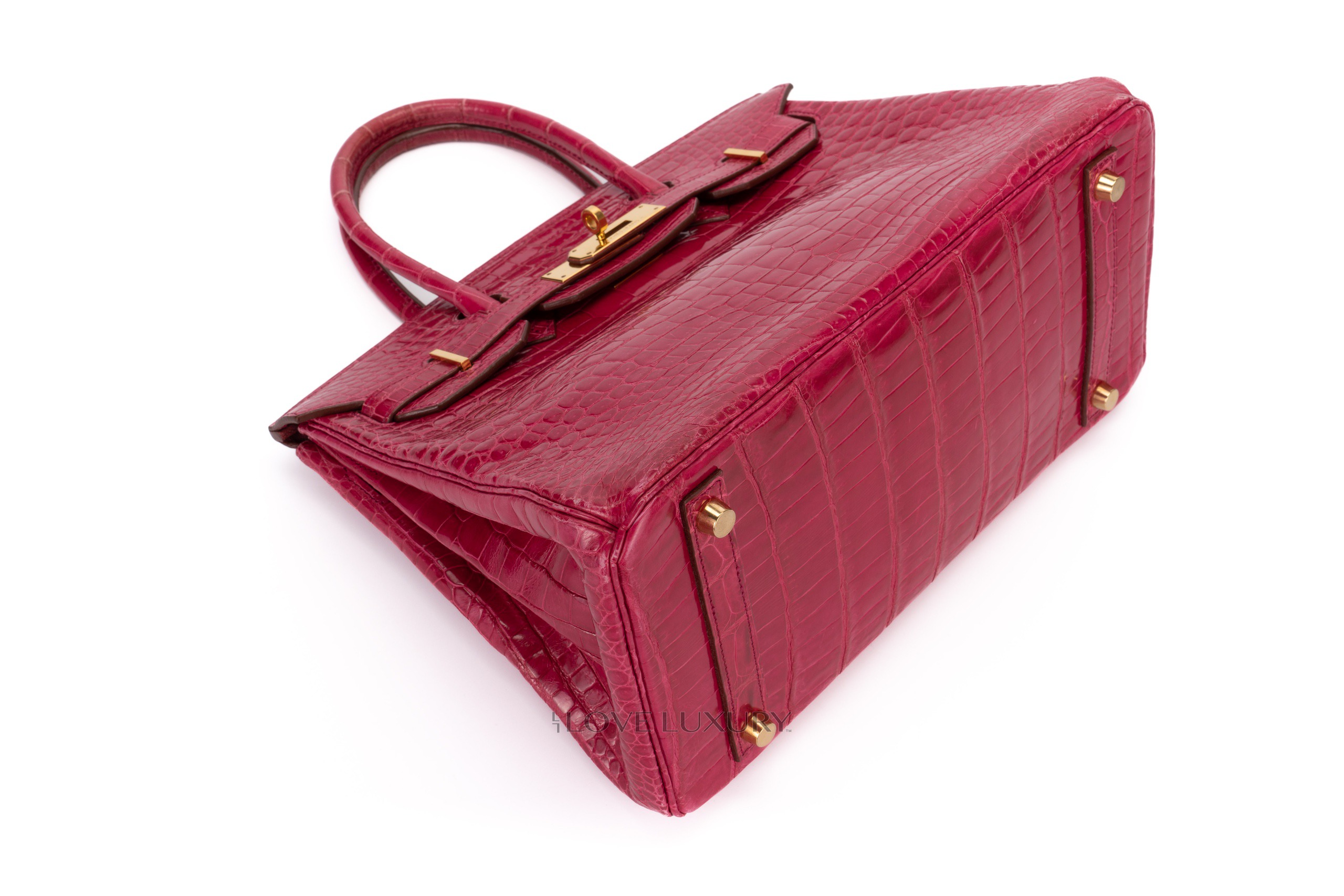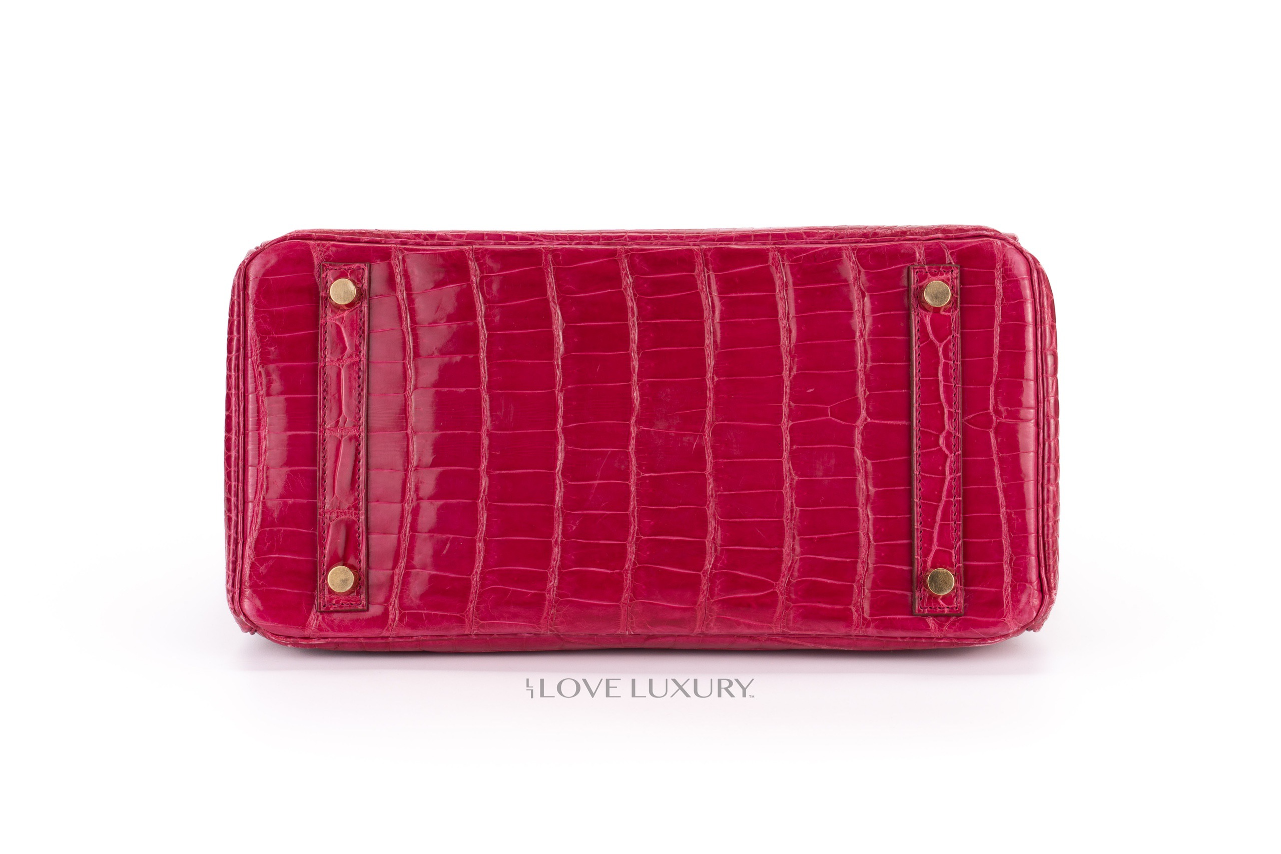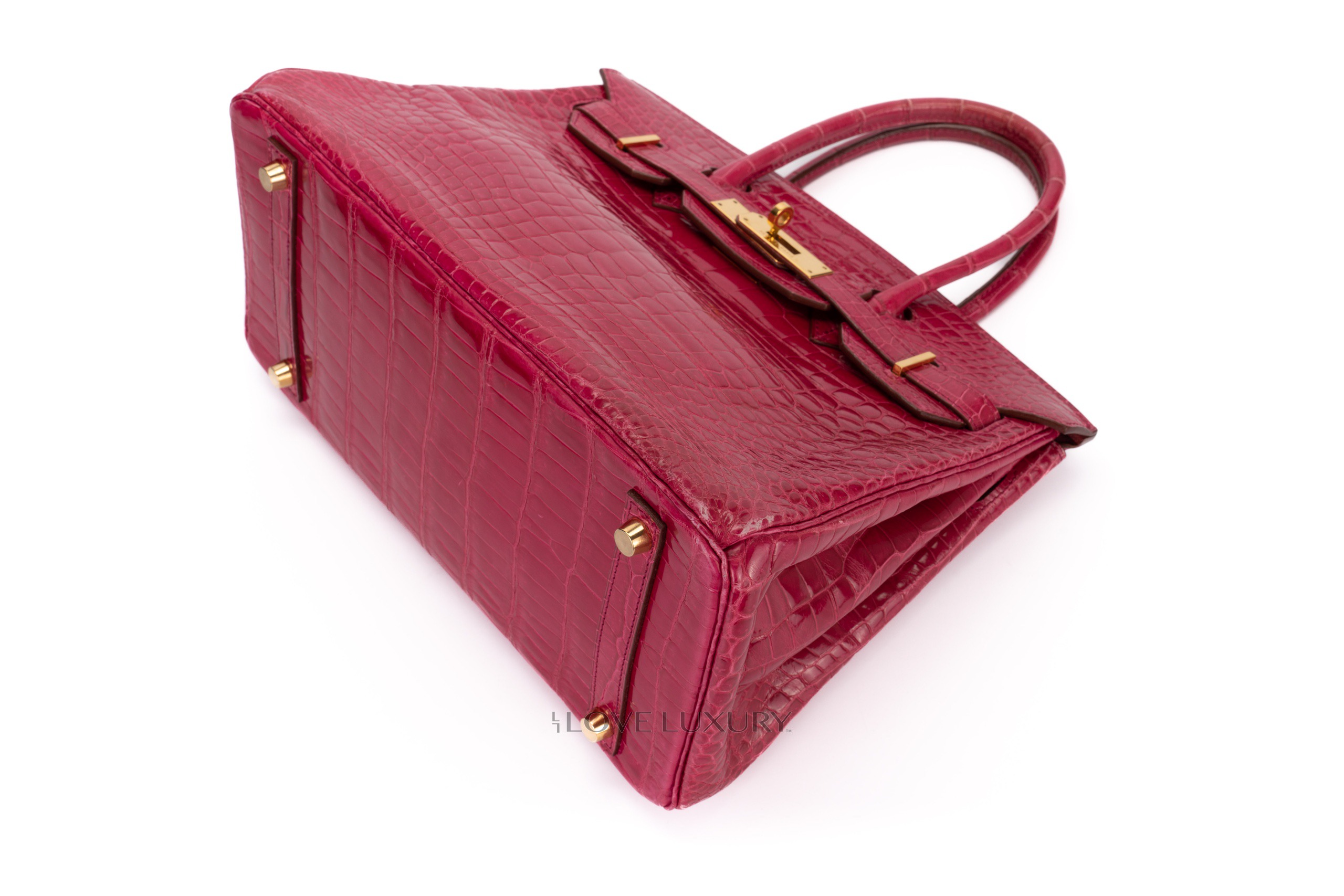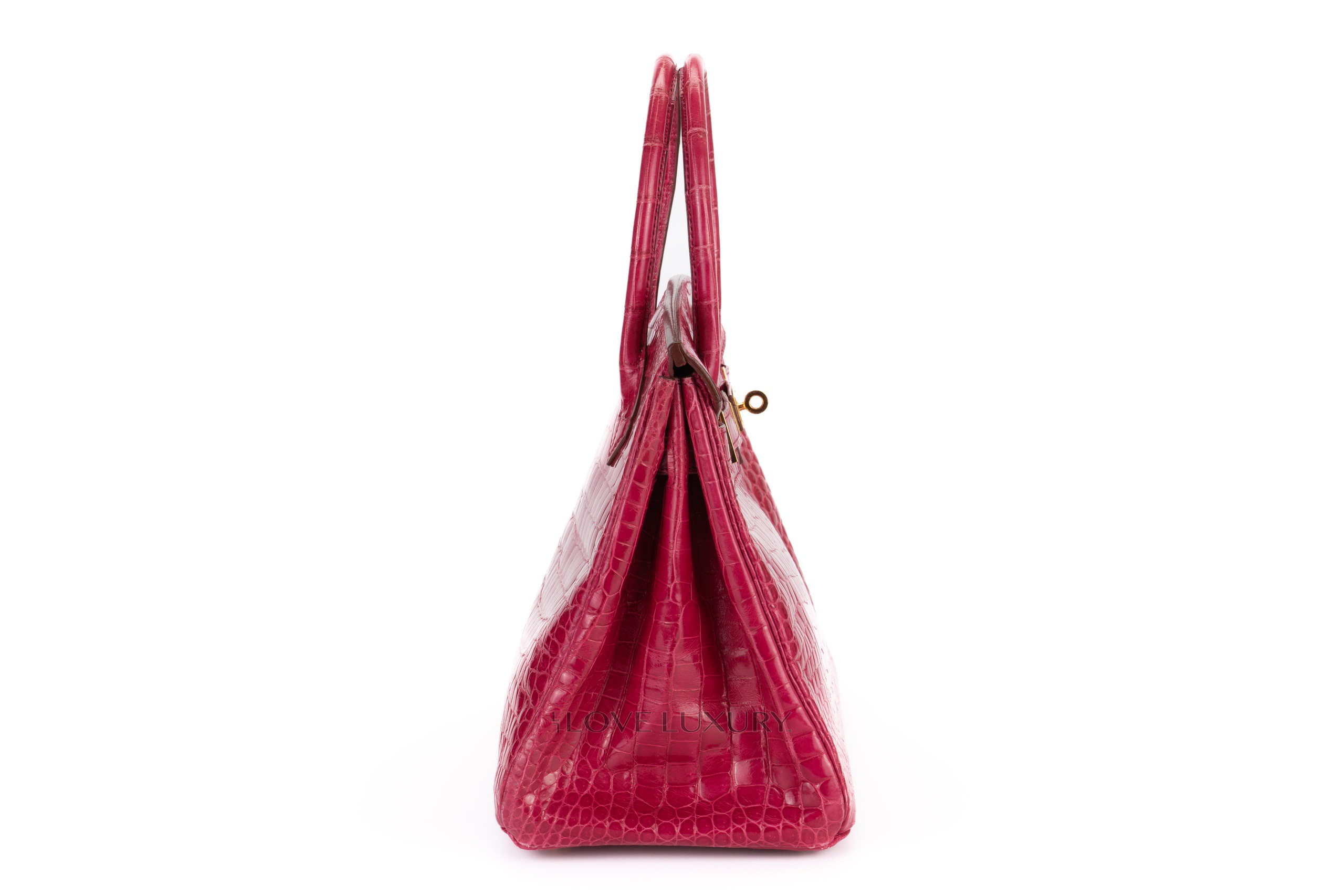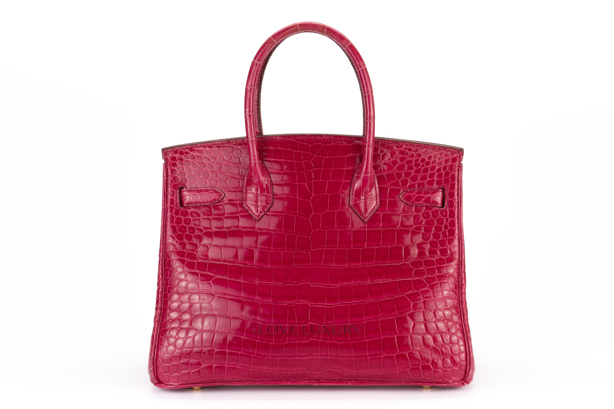 Hermès Birkin 30’s in exotic skins are not so common on the market, we tend to see bigger bags such as the b35 and smaller bags such as the b25. The Birkin 30 in Lisse (shiny) Crocodile is in Scheherazade colour with gold hardware. This fabulous colour combination is a beauty to behold, the bright pink with the gold accents really is a rich but fun combination. This bag is F Square 2002 with visable signs of use on the corners and light, not deep scratches to the hardware. This bag comes with dustbag, lock, key, clochette and authentication, no box, no receipt and no cities. The combination of the colour way, hardware and size is actually a very rare combination to find as not many of them were crafted.
