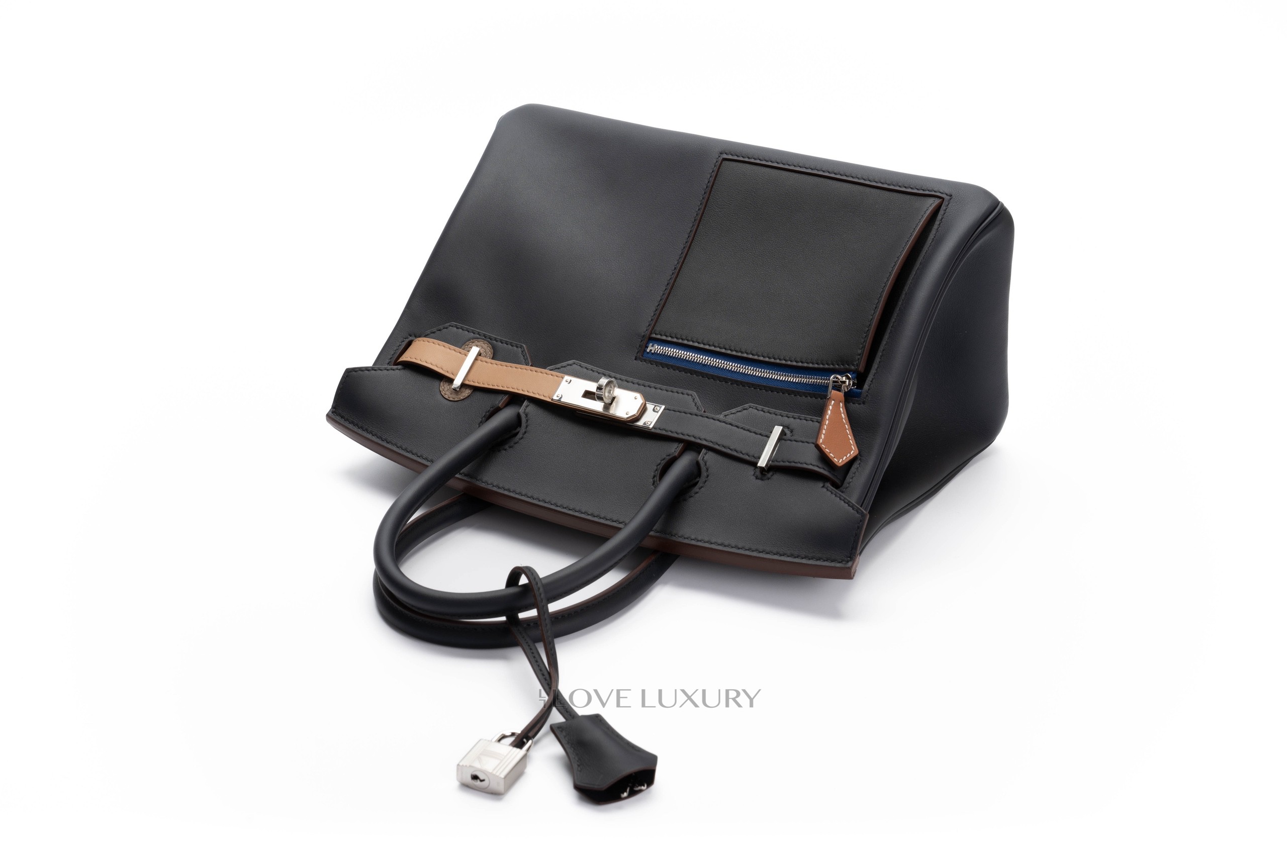 Hermès Birkin 30 Colormatic Bleu/Noir/Chai/Etoupe/Gold Swift Leather Palladium Hardware U stamp.