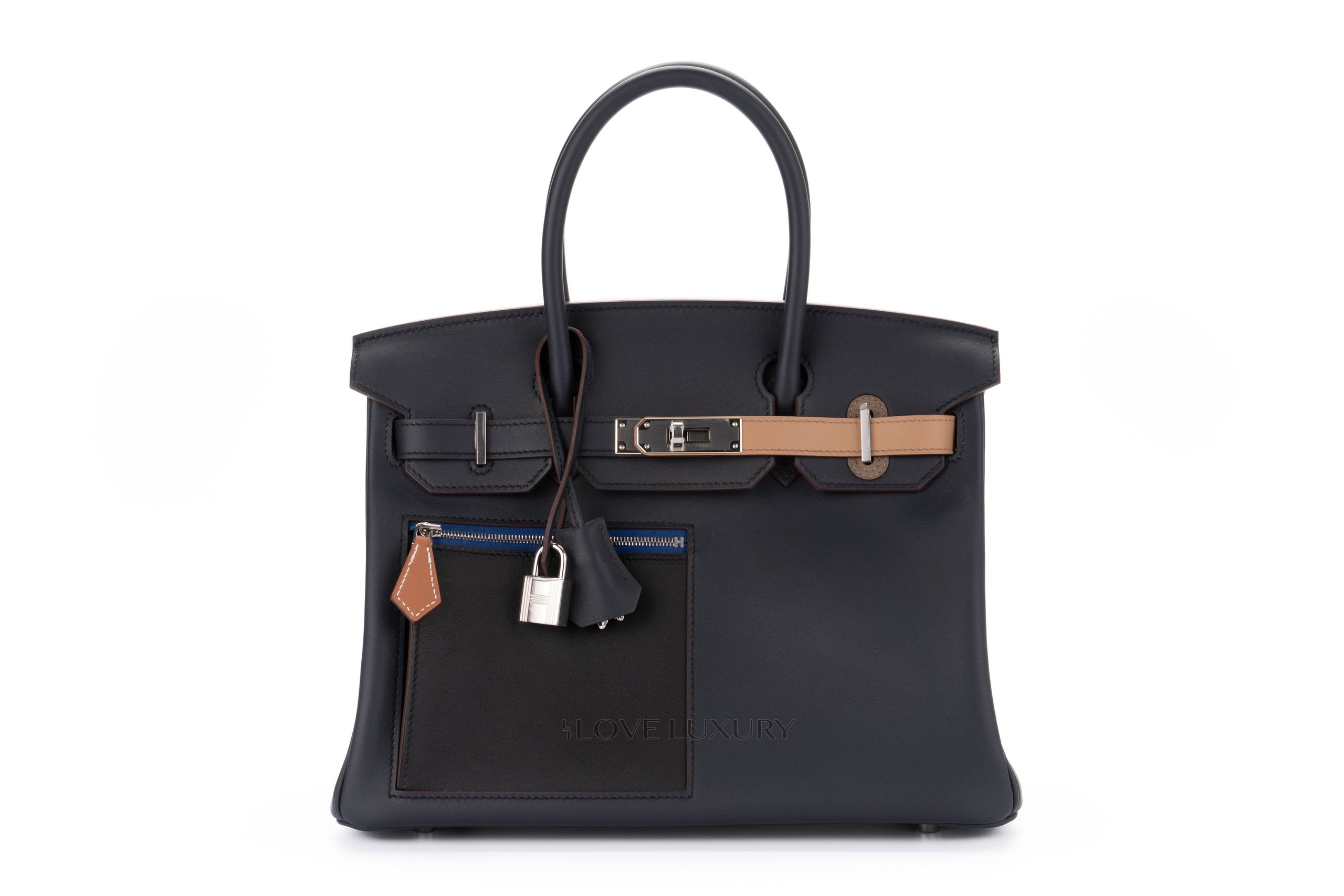 Hermès Birkin 30 Swift ‘Colomartic’ Bleu/Noir/Chai/Etoupe