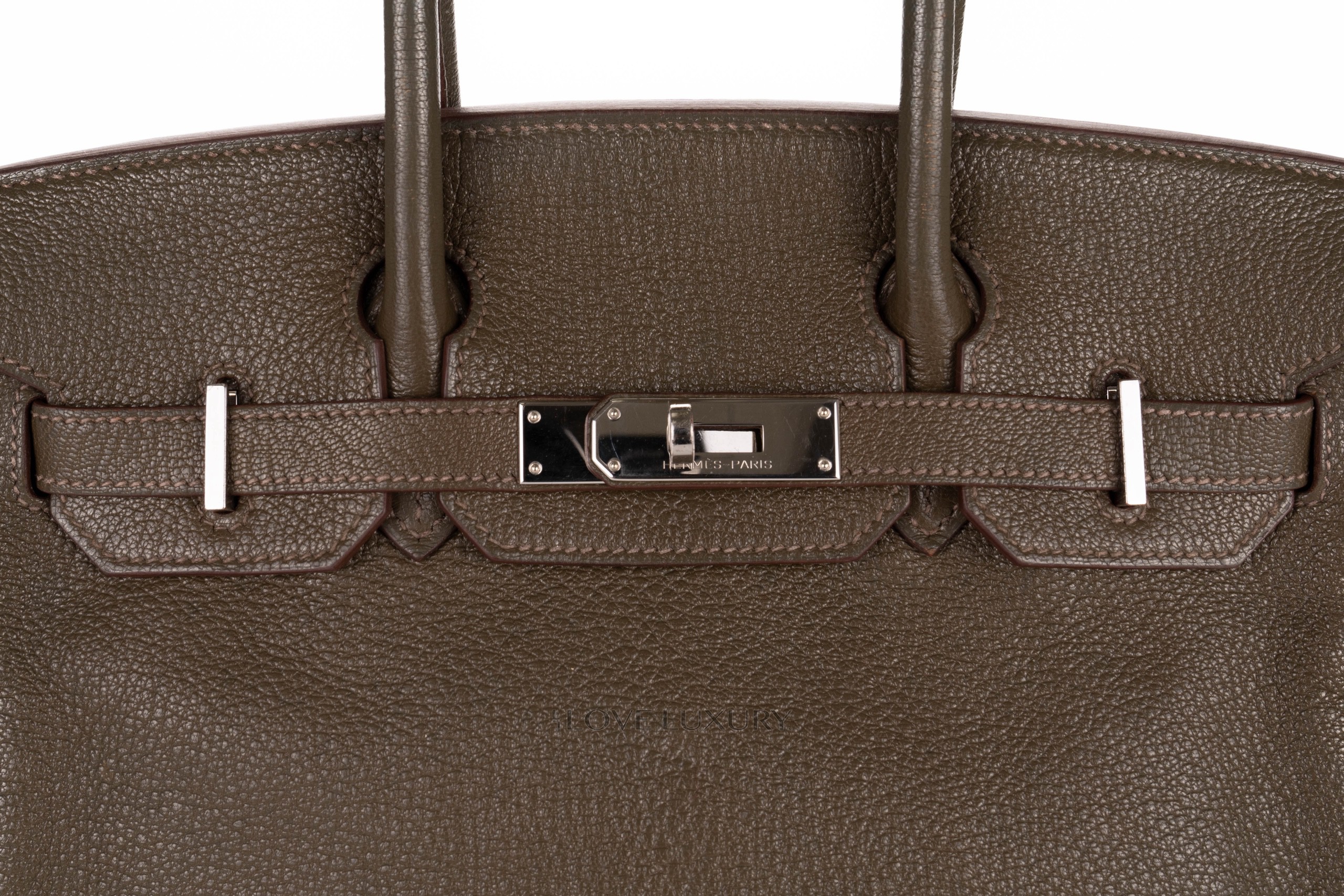 If you’re looking for the perfect sized Birkin but you’re on a budget and don’t mind a preloved bag, then this is the bag for you. Crafted in goatskin and comes in a beautiful Vert olive color and finally complemented with palladium hardware. This bag has been sent back to Hermes for a spa. Comes to you with Dustbag, Repair receipt, Lock, Key, and Clochette