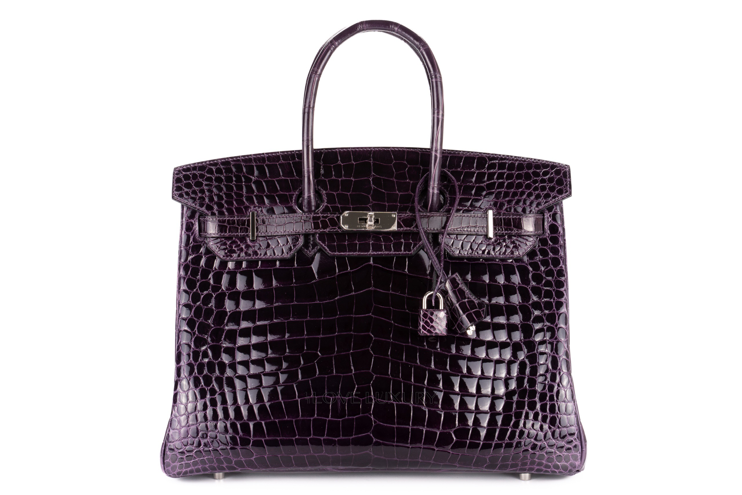 Hermès Birkin 35 Amethyst Porosus Crocodile Palladium Hardware