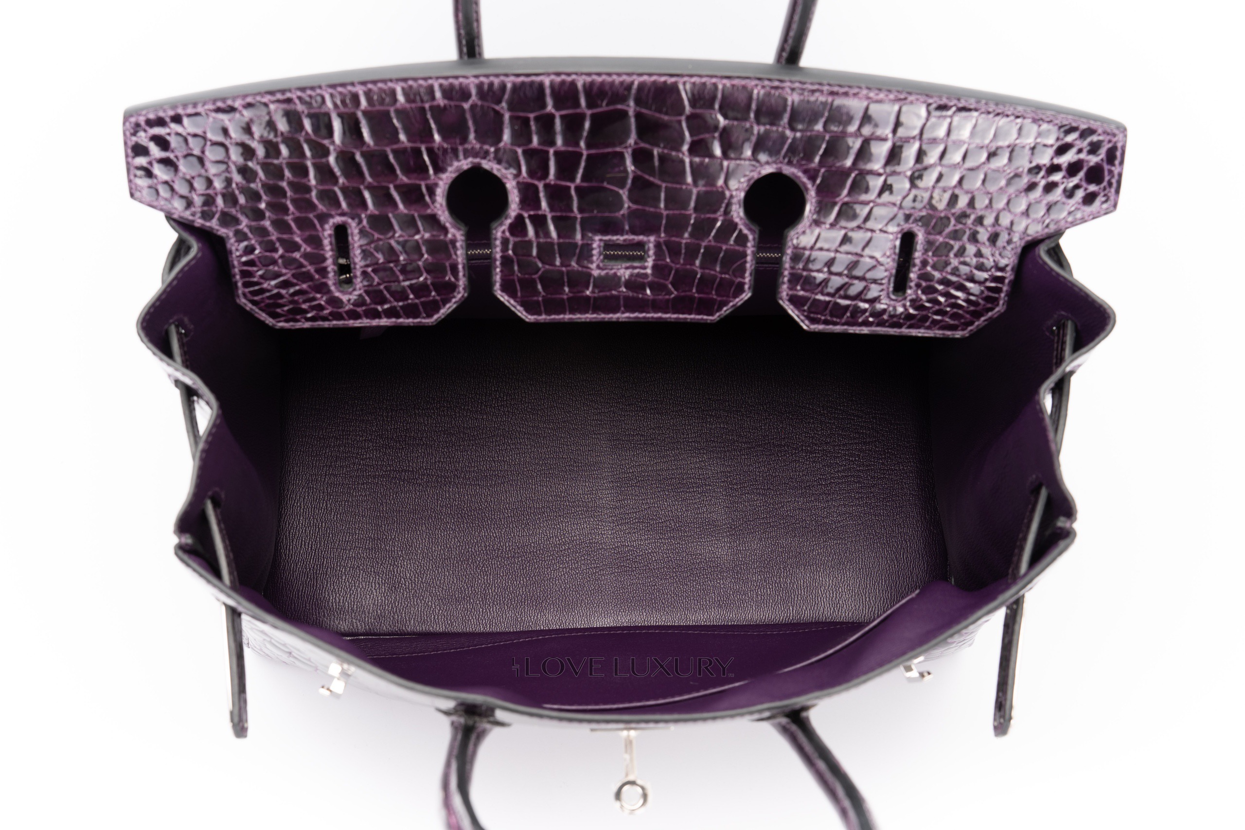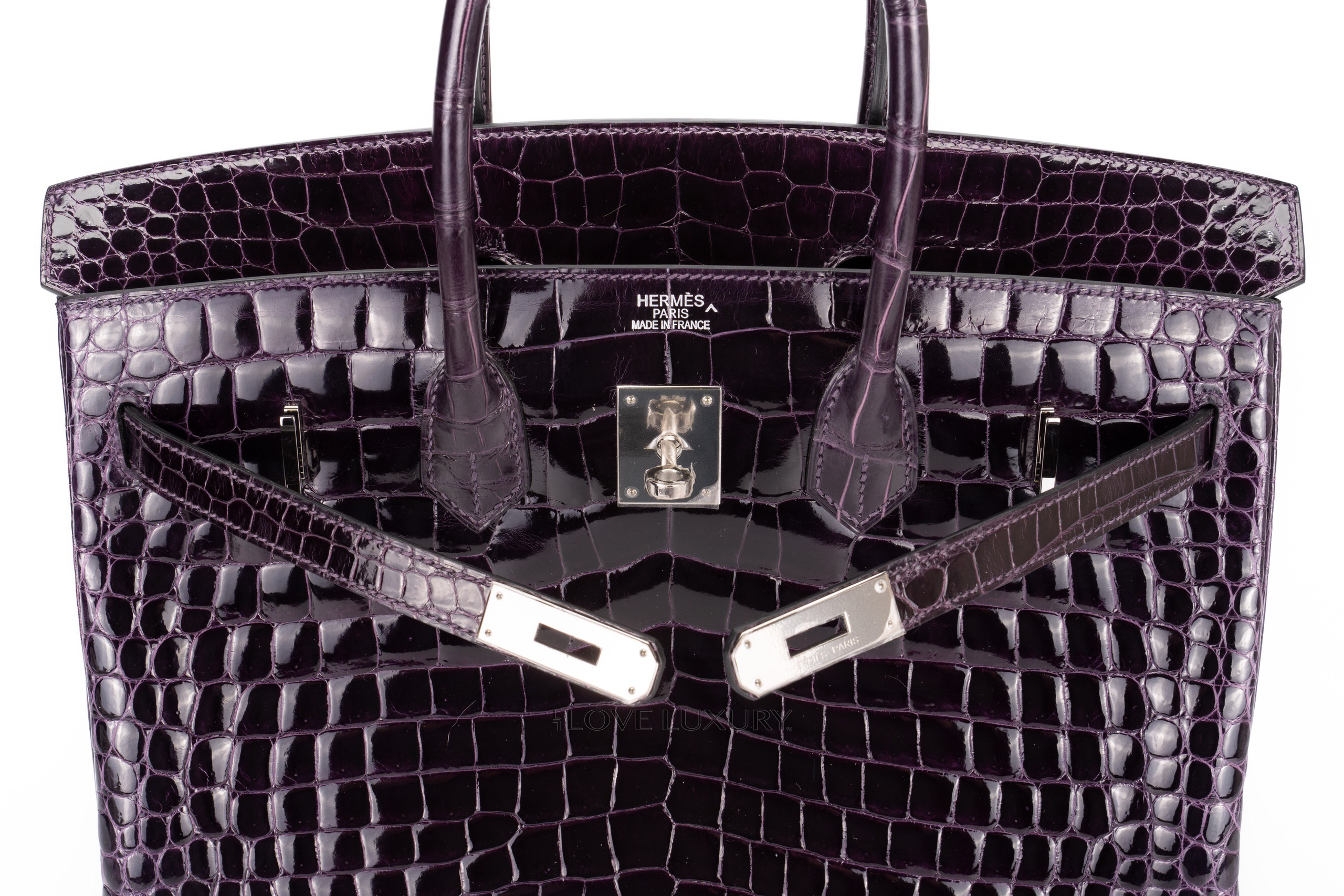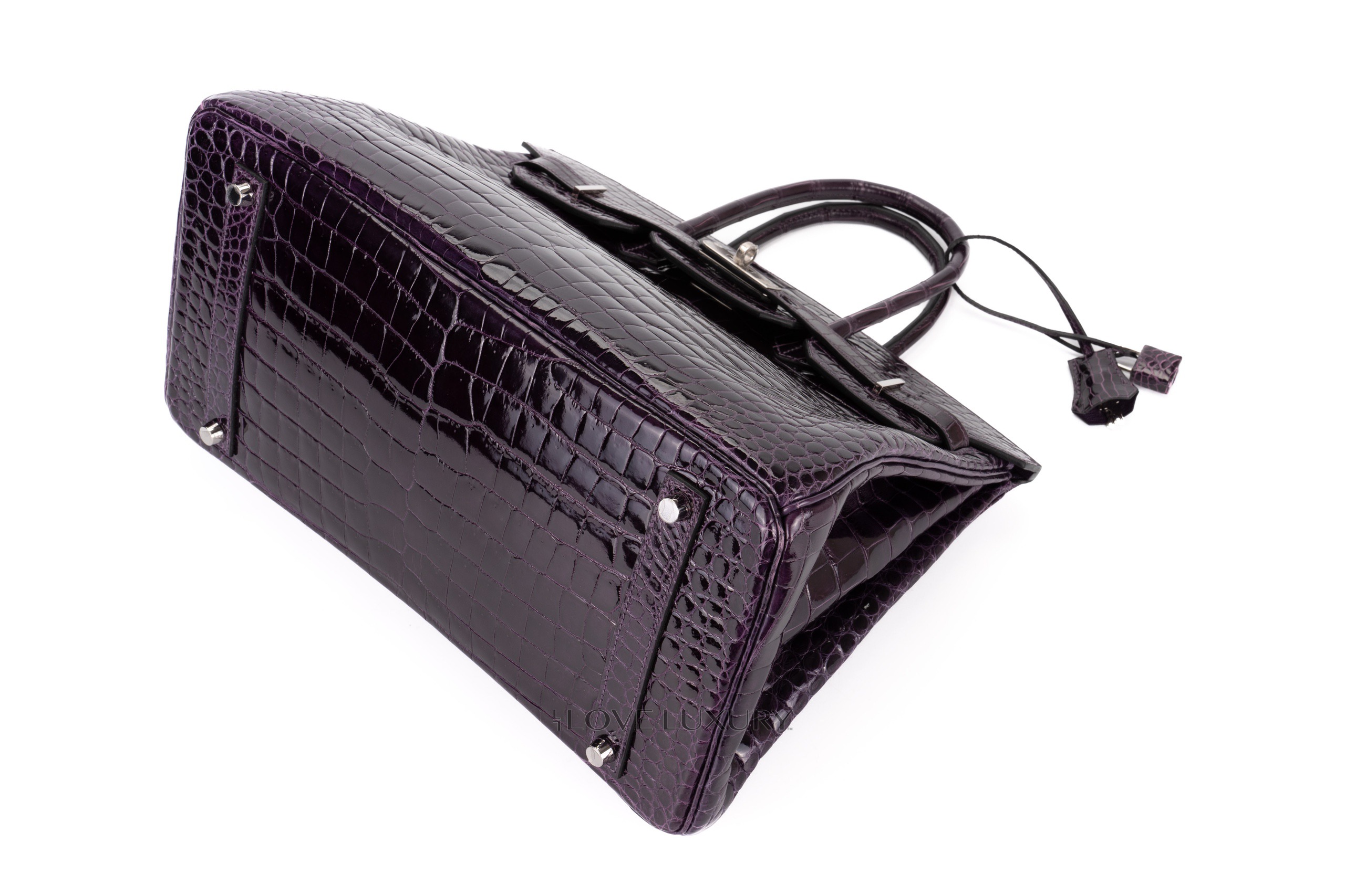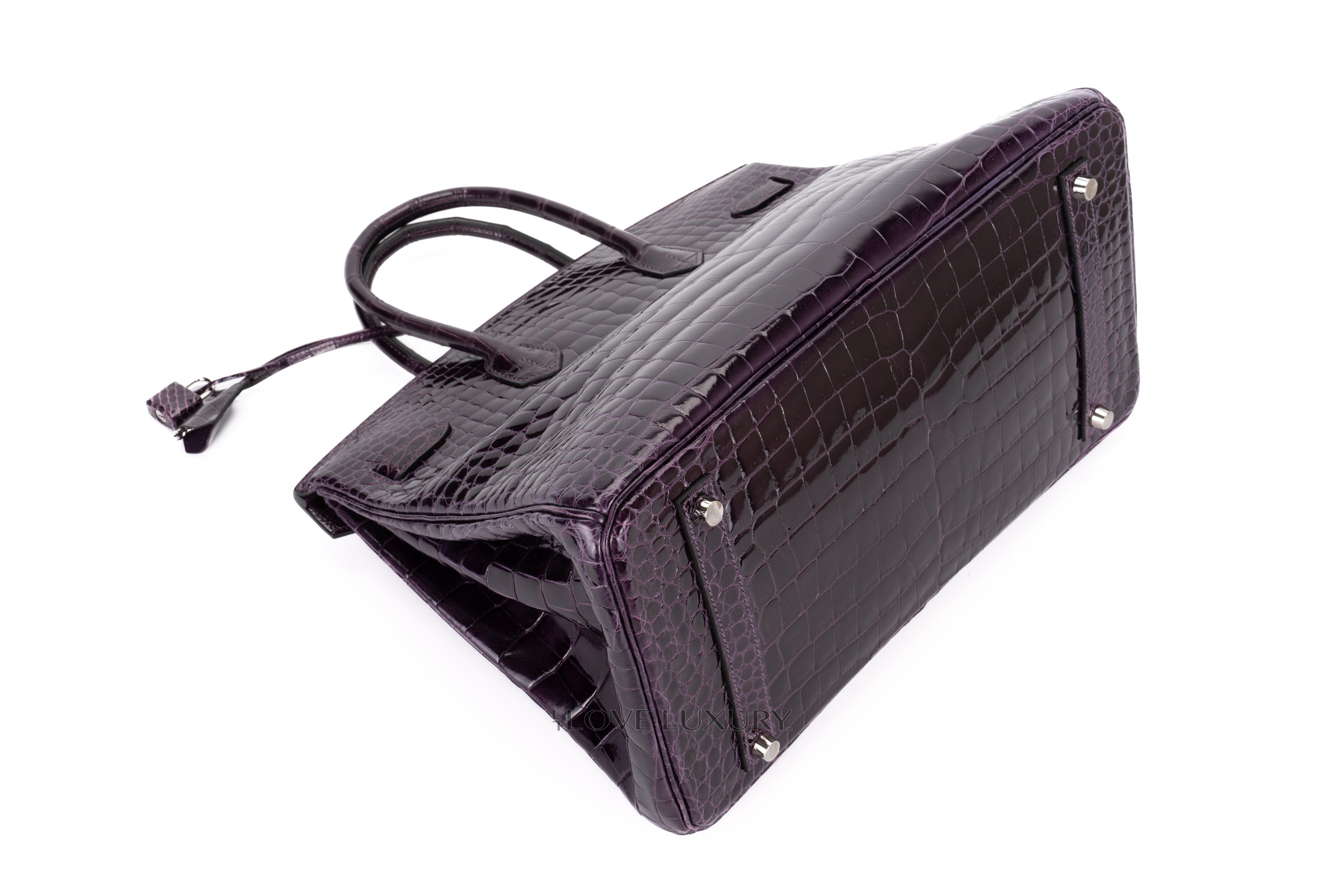 Hermès Birkin 35 Amethyst Porosus Crocodile Palladium Hardware / 2012 P Square Pre-Loved condition