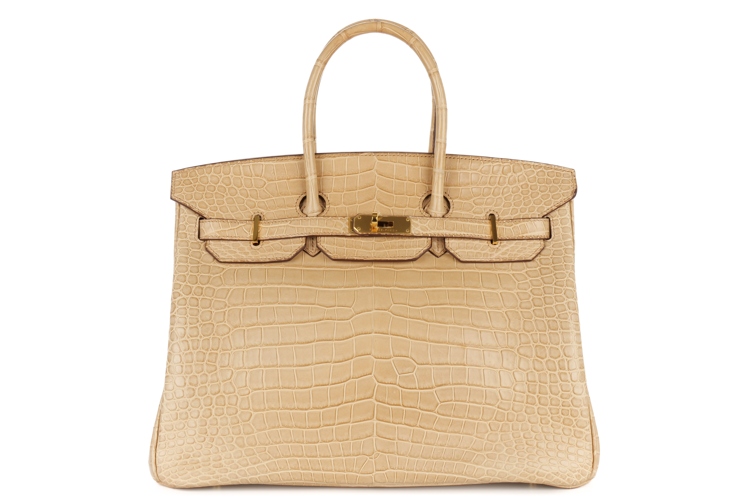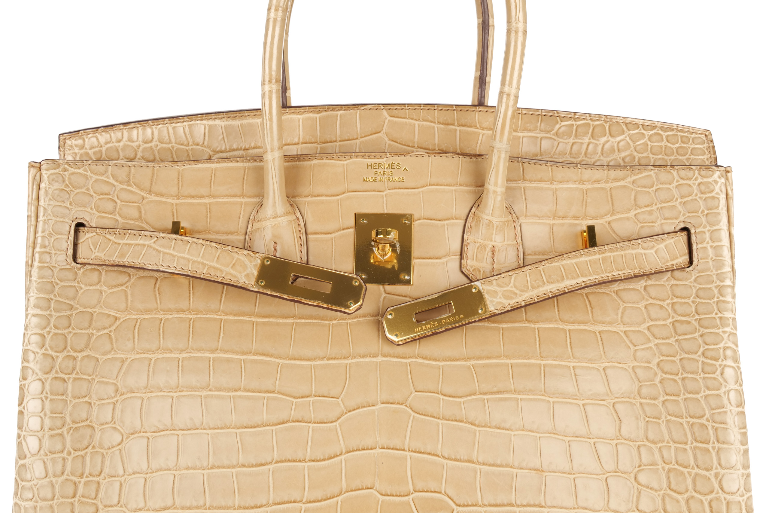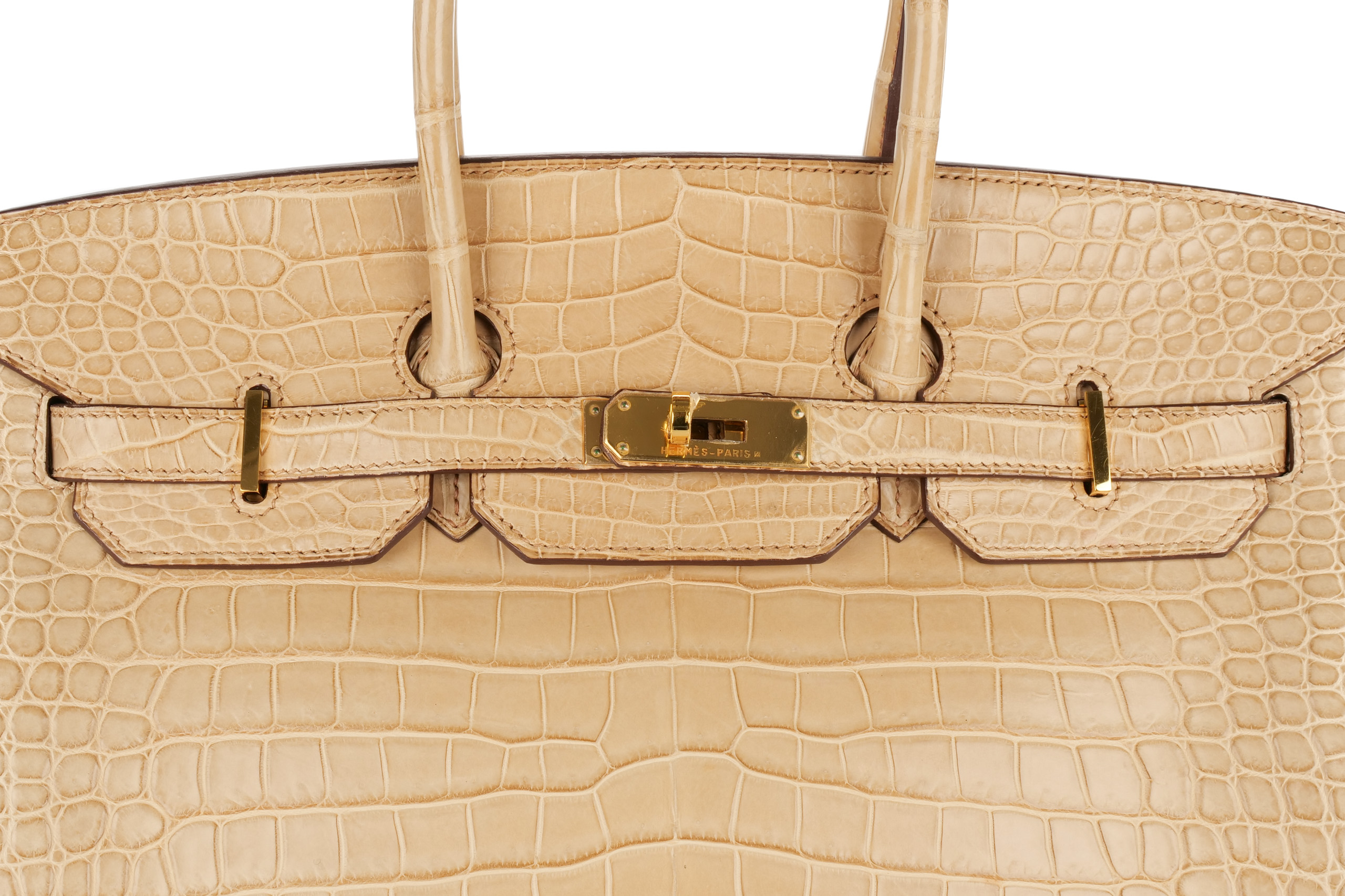 Hermès Birkin 35 Beige Poussiere Matte Crocodile Porosus Gold Hardware / O Square Stamp 2012, Preloved