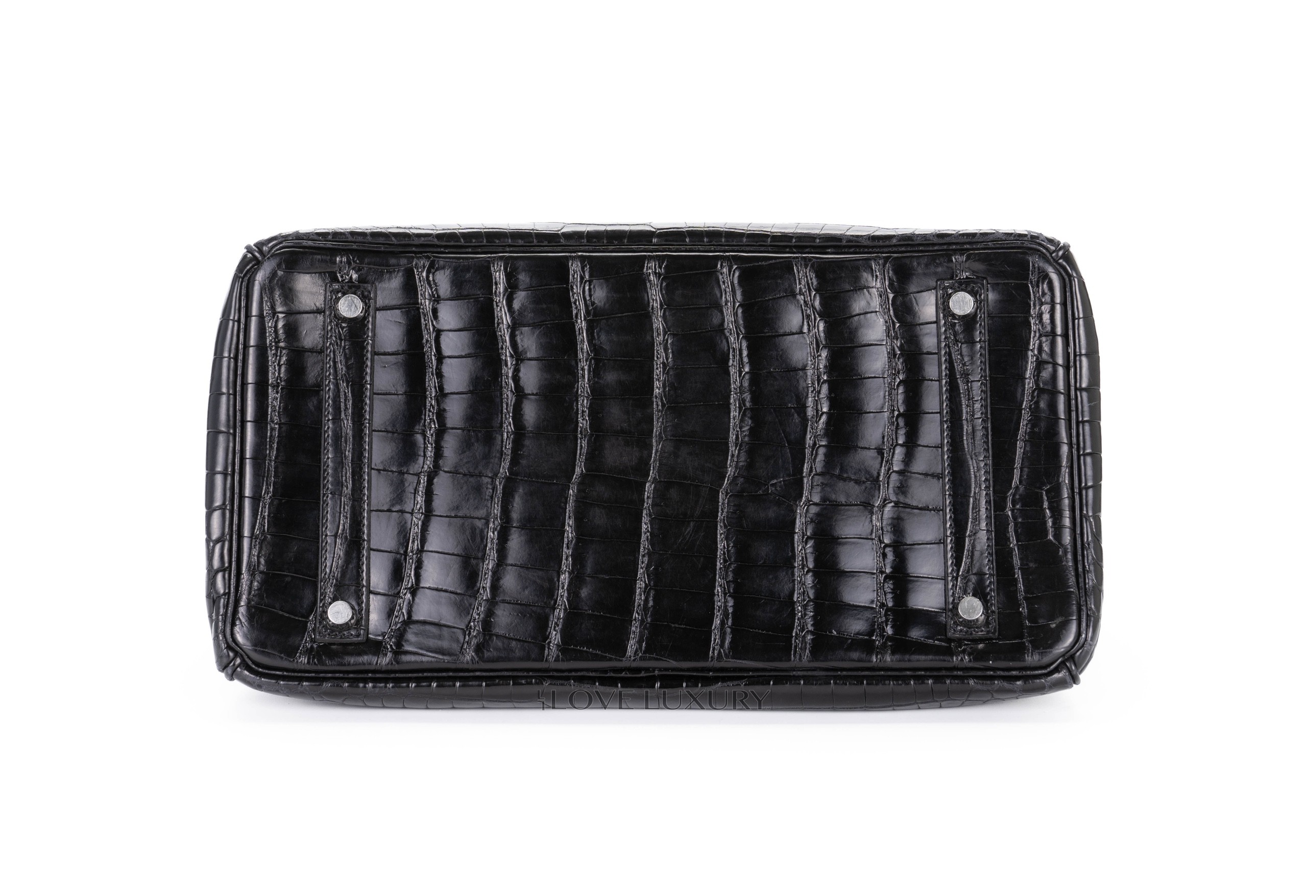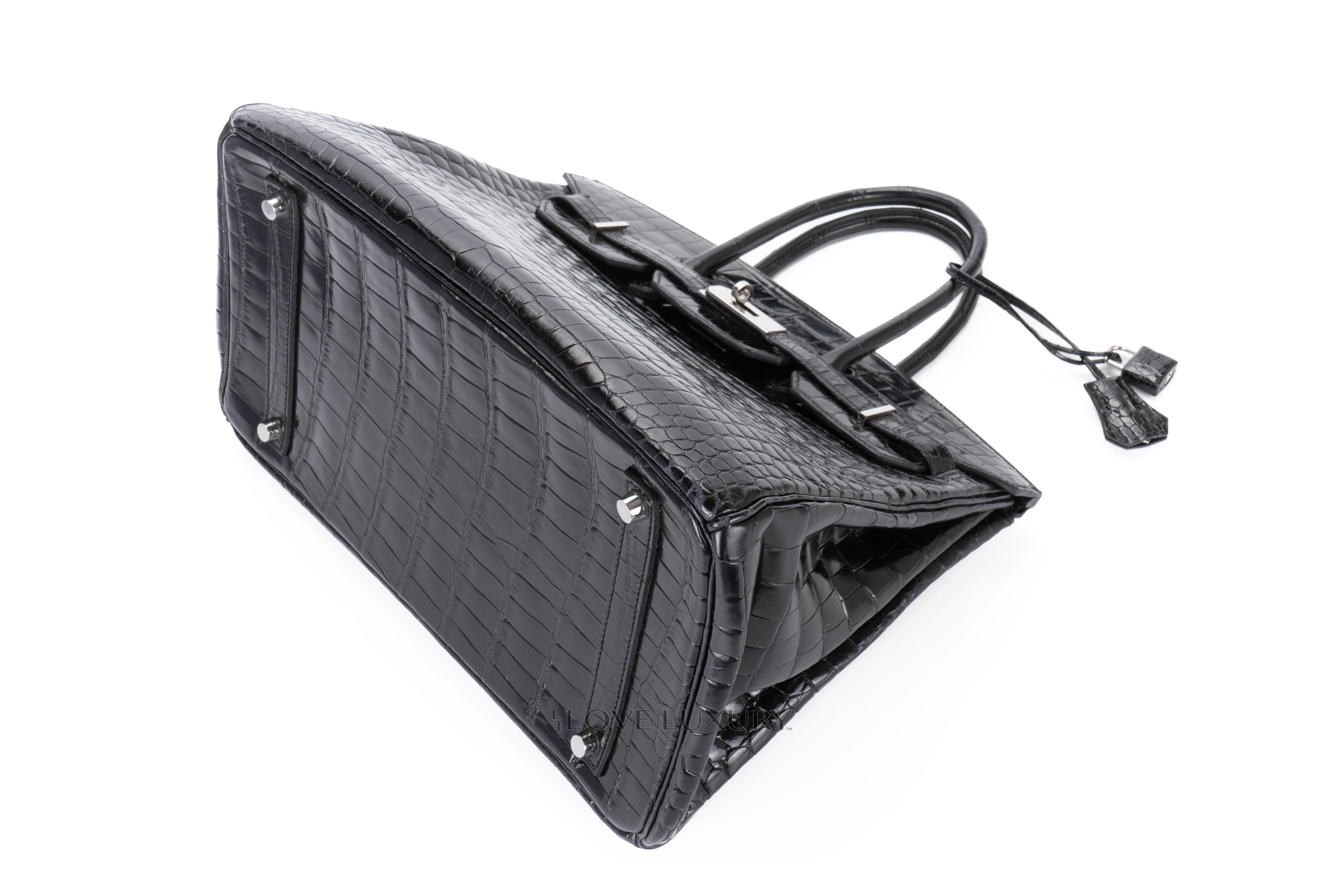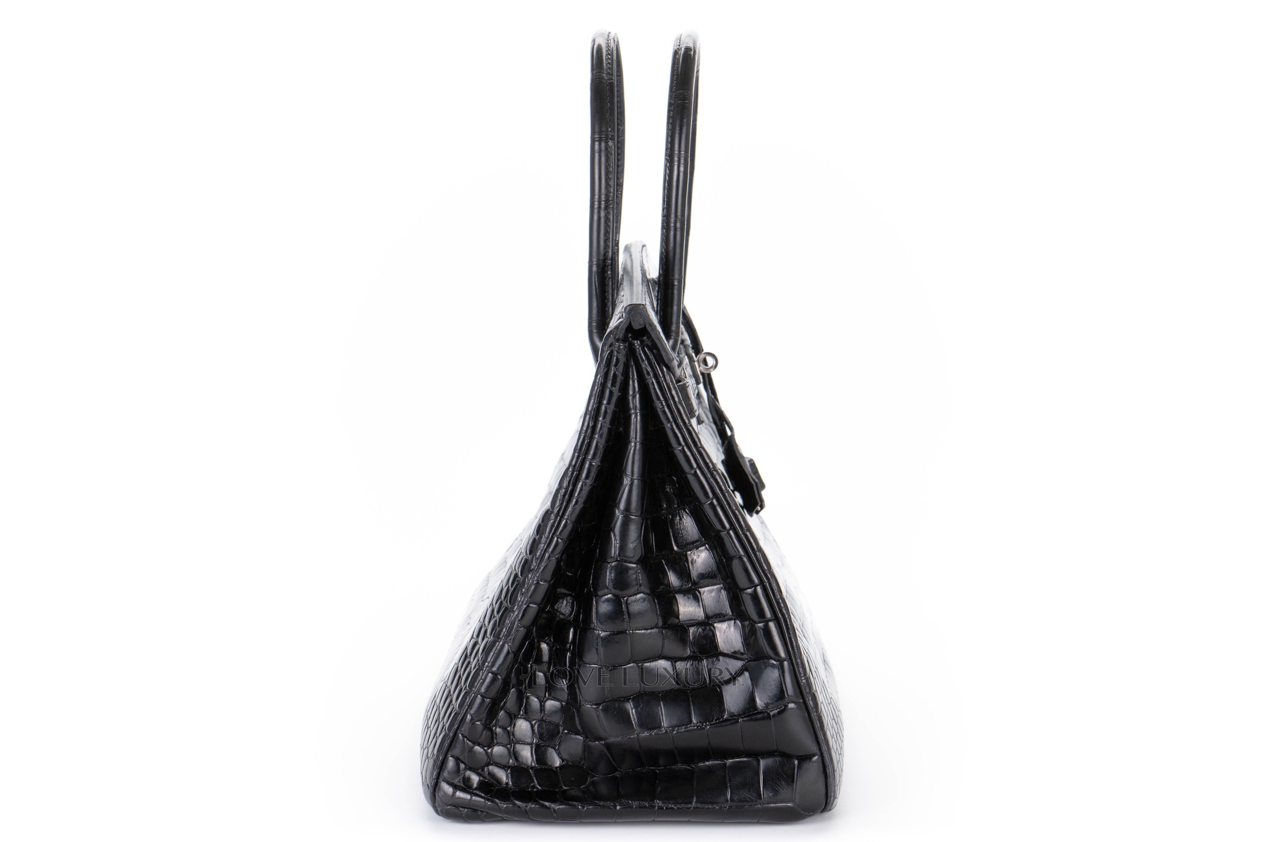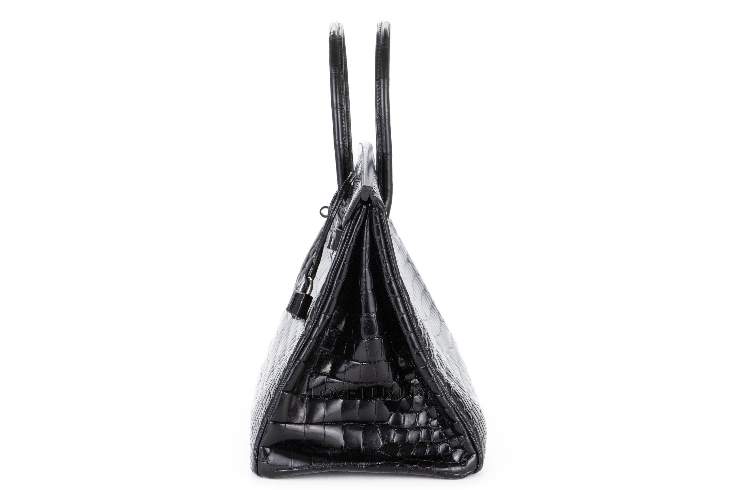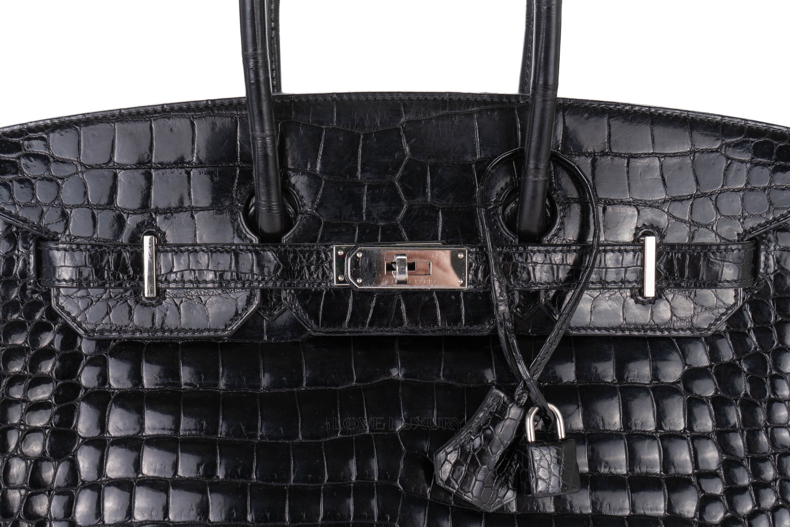Hermès Birkin 35 Black Crocodile Shiny Phw / R Square 2014 Pre-Loved condition