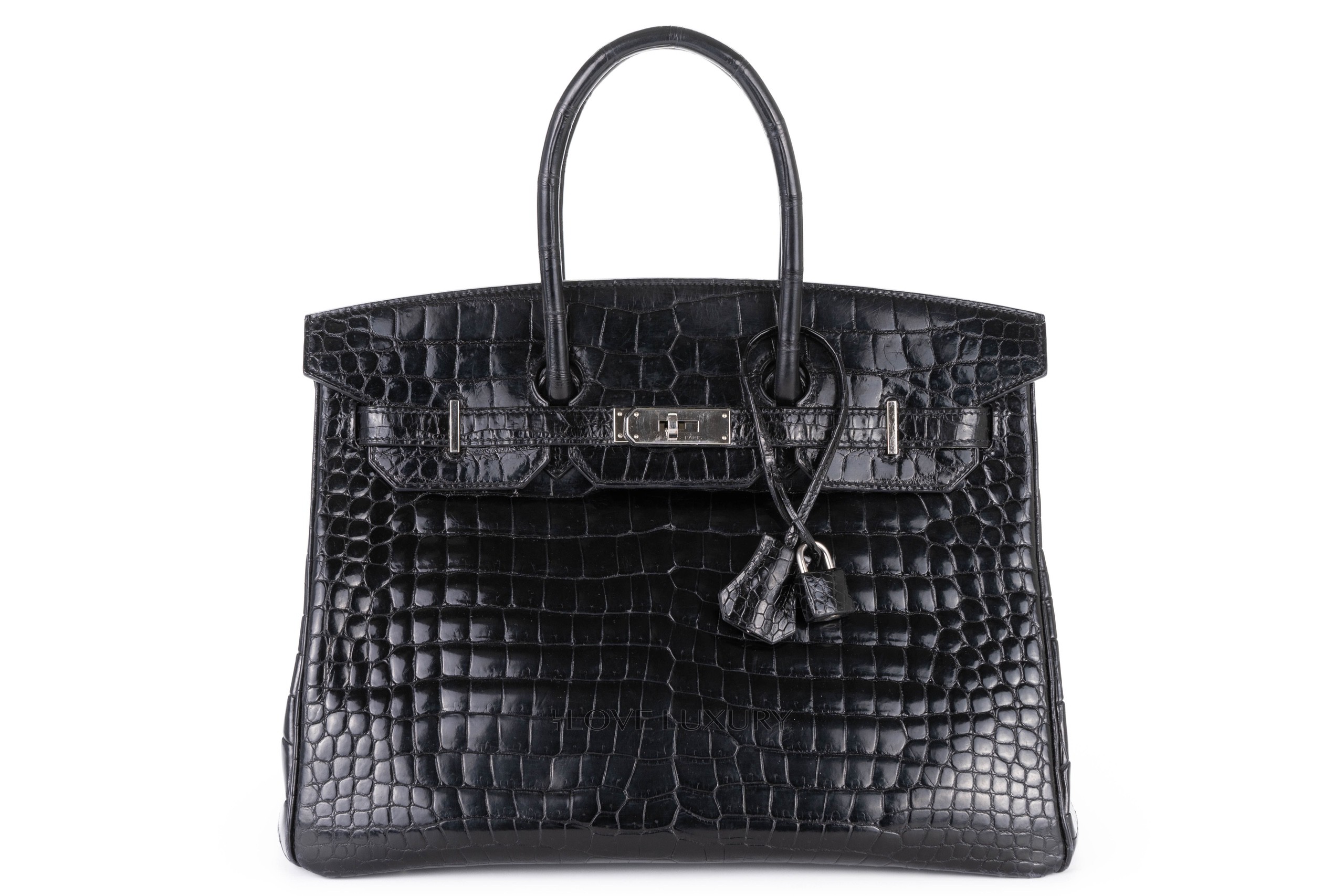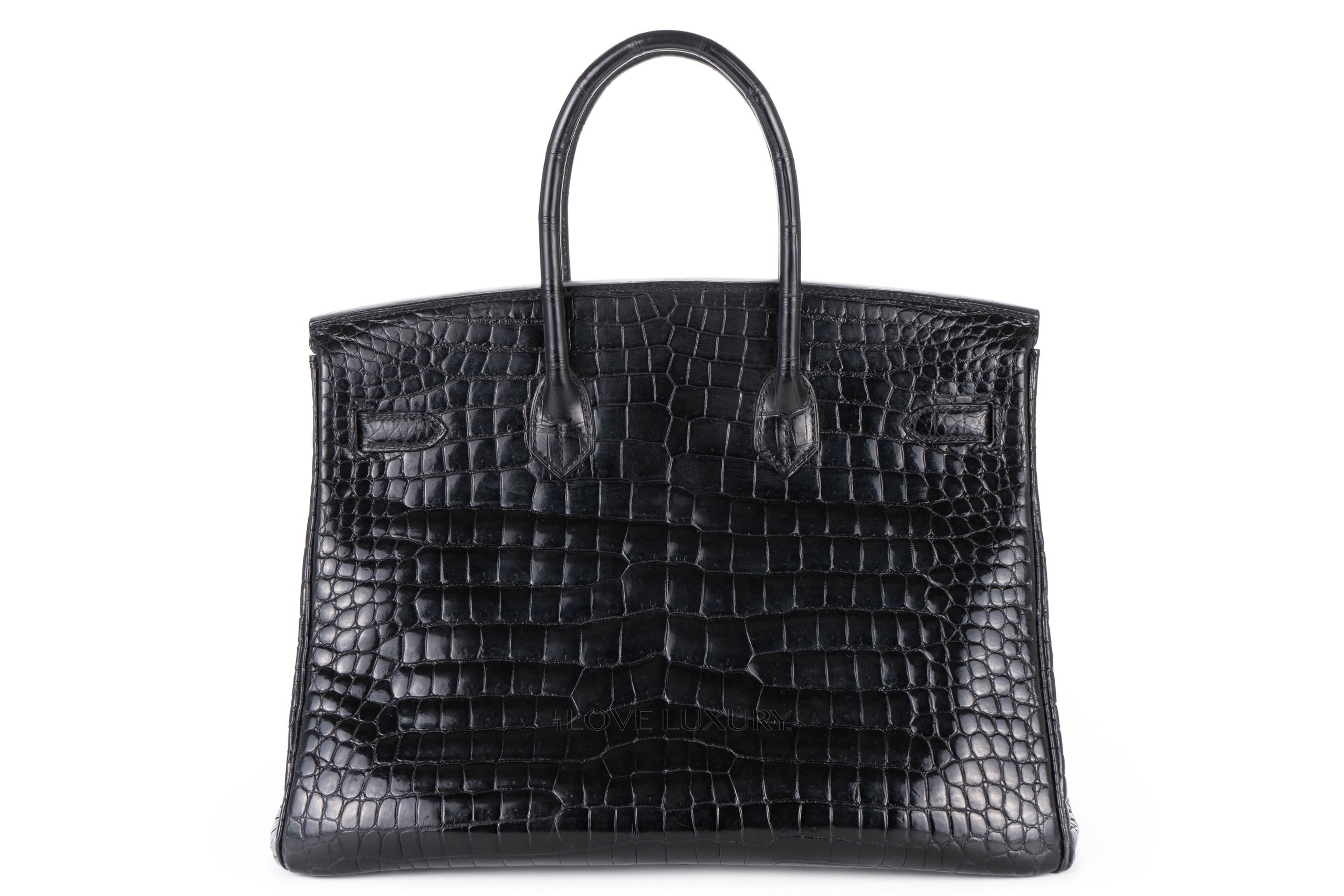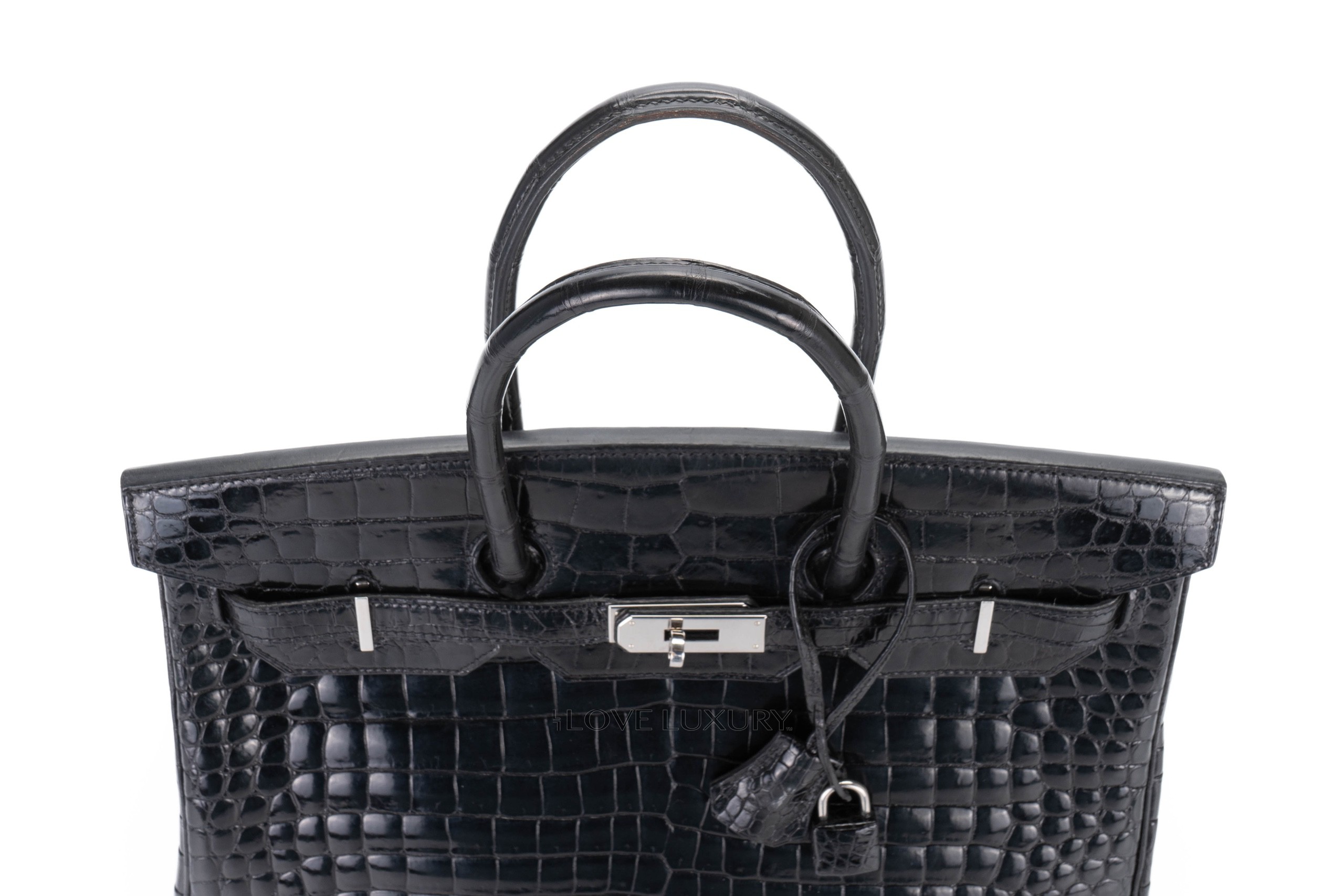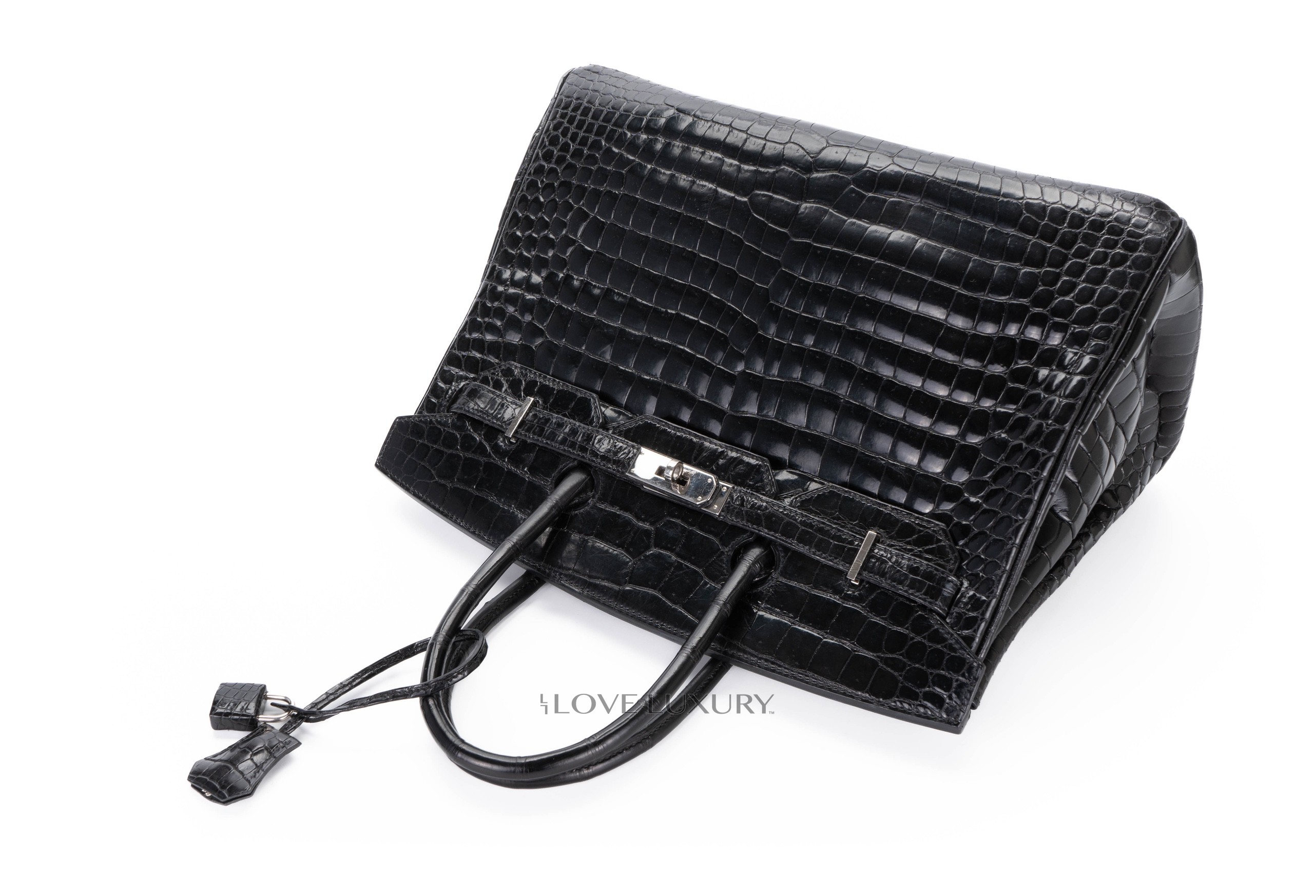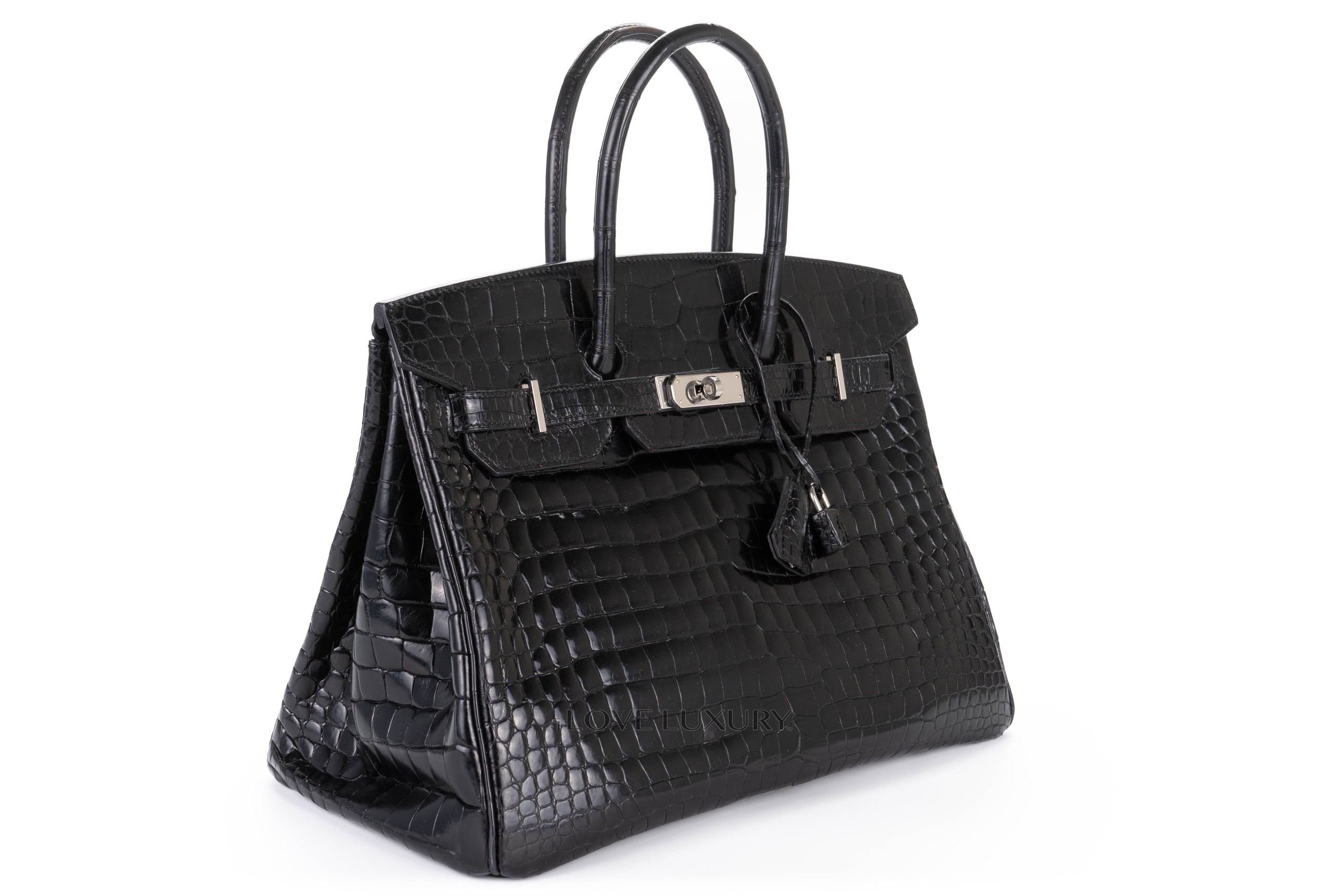 Hermès Birkin 35 Black Crocodile Shiny Phw / R Square 2014 Pre-Loved condition