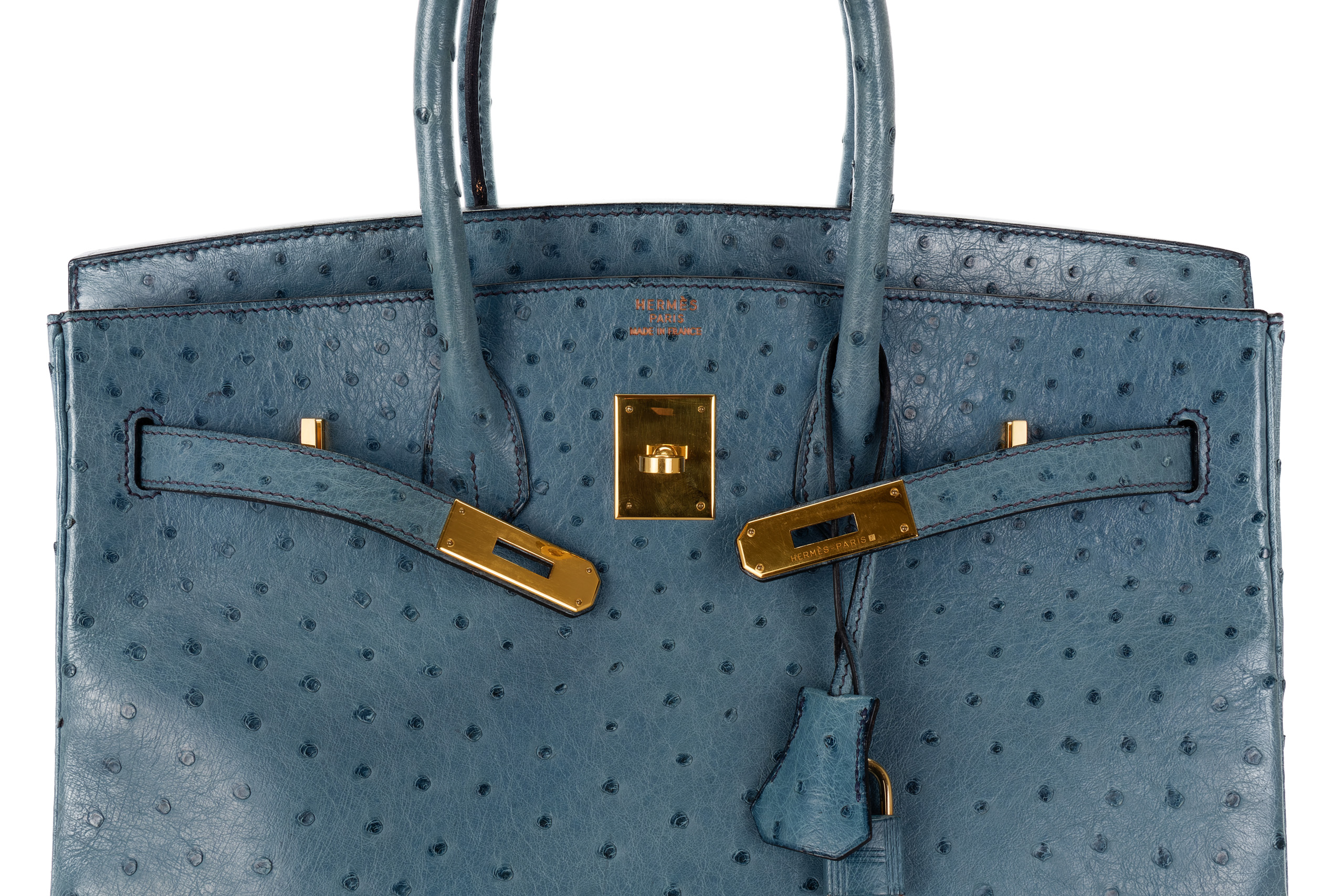 Hermès Birkin 35 Blue Jean Ostrich Gold Hardware / R Square 1999 Pre-Loved condition