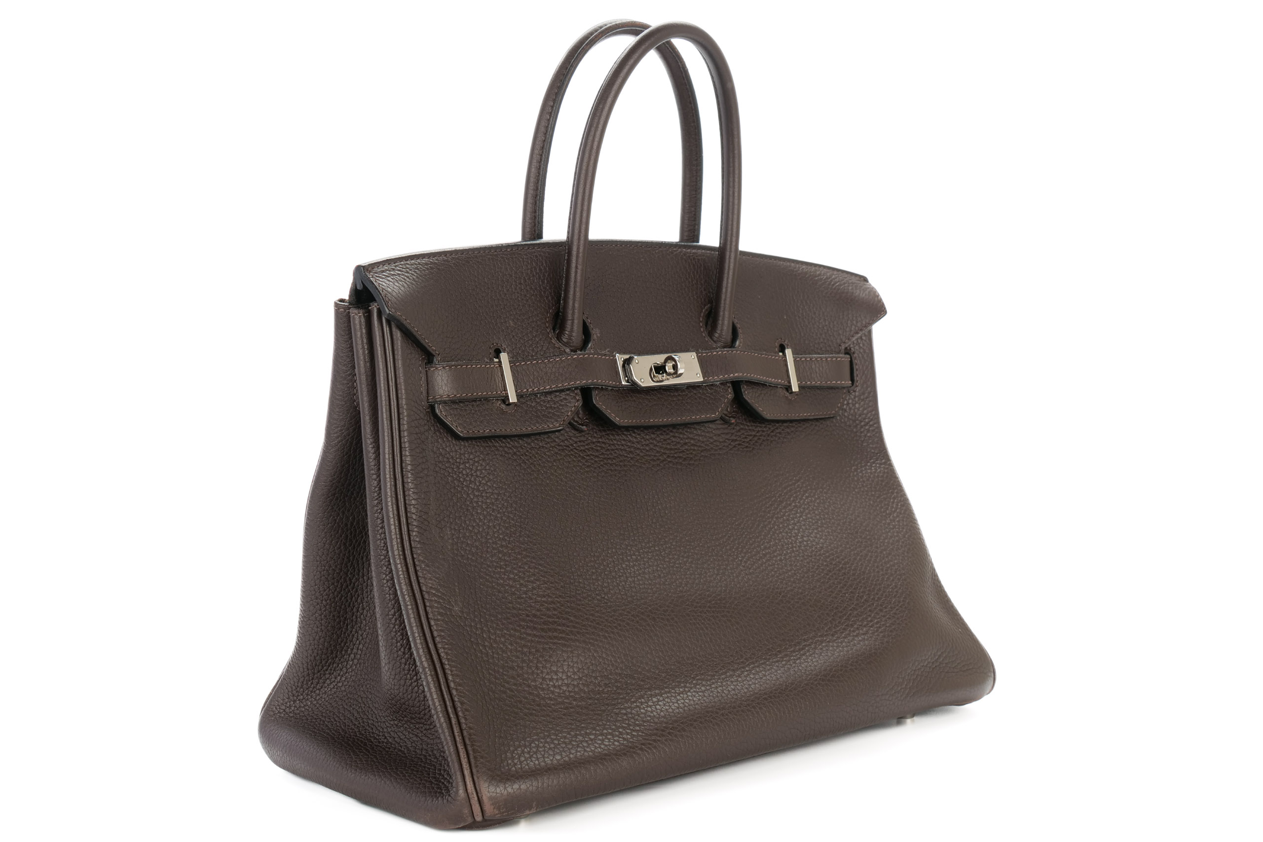 Hermès Birkin 35 Ebene Clemence Palladium Hardware / K Stamp 2007, Preloved