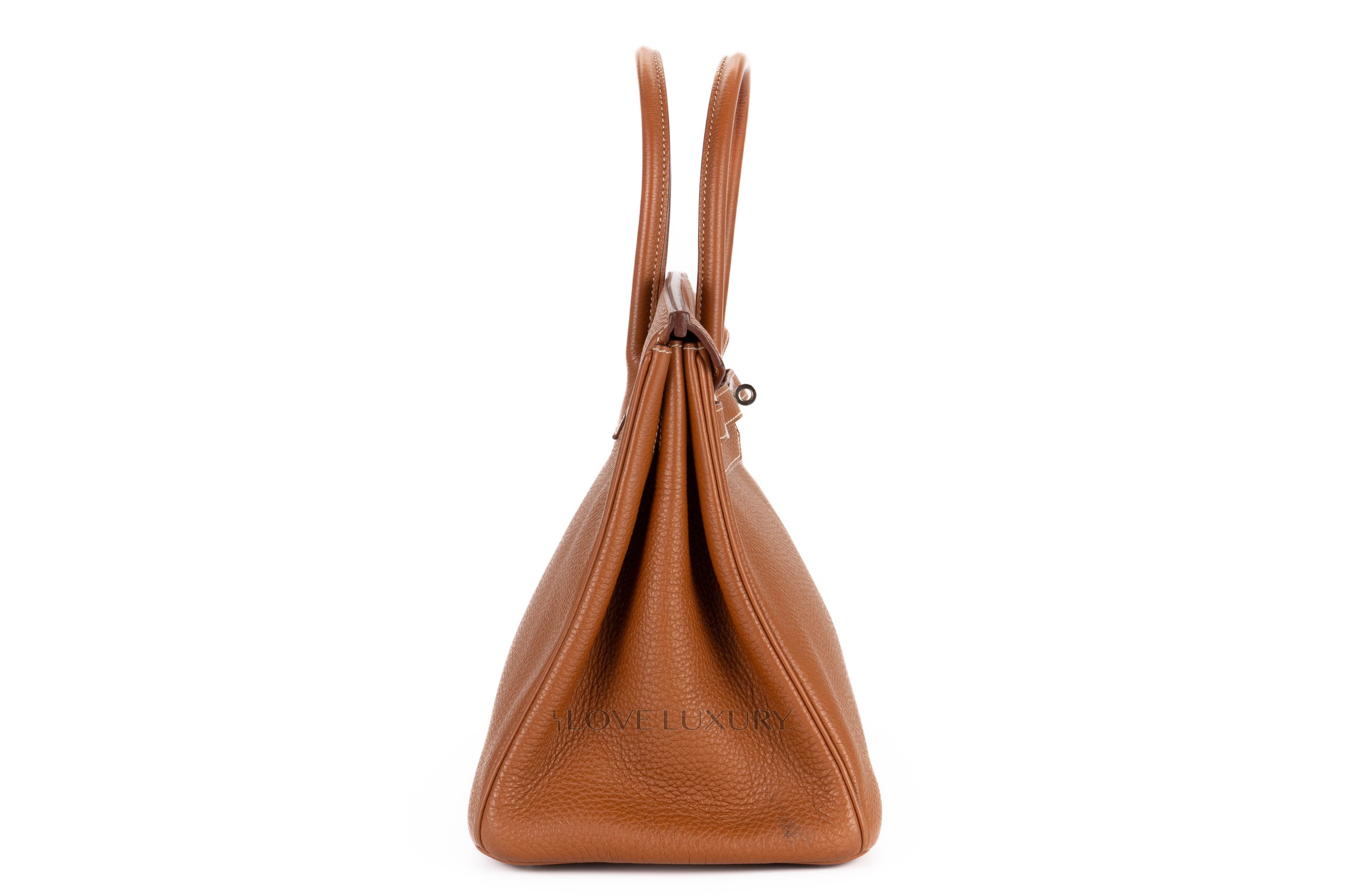 Birkin 35’s are coming back with a vengence, more and more people are travelling and using tthe B35 as their trusted travel companion. This size bag also works exceptionally well as an everyday bag for work or general wear. The Birkin 35 is large enought to carry all of your daily work essentials including your laptop. This particular model is a b35 gold togo with palladium hardware. It is in a preloved condition and comes to you with lock, key, clochette and Authentication.