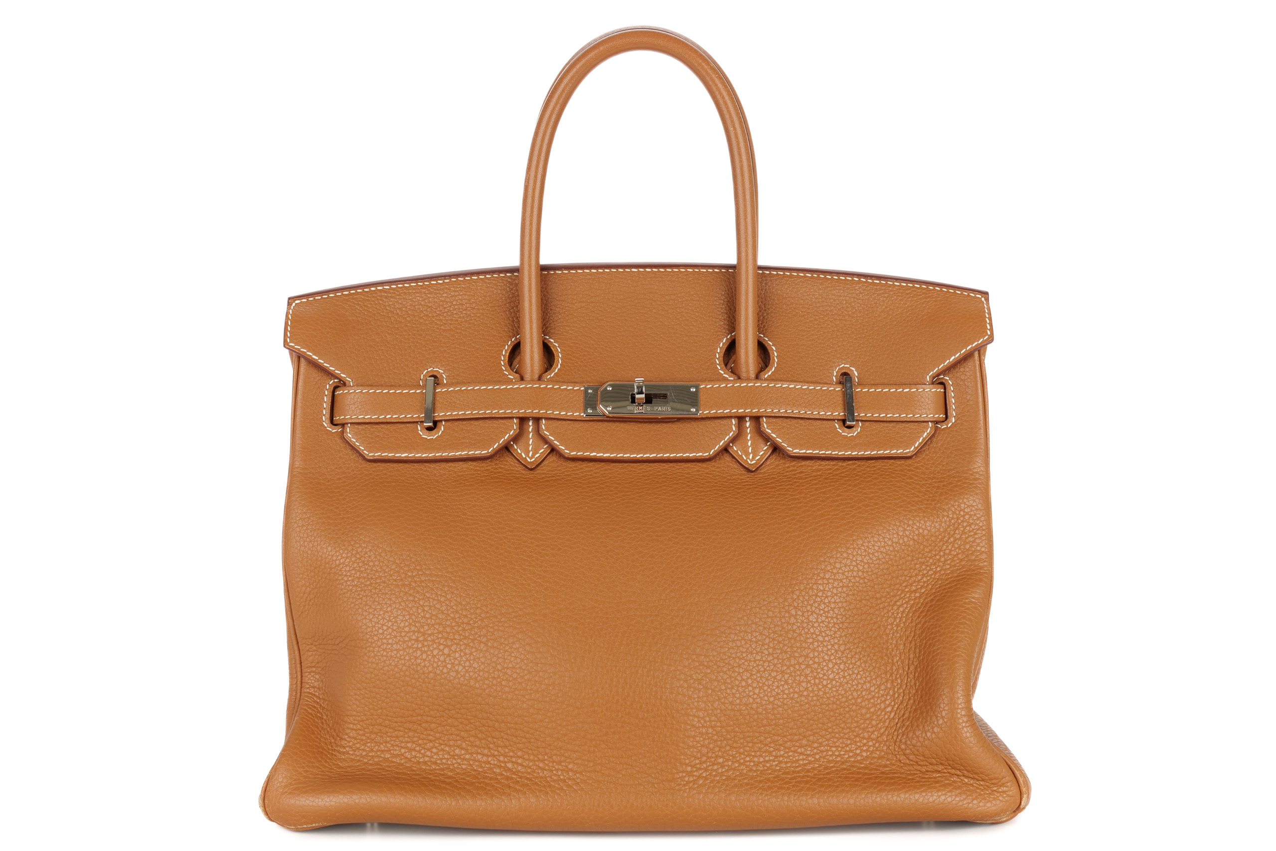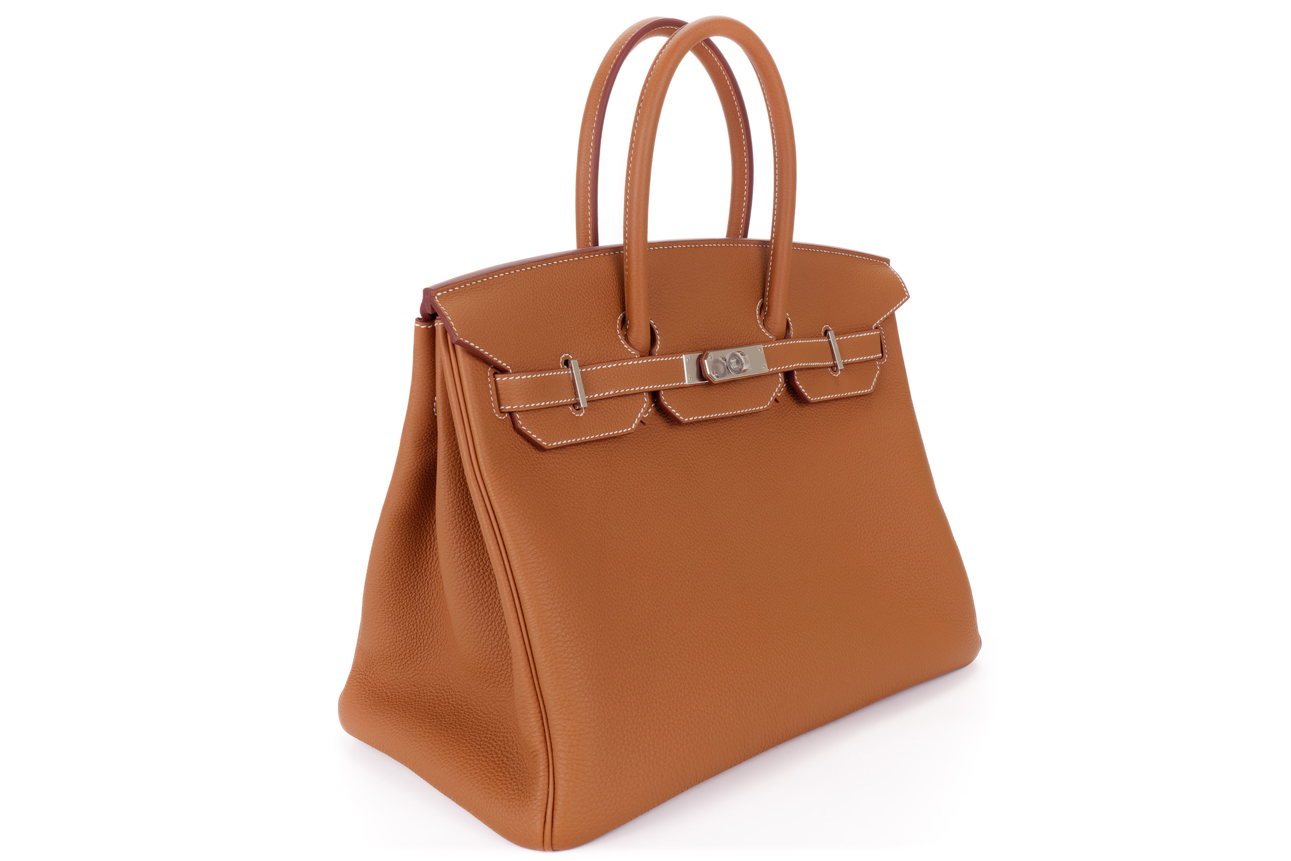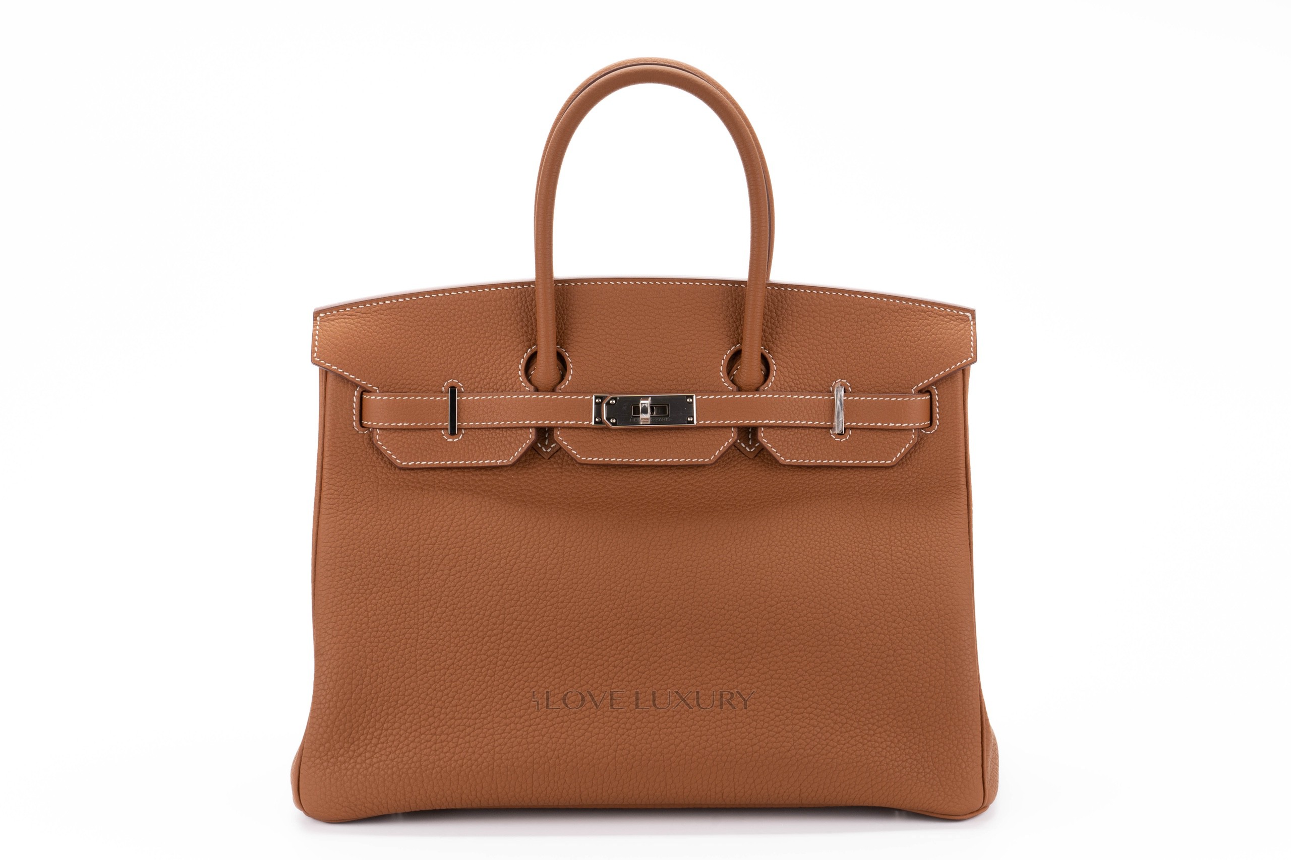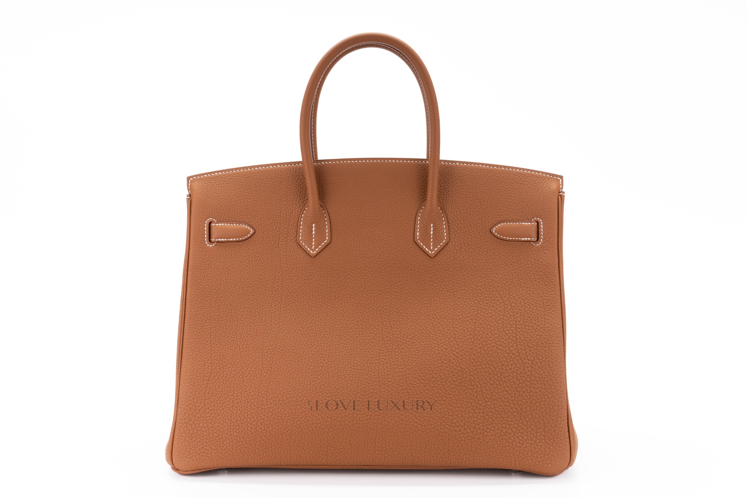 Birkin 35’s are coming back with a vengence, more nd more people are travelling and using tthe B35 as their trusted travel companion. This size bag also works exceptionally well as an everyday bag for work or general wear. The Birkin 35 is large enought to carry all of your daily work essentials including your laptop. This particular model is a b35 gold togo with palladium hardware. It is in box fresh condition and comes as a full set including the receipt.