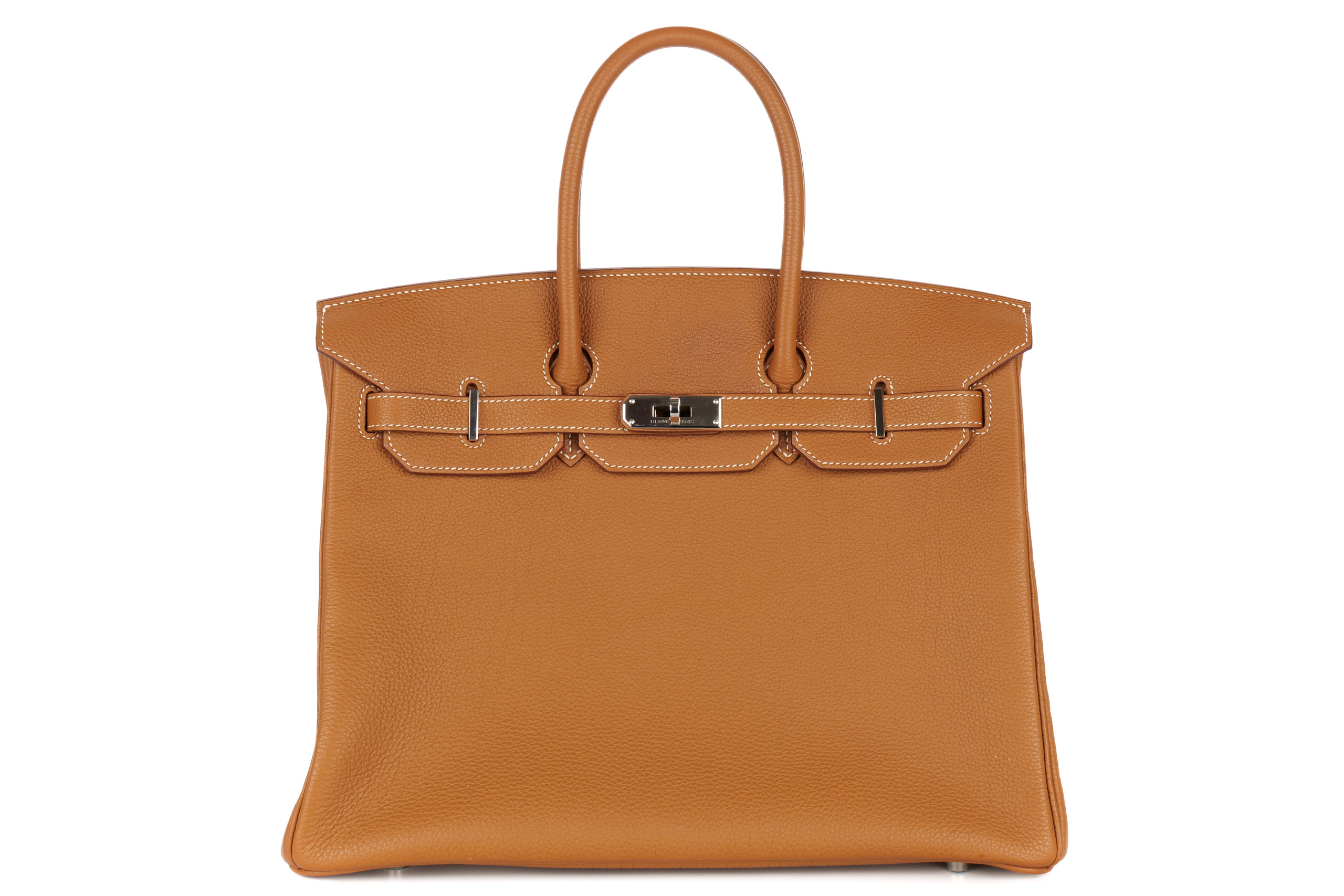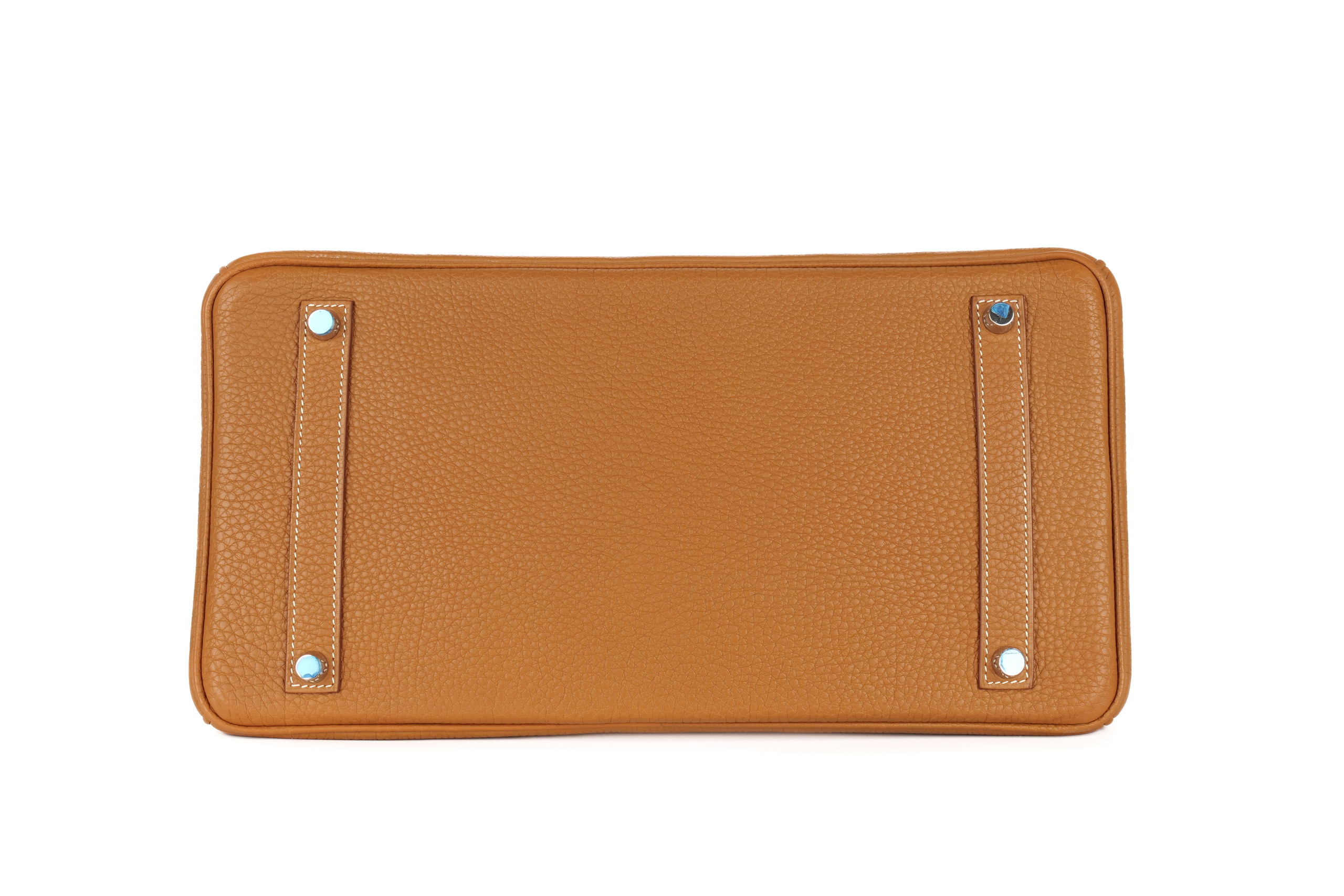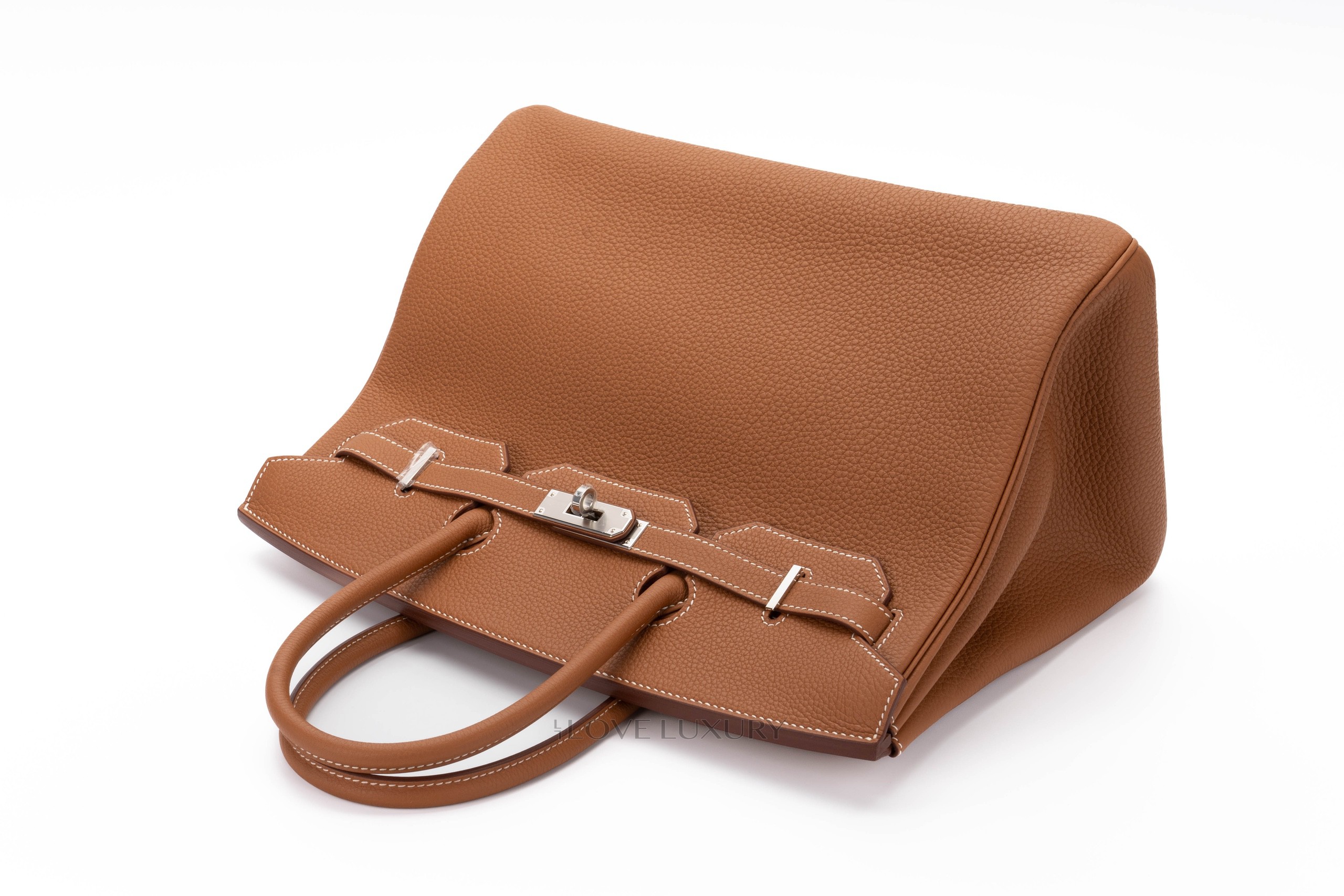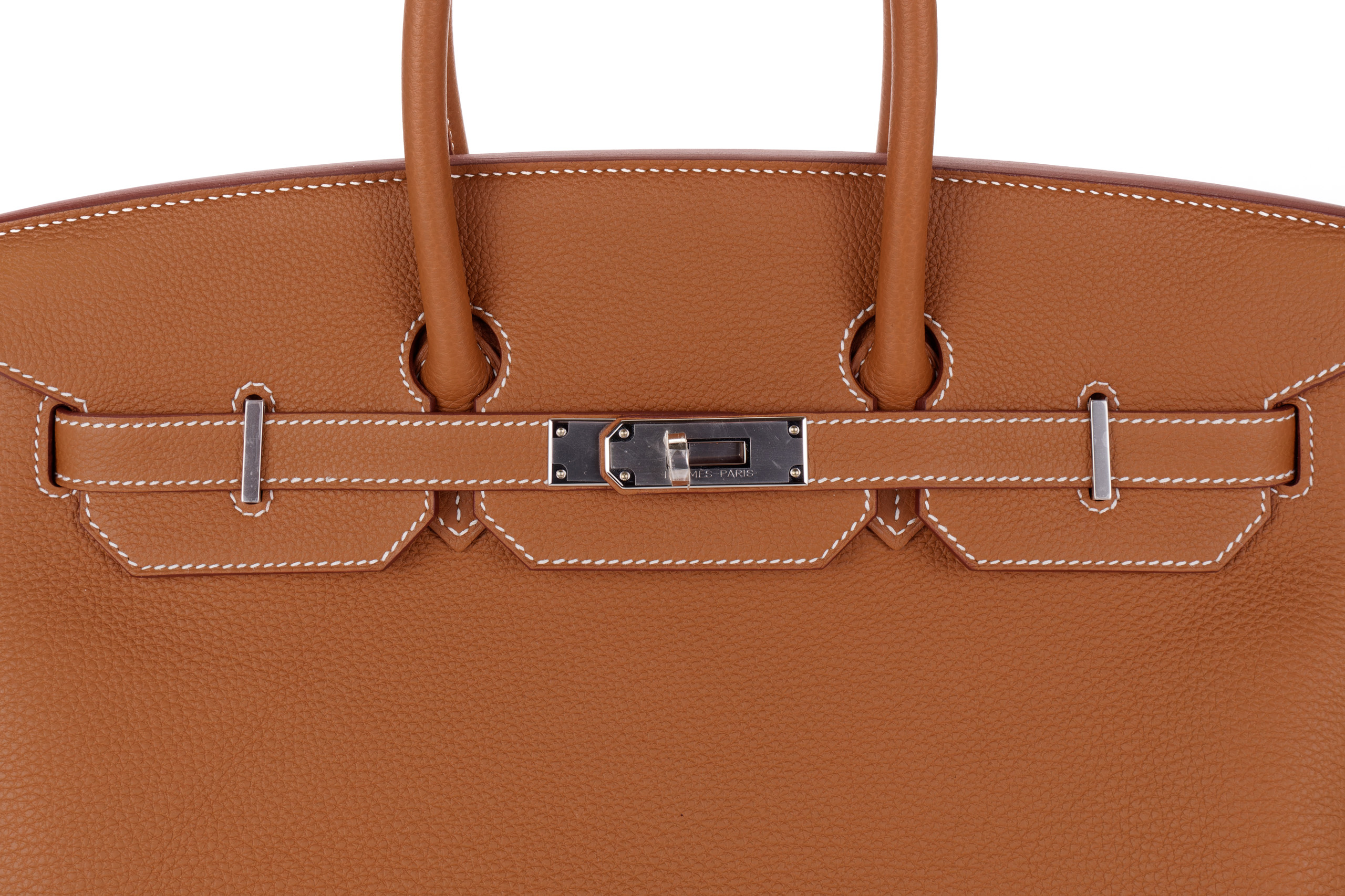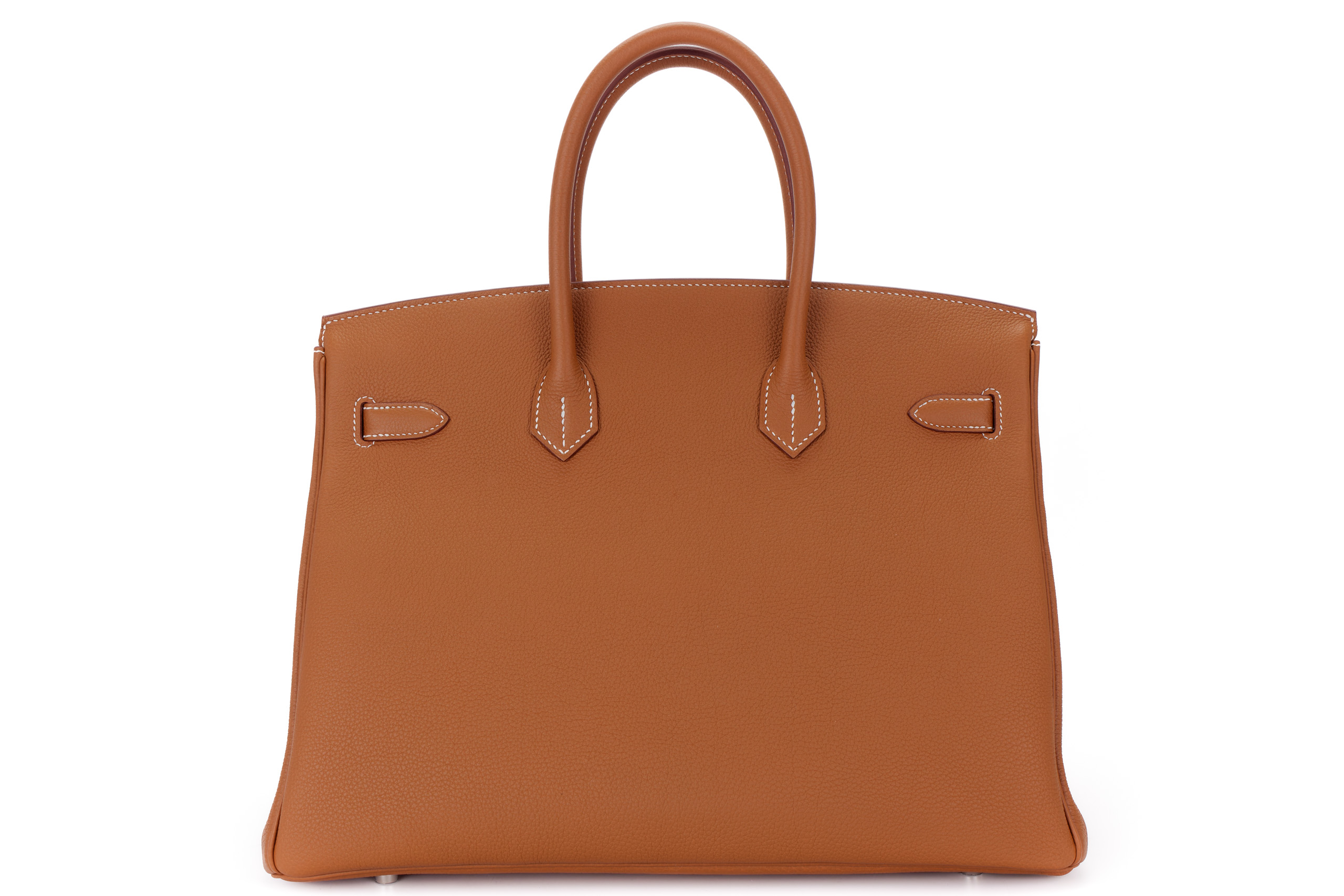 Birkin 35’s are coming back with a vengence, more nd more people are travelling and using tthe B35 as their trusted travel companion. This size bag also works exceptionally well as an everyday bag for work or general wear. The Birkin 35 is large enought to carry all of your daily work essentials including your laptop. This particular model is a b35 gold togo with palladium hardware. It is in box fresh condition and comes as a full set including the receipt.