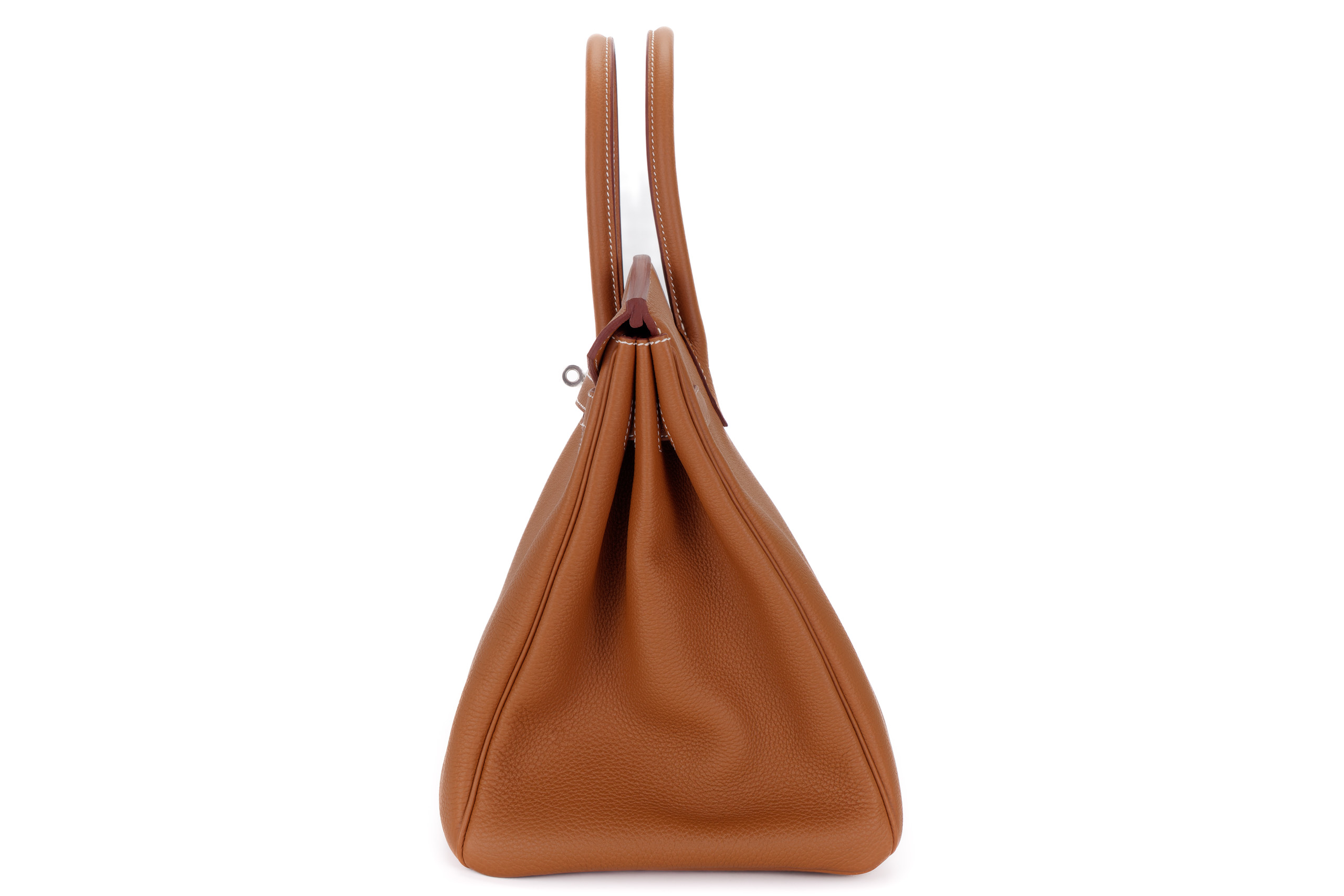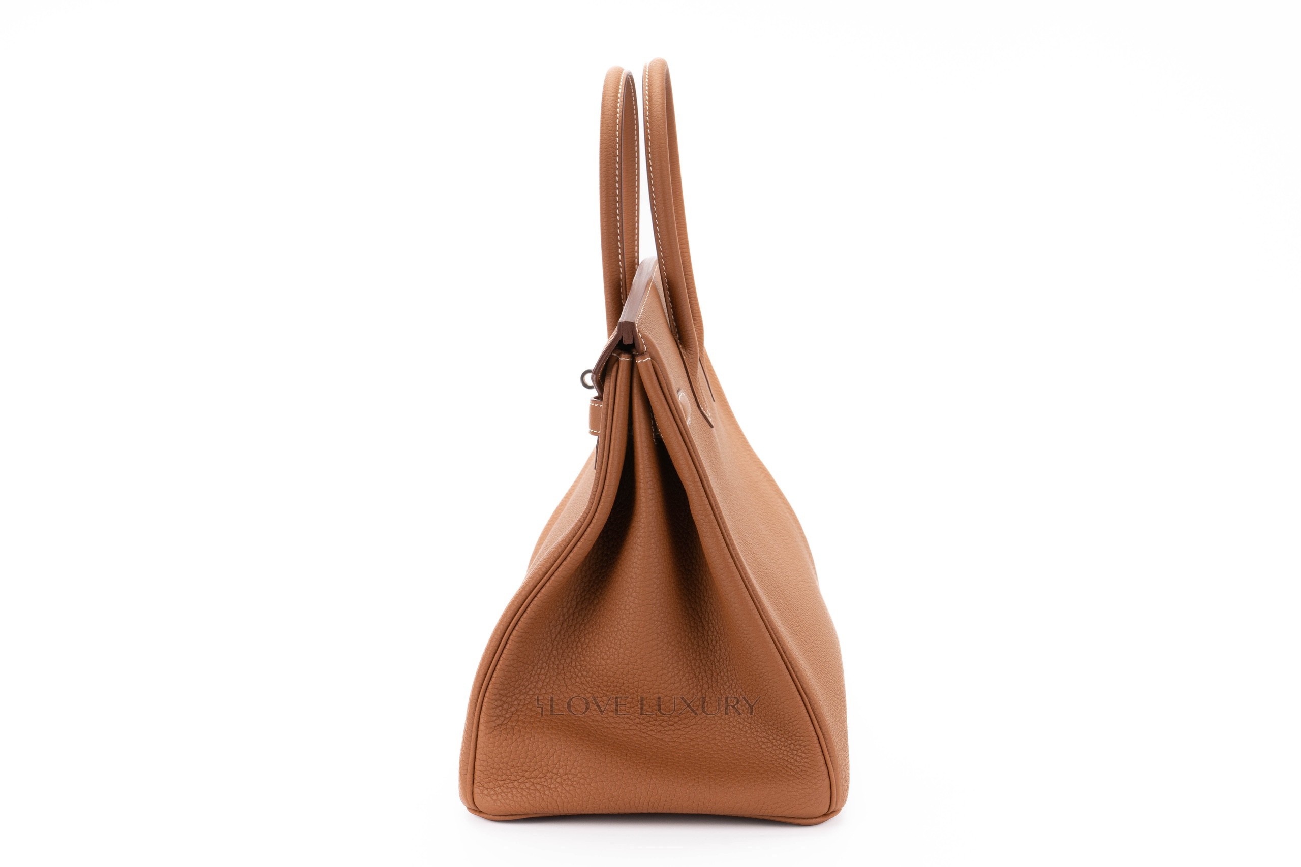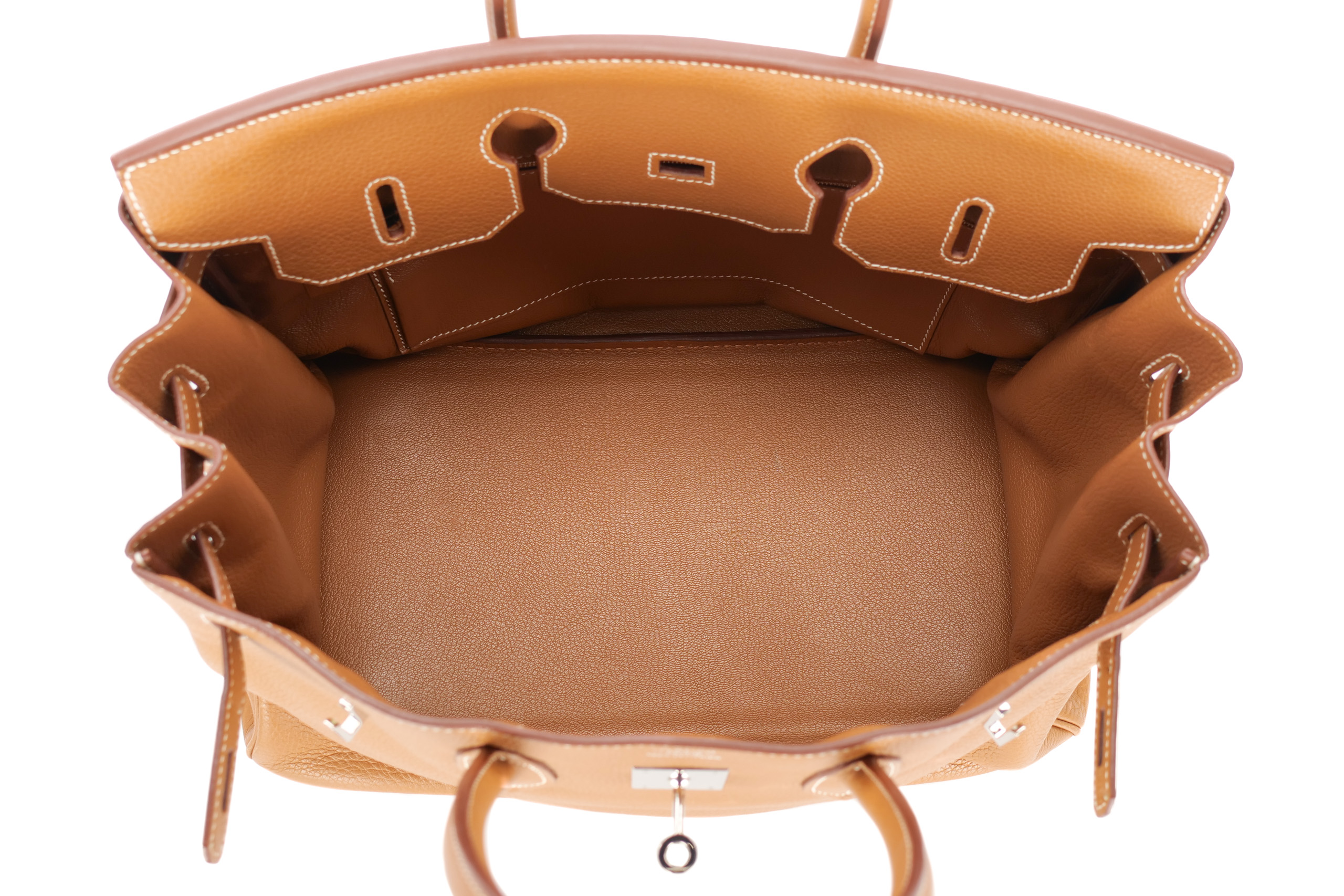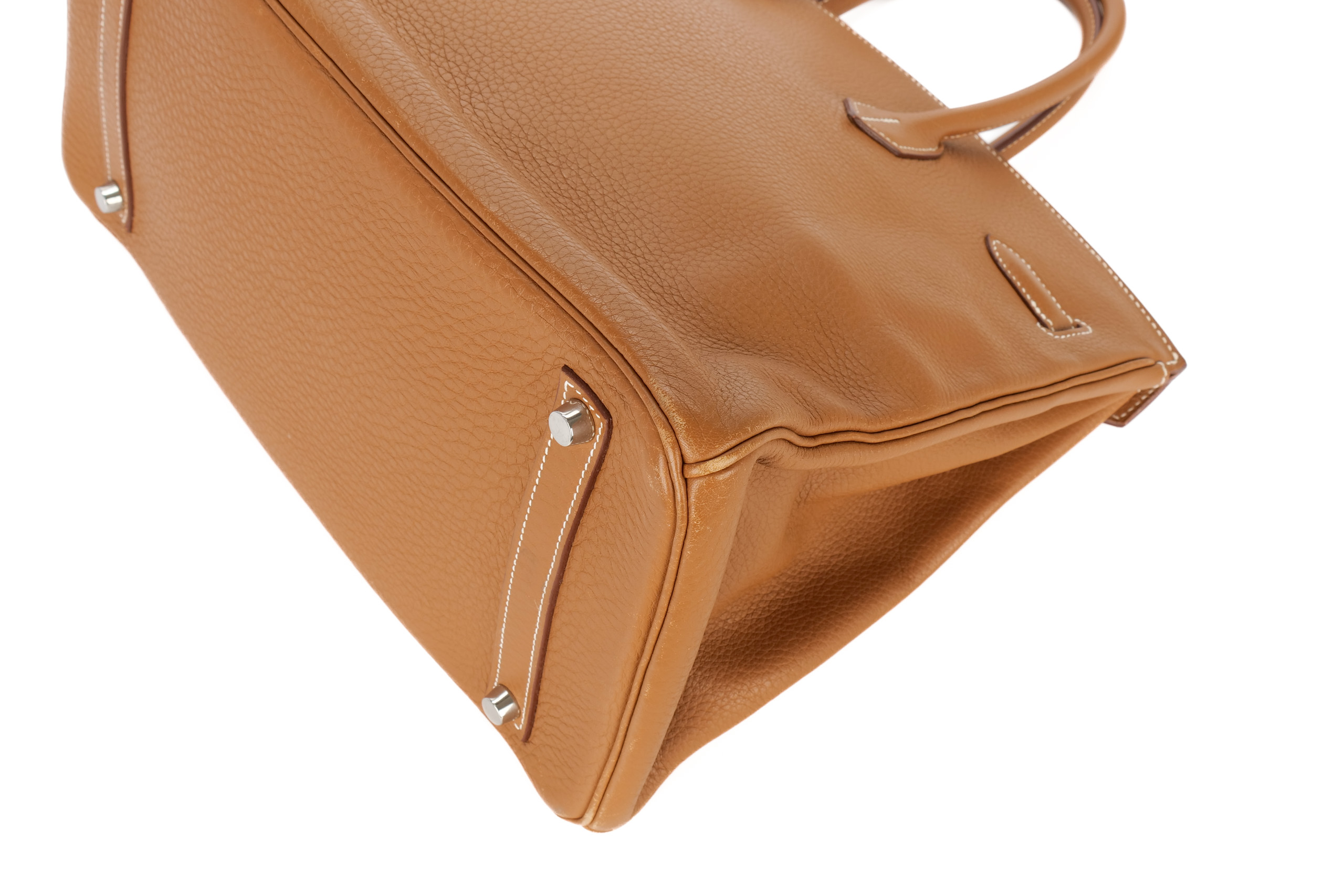 Birkin 35’s are coming back with a vengence, more nd more people are travelling and using tthe B35 as their trusted travel companion. This size bag also works exceptionally well as an everyday bag for work or general wear. The Birkin 35 is large enought to carry all of your daily work essentials including your laptop. This particular model is a b35 gold togo with palladium hardware. It is in box fresh condition and comes as a full set including the receipt.