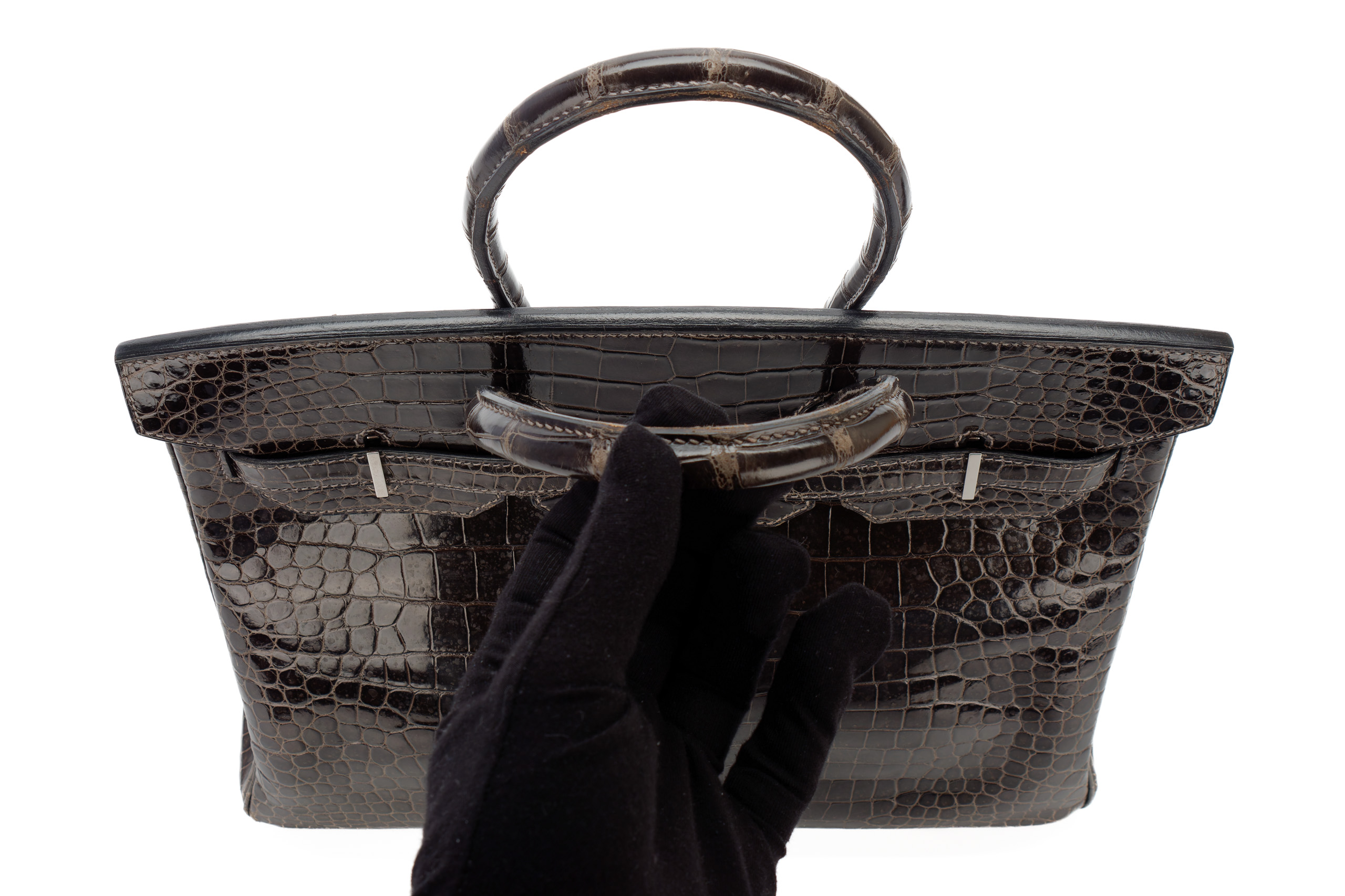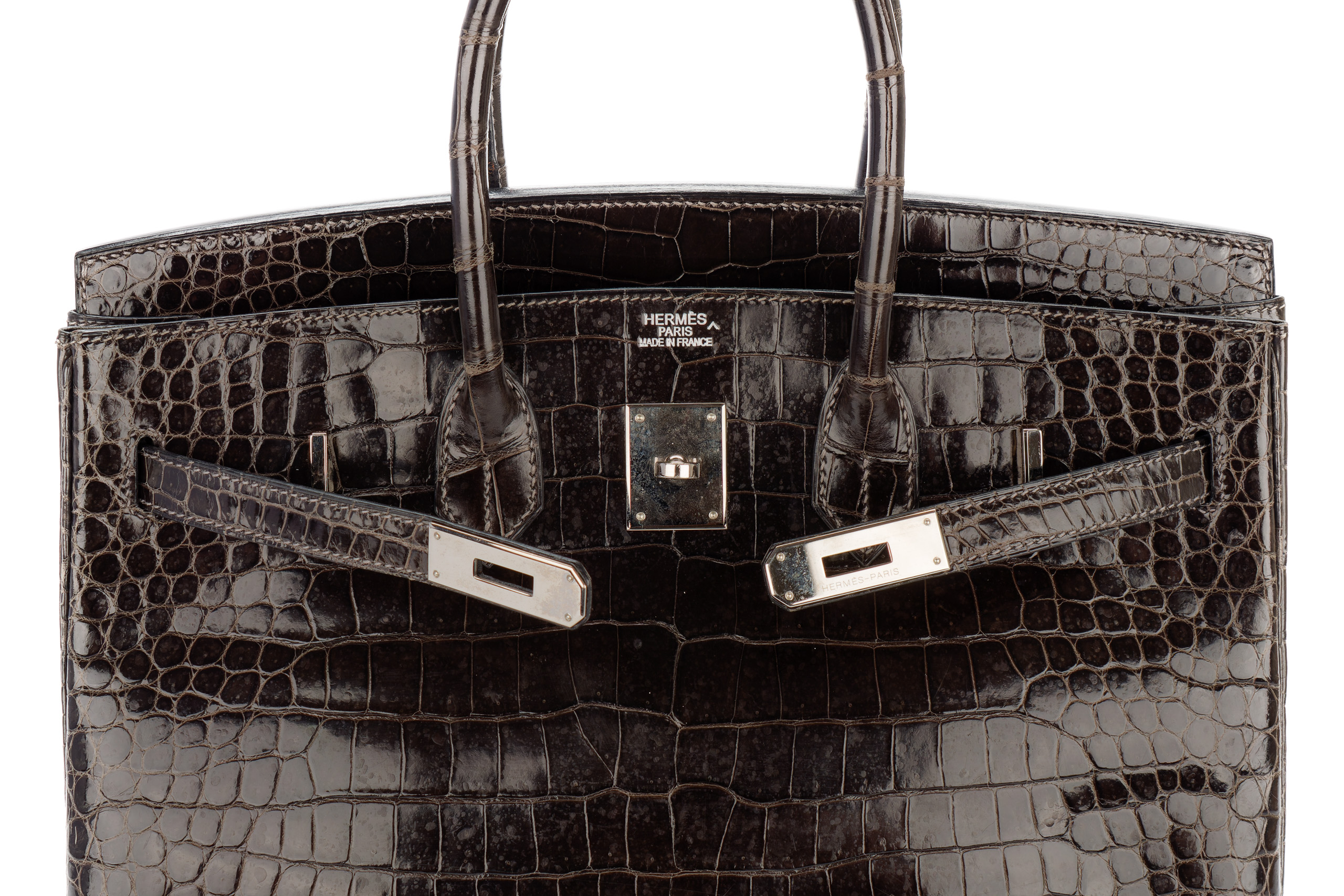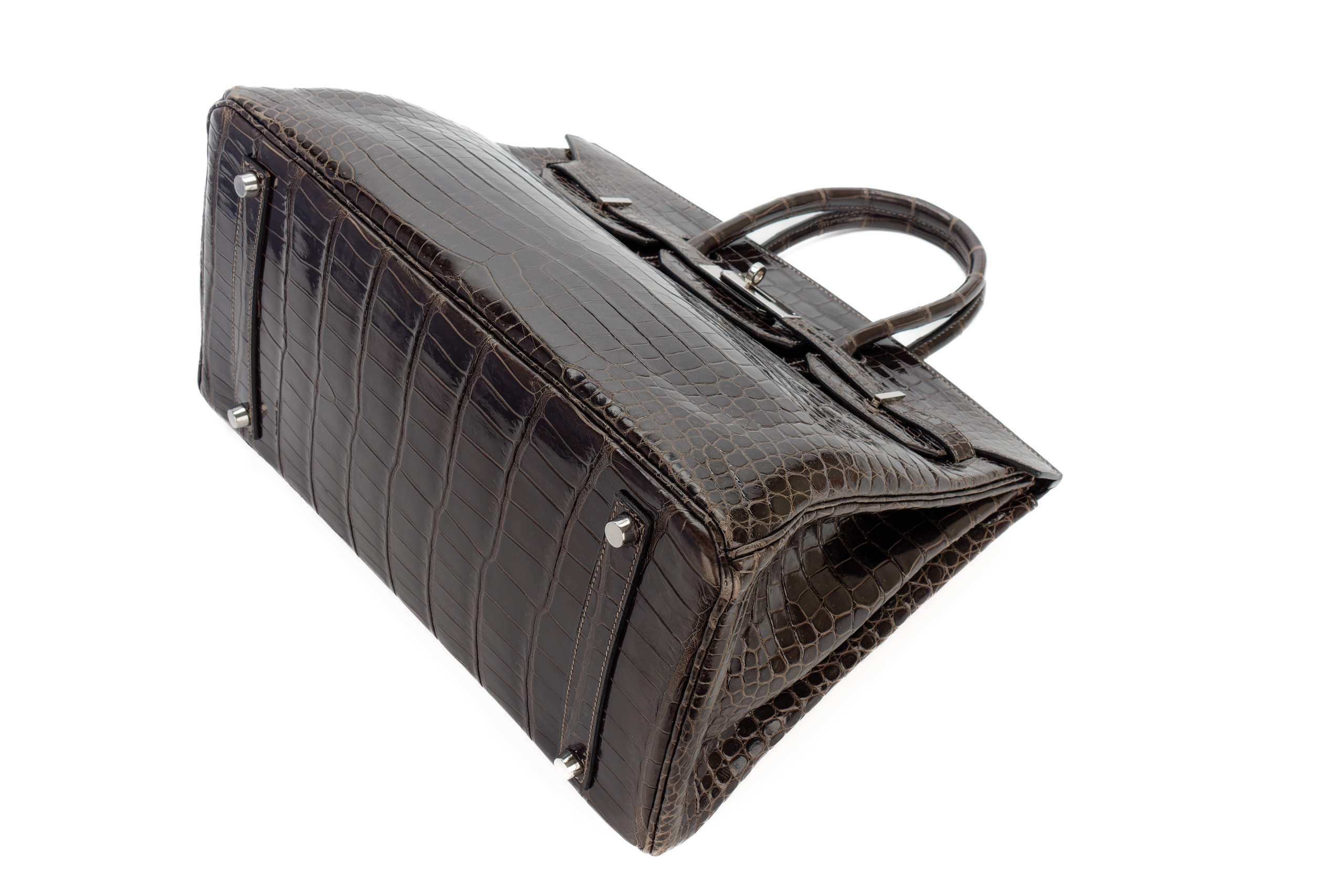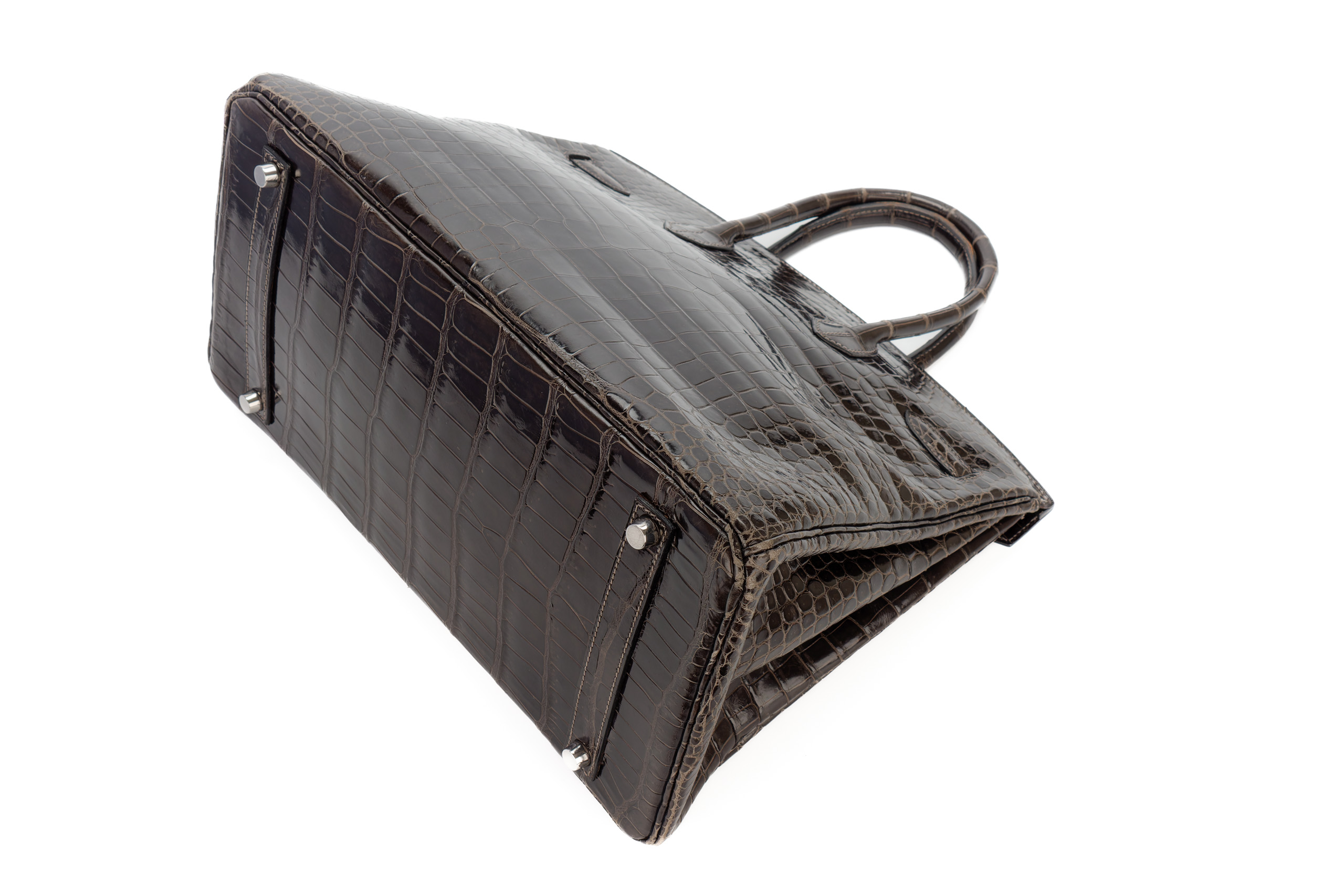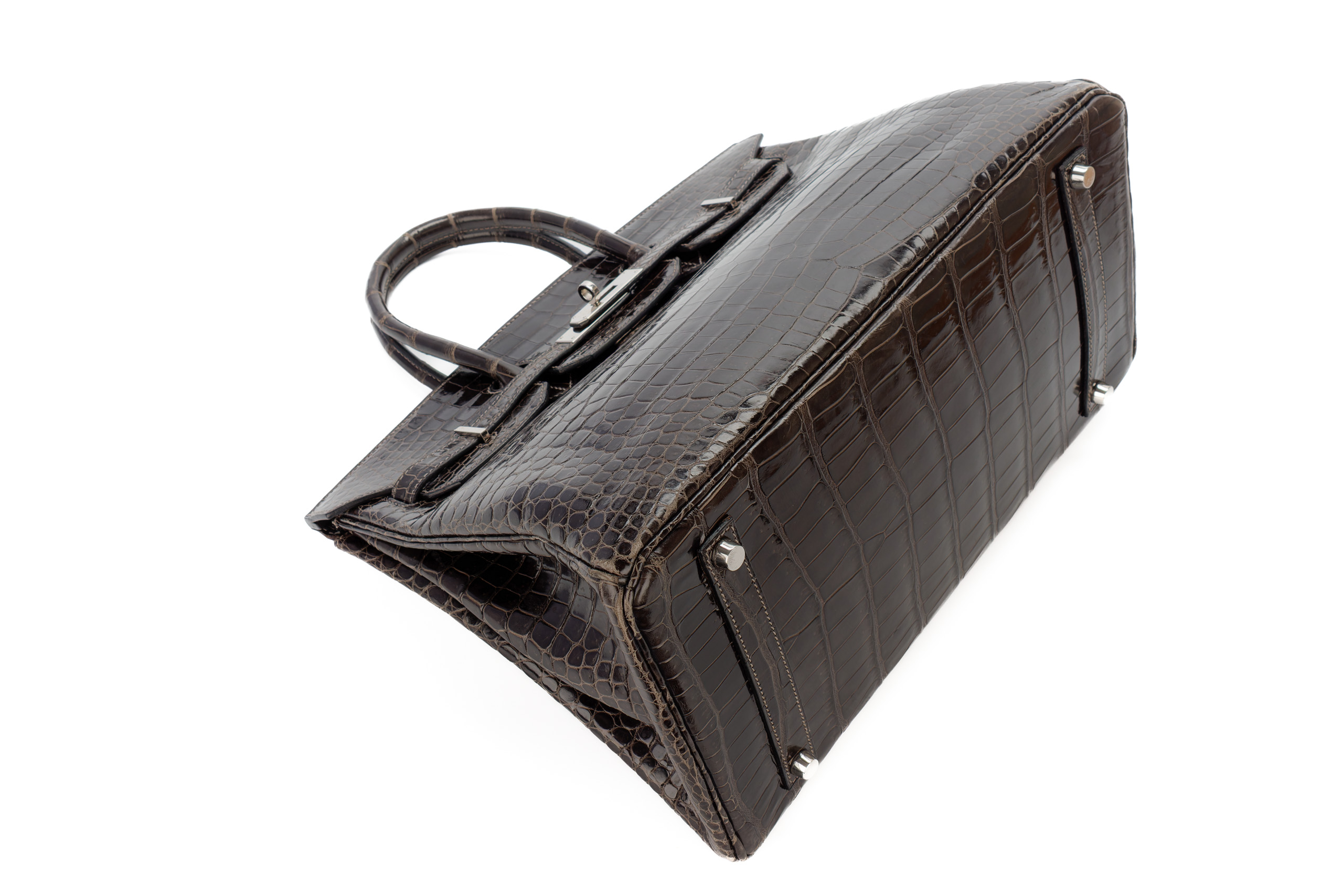 Hermès Birkin 35 Graphite Shiny Crocodile Palladium Hardware / J Square Stamp 2006, Preloved