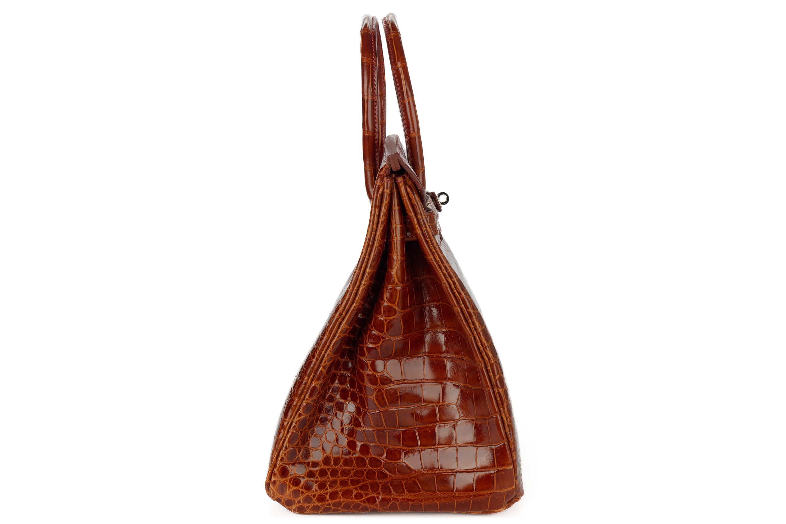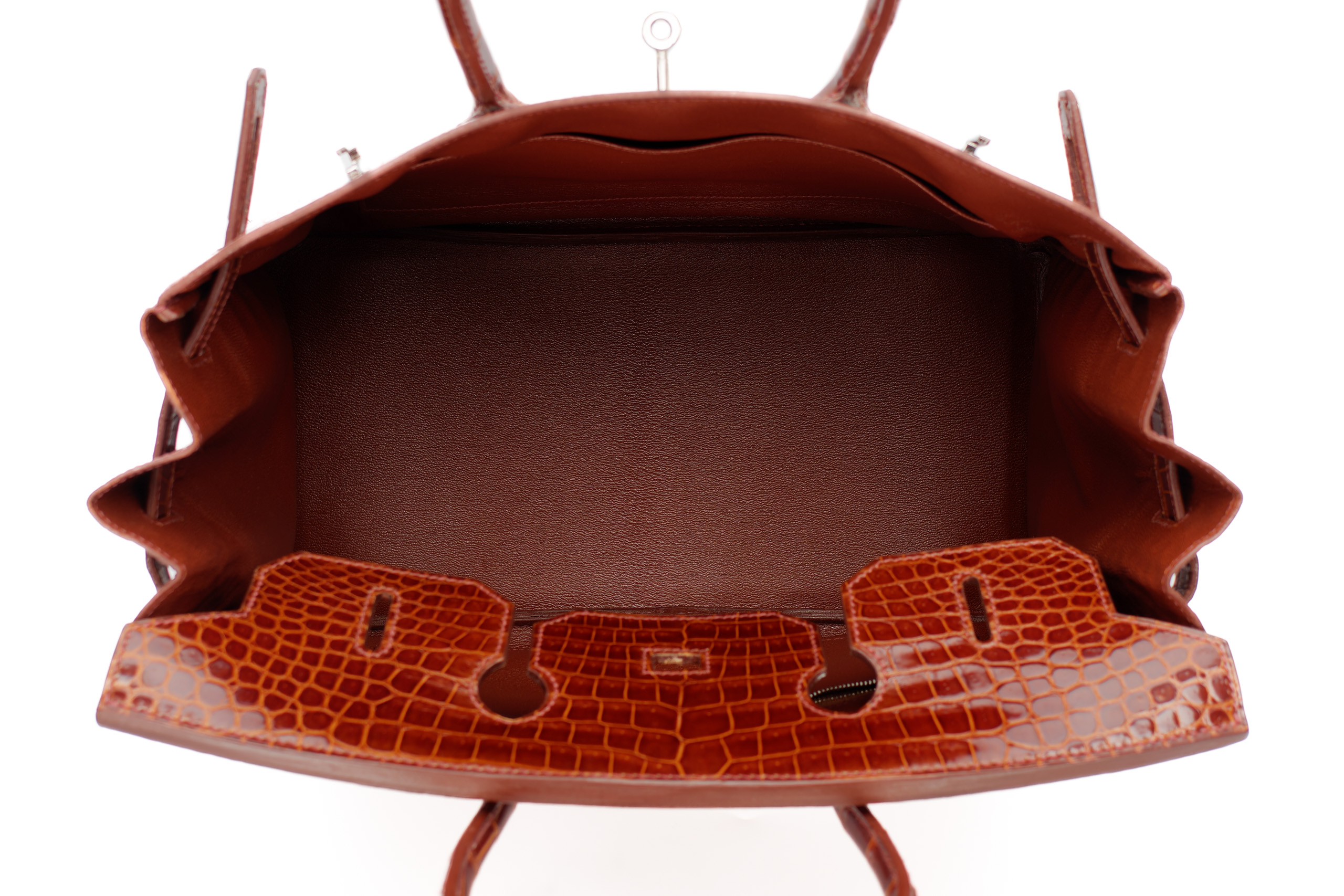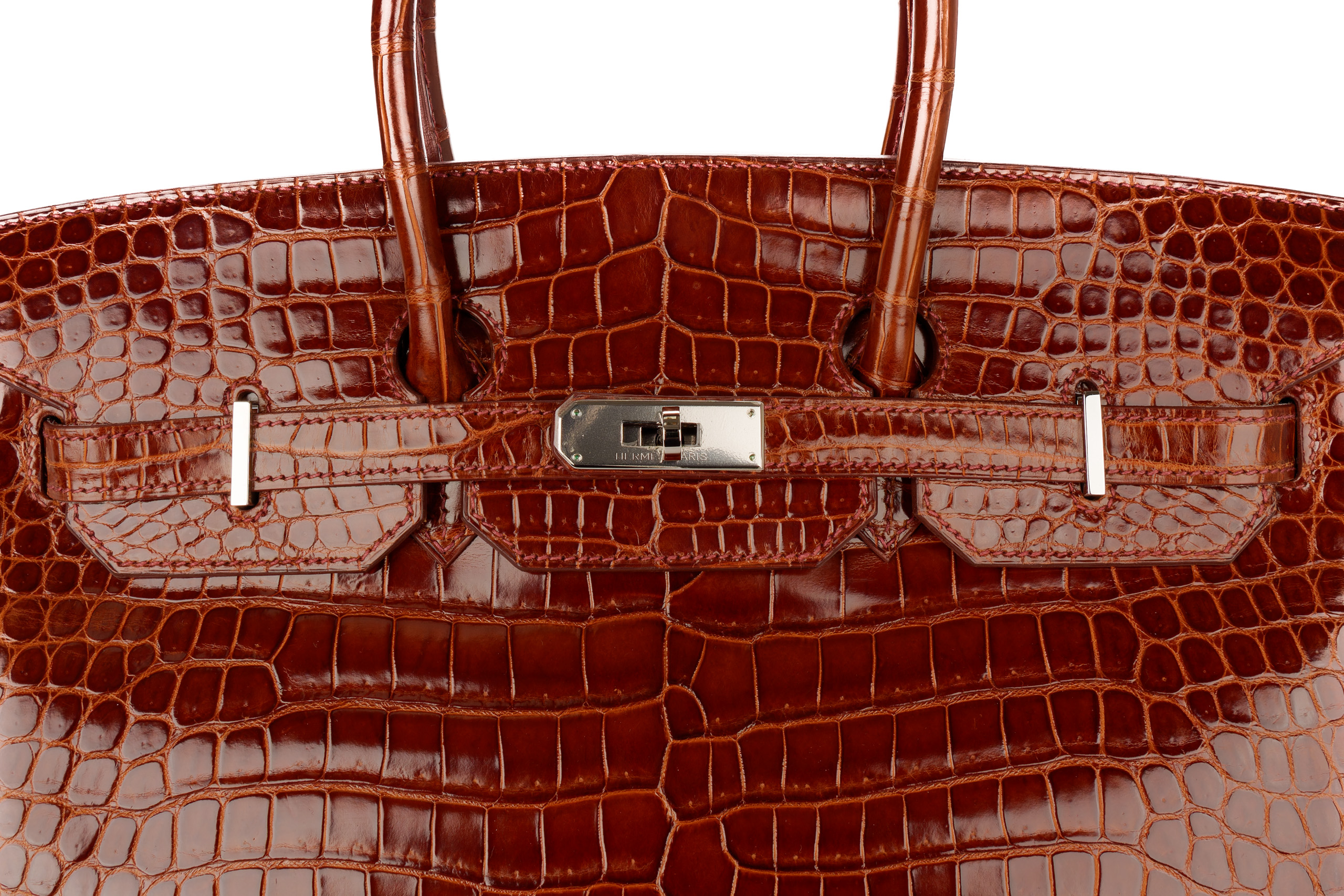 Hermès Birkin 35 Miel Shiny Crocodile Porosus Palladium Hardware / M Square 2009, Pre Loved