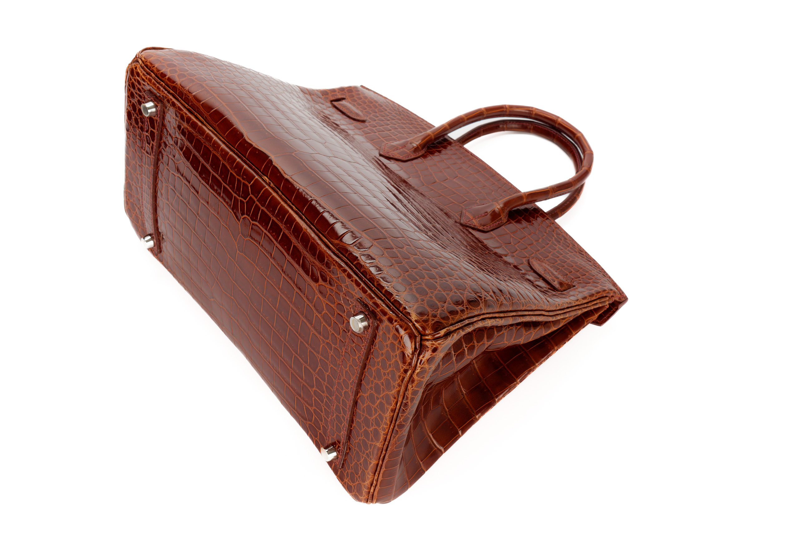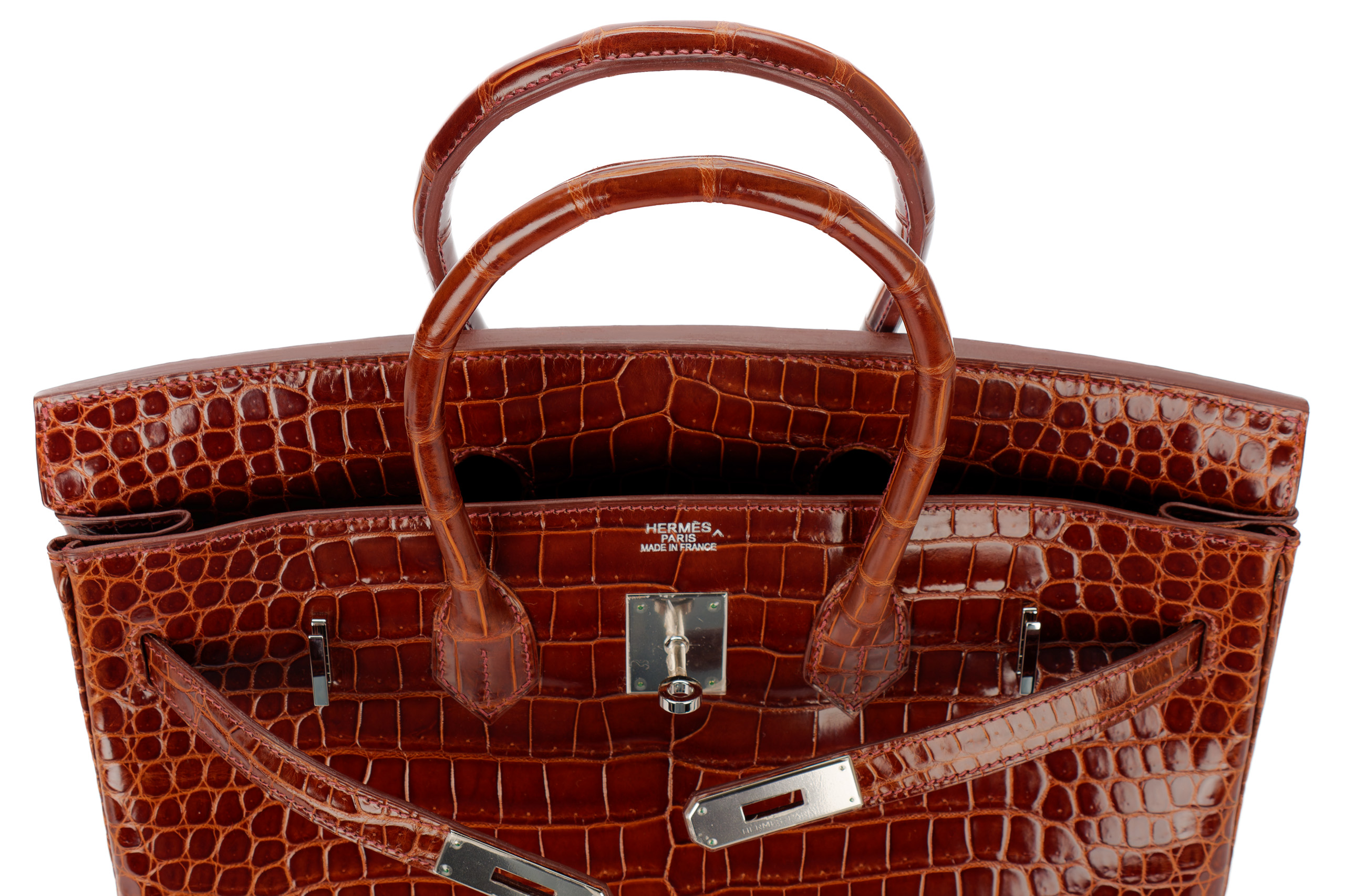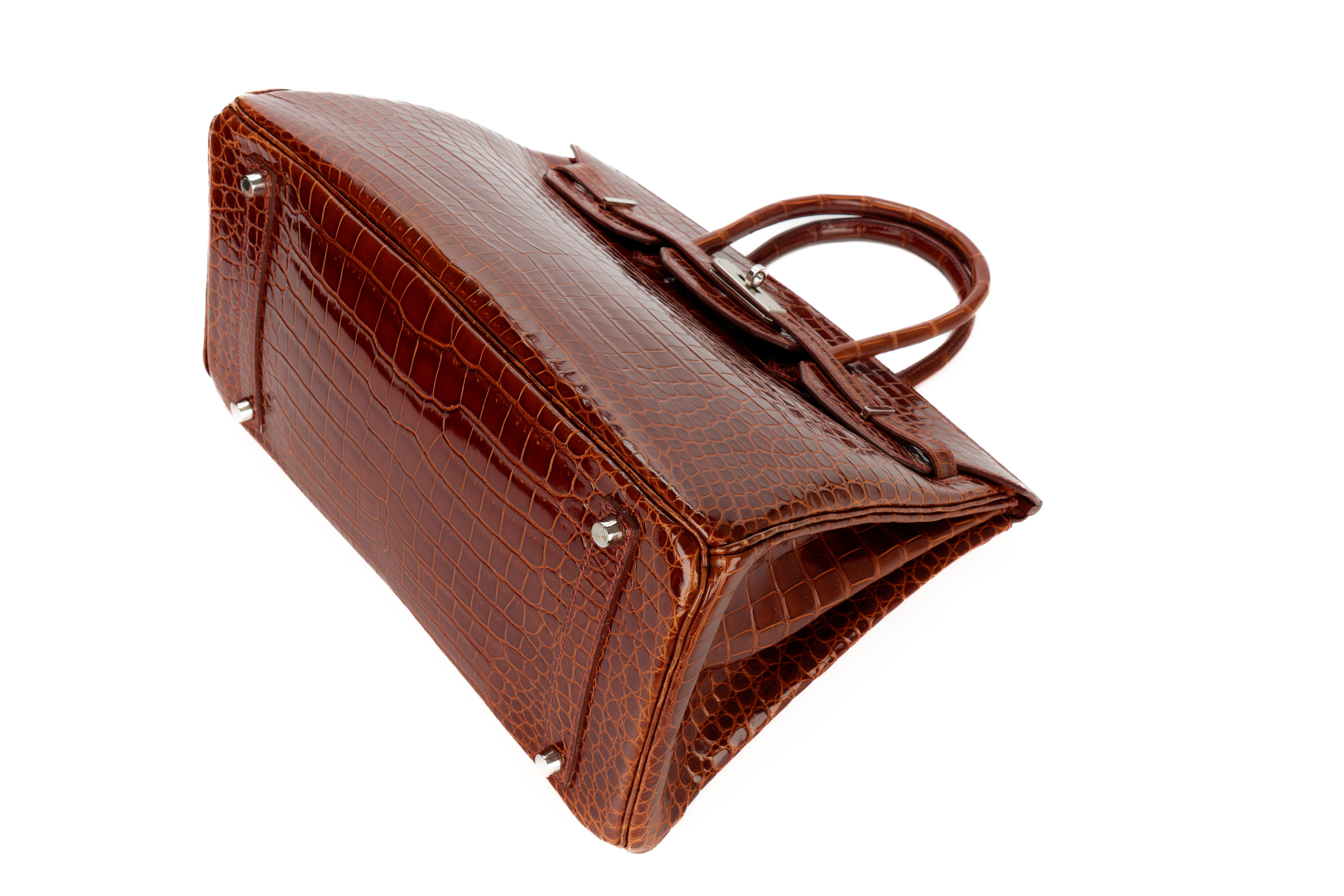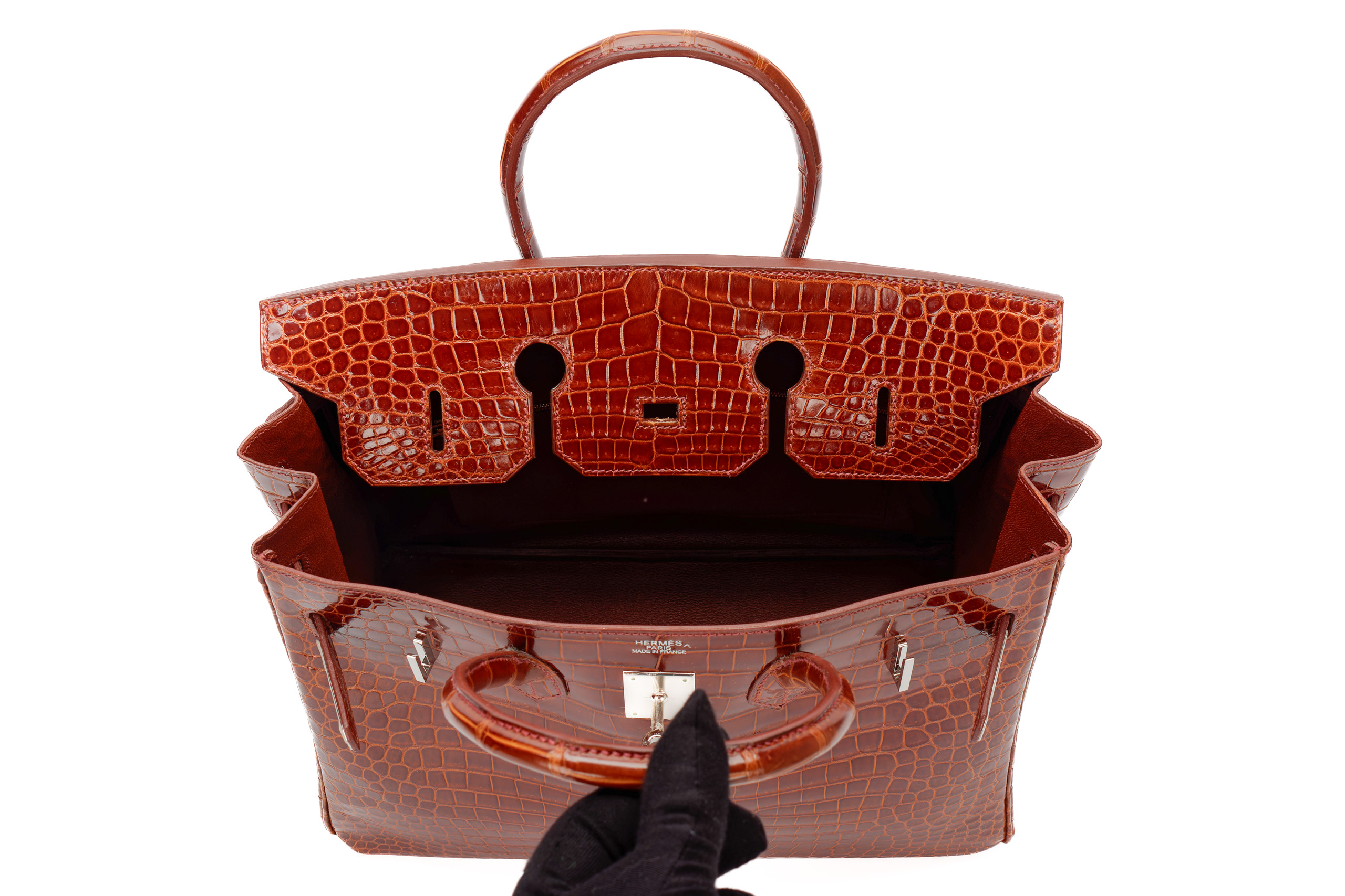 Hermès Birkin 35 Miel Shiny Crocodile Porosus Palladium Hardware / M Square 2009, Pre Loved