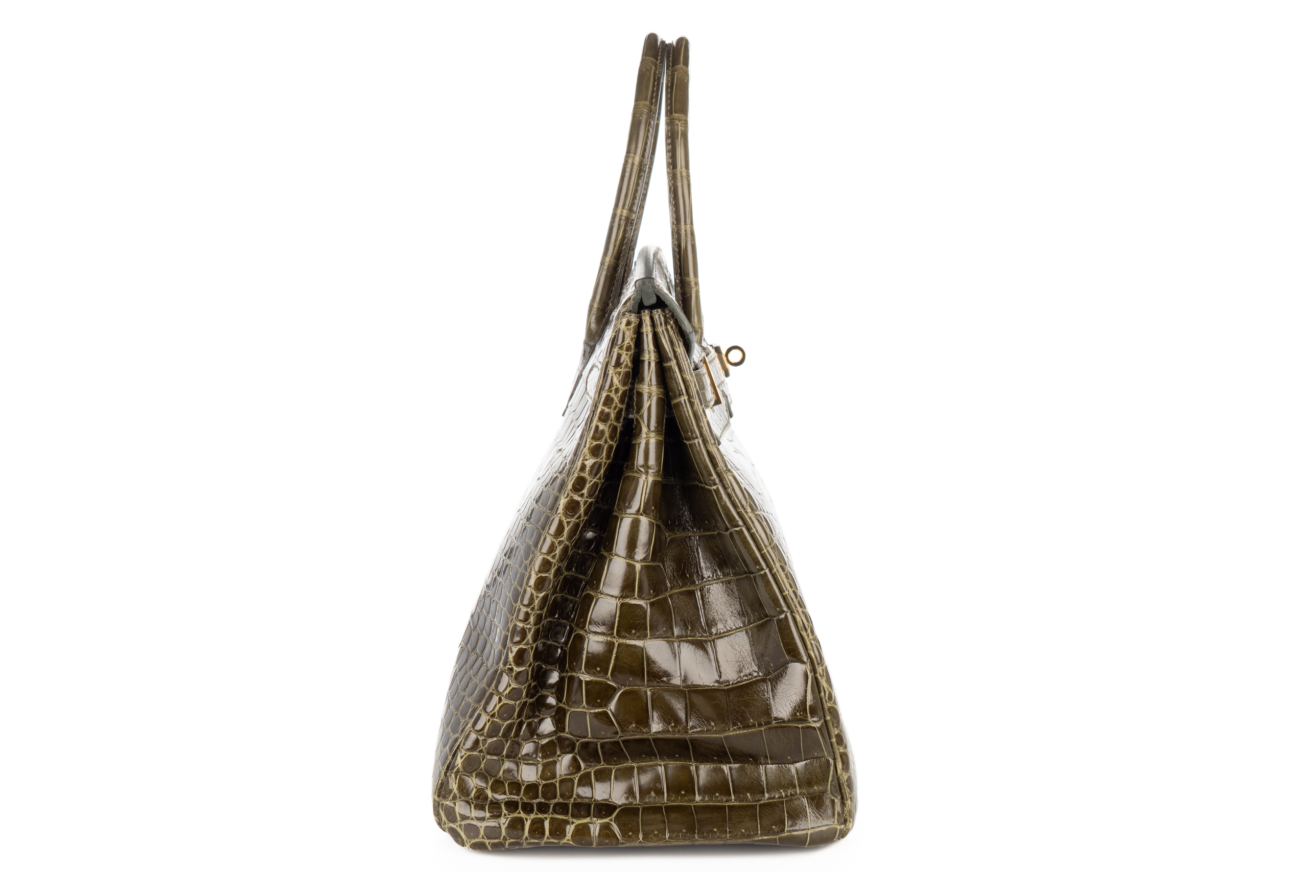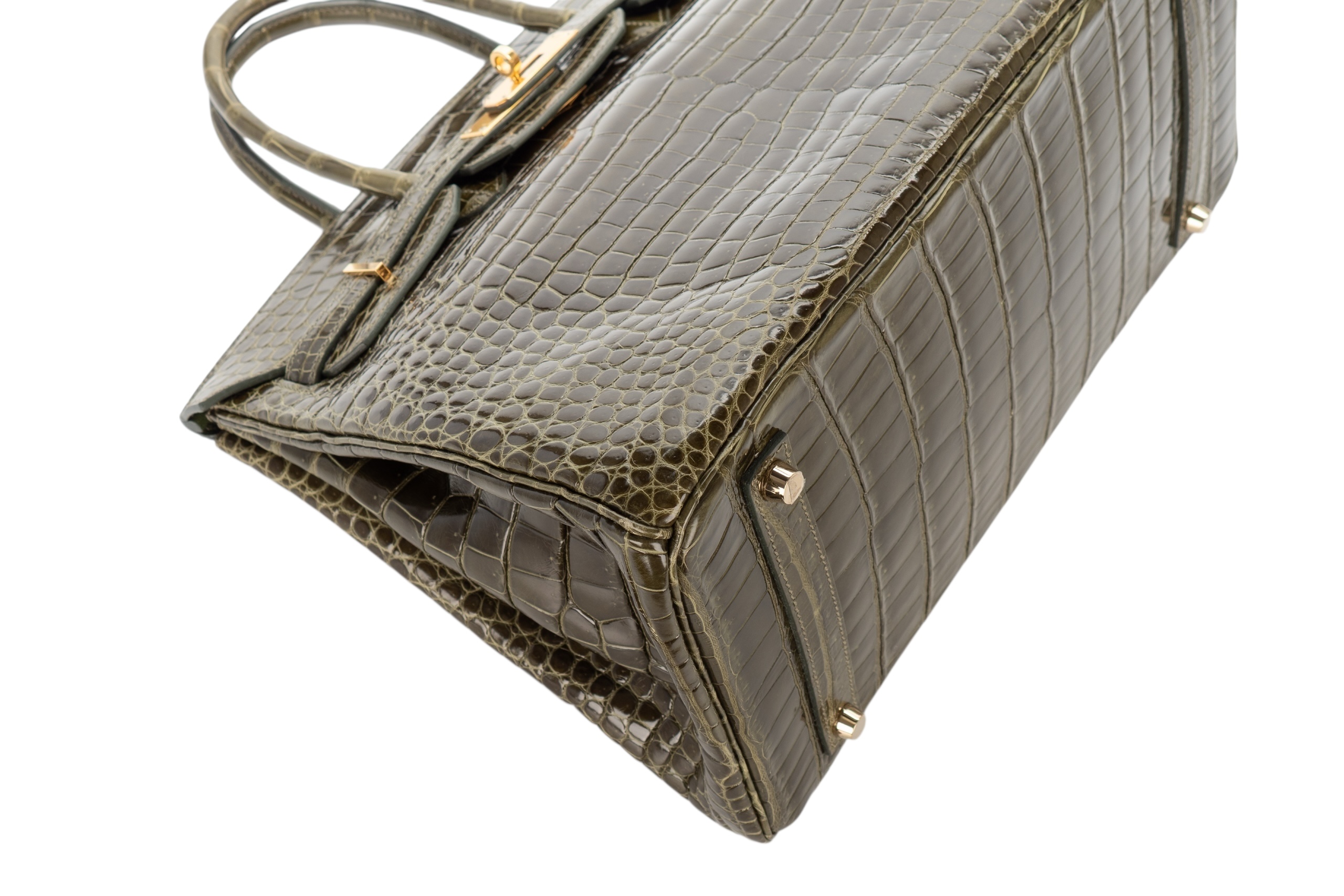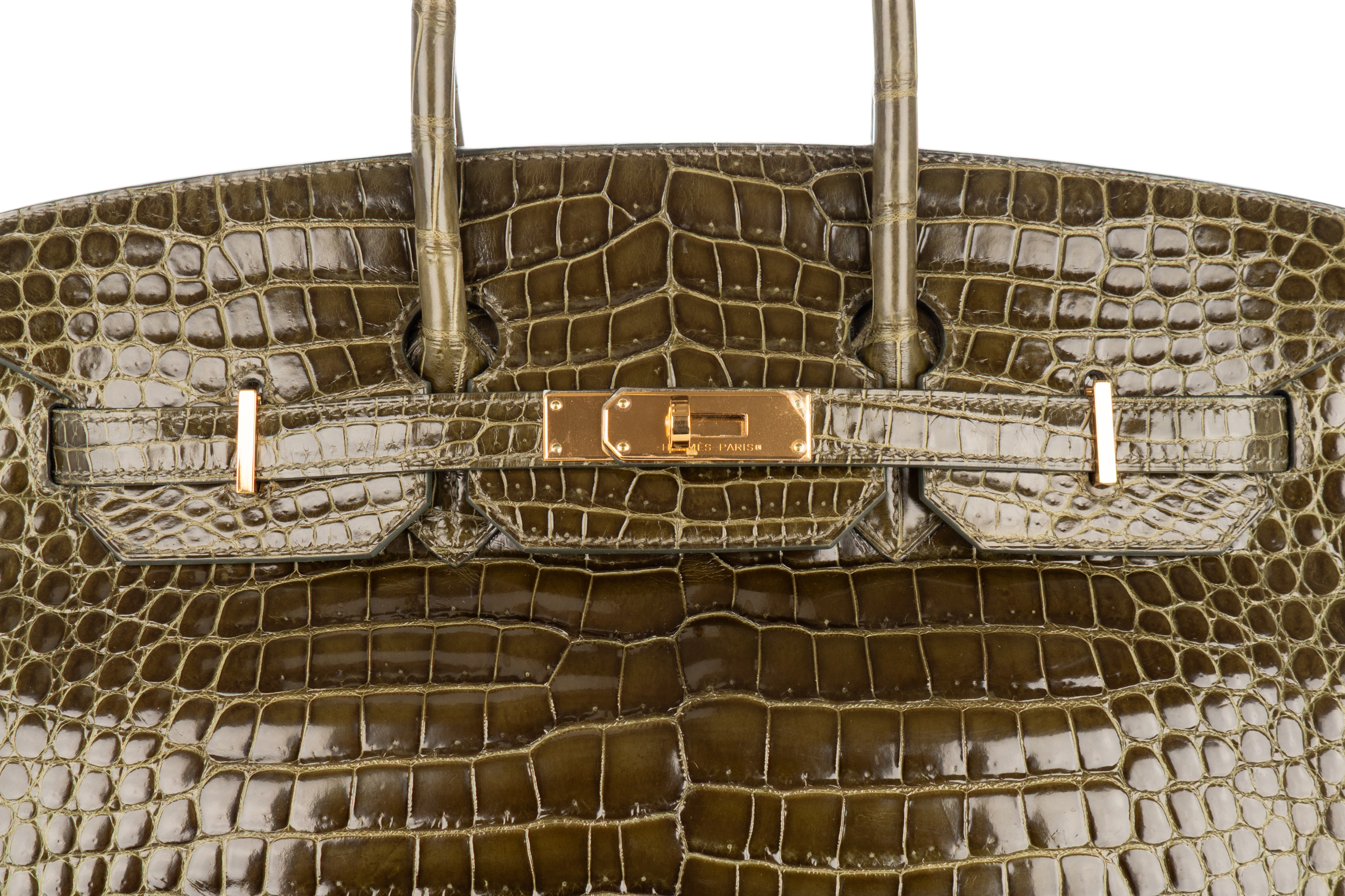 Hermès Birkin 35 Olive Green Shiny Crocodile Porosus Gold Hardware