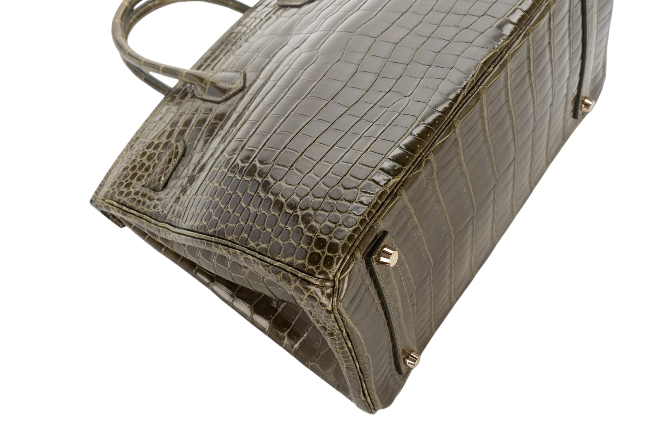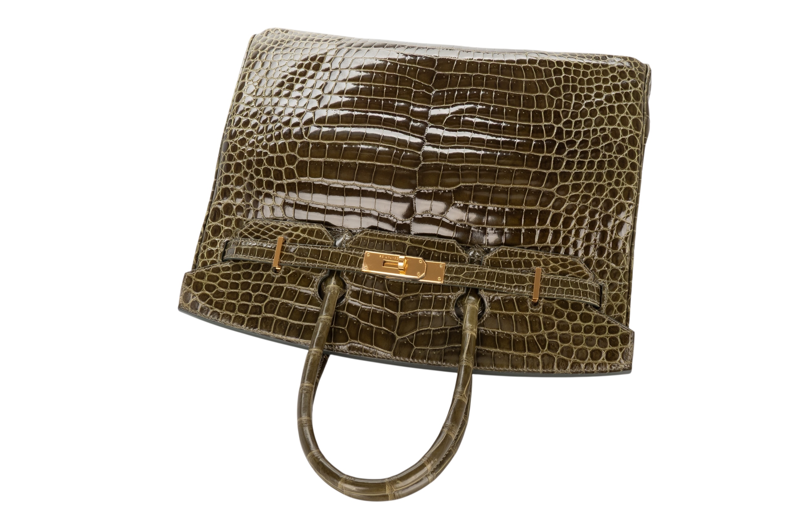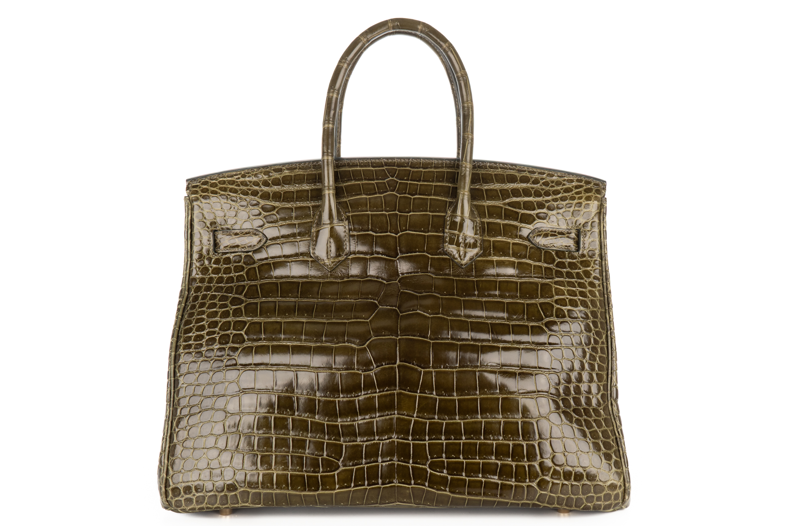 Hermès Birkin 35 Olive Green Shiny Crocodile Porosus Gold Hardware