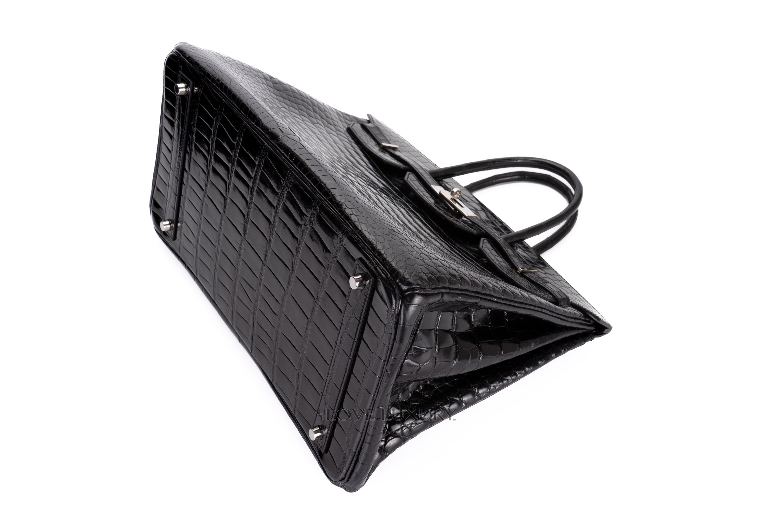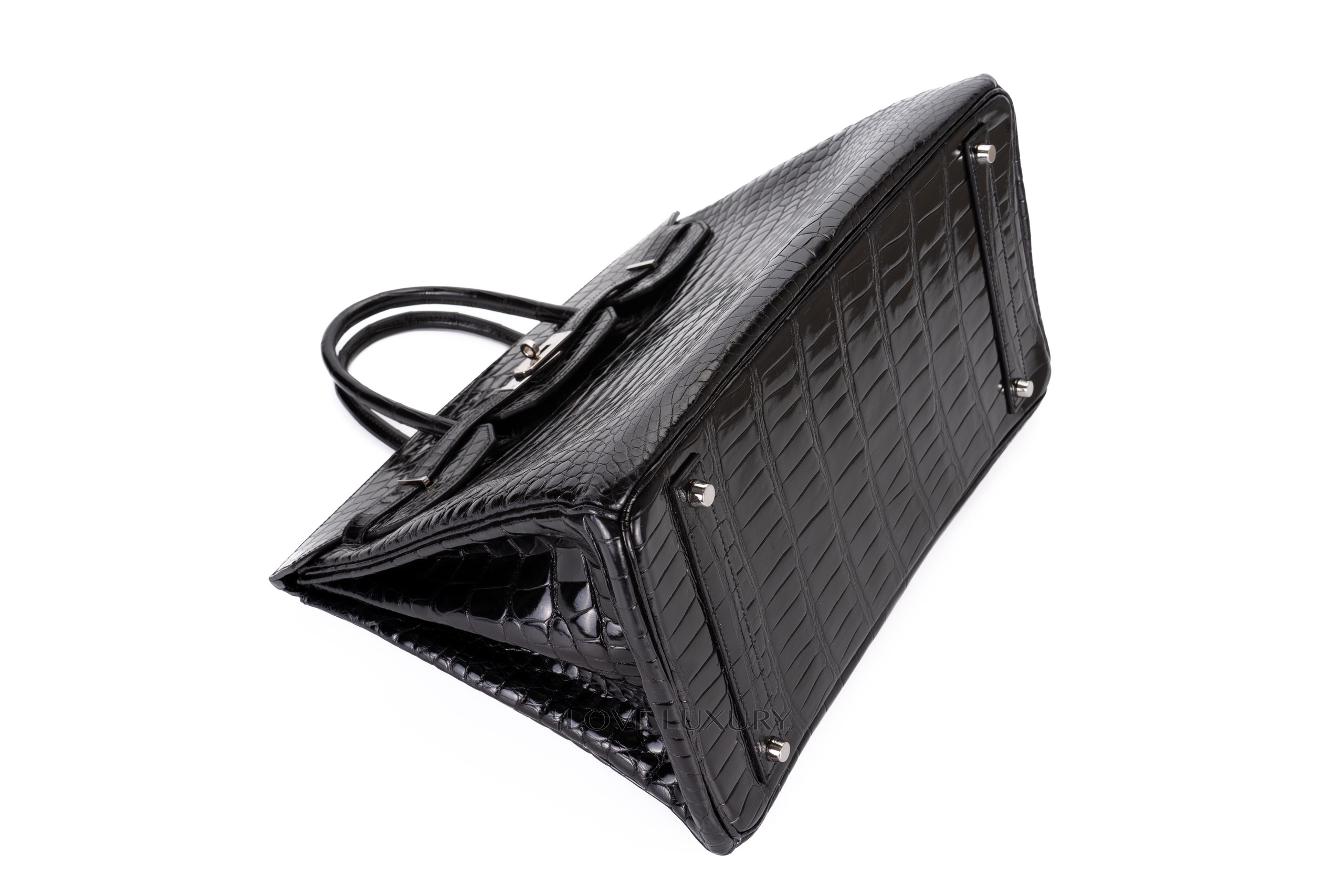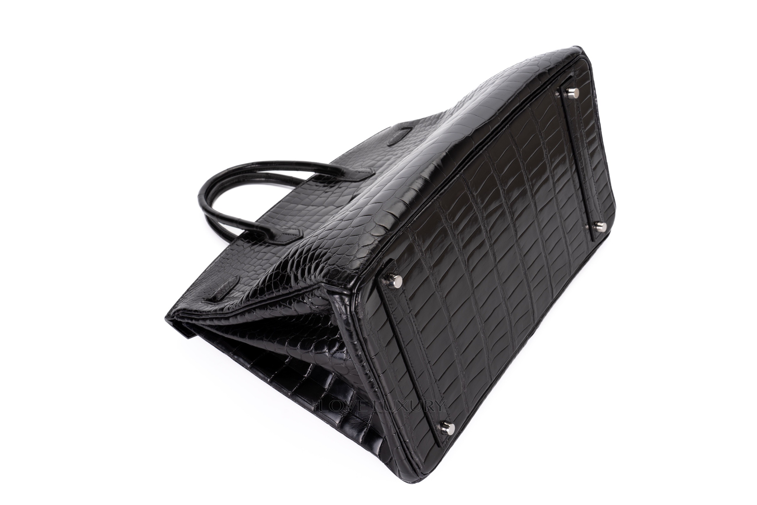 Hermès Birkin 40 Black Shiny Porosus Crocodile Palladium Hardware / Q square 2013 Pre-Loved condition