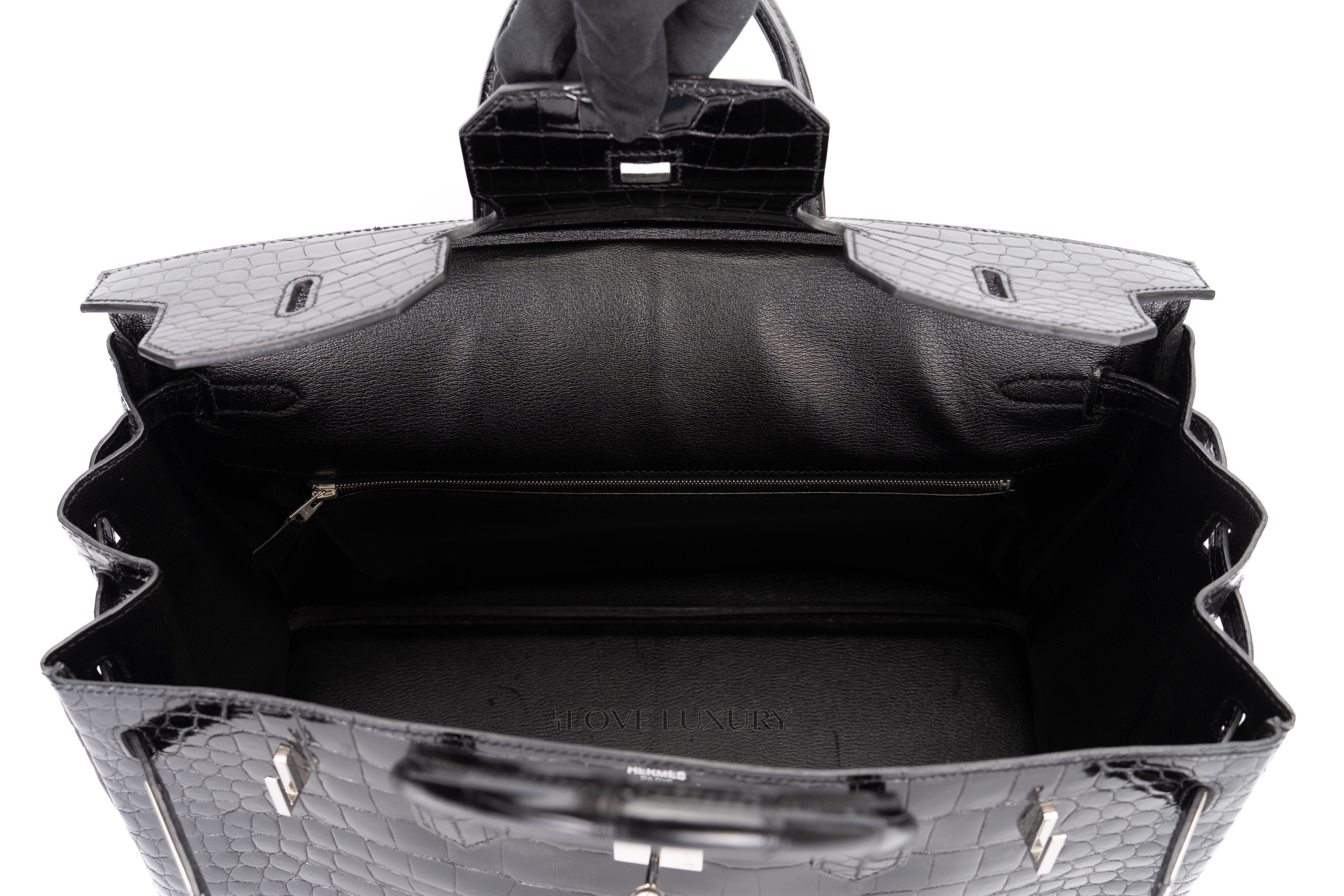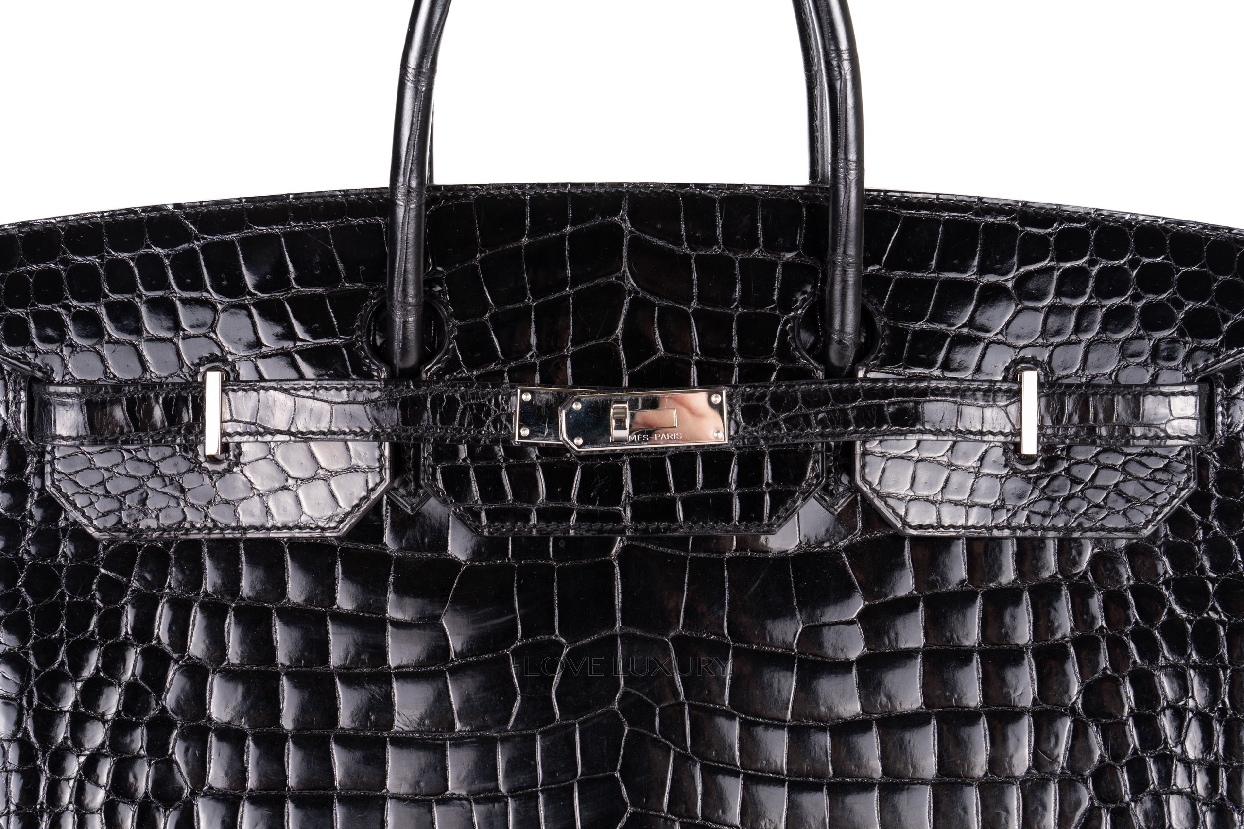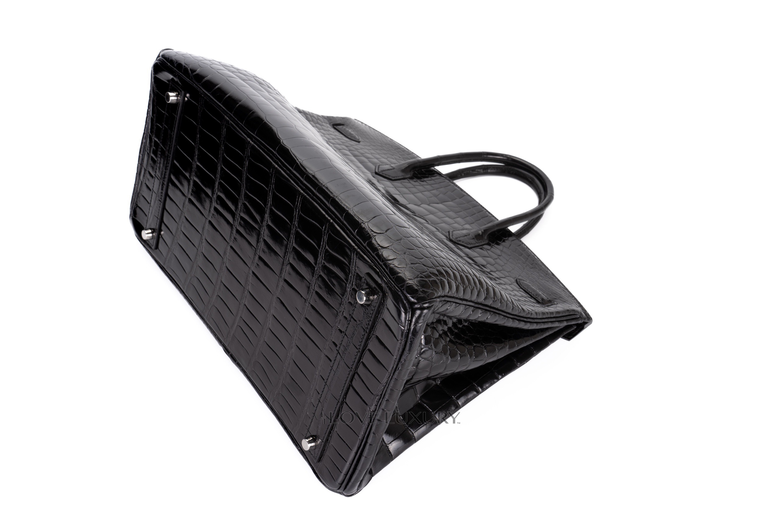 Hermès Birkin 40 Black Shiny Porosus Crocodile Palladium Hardware
