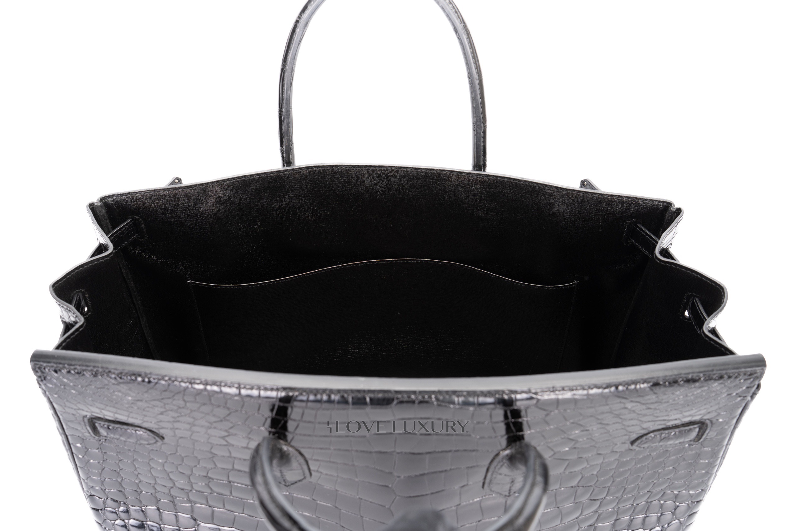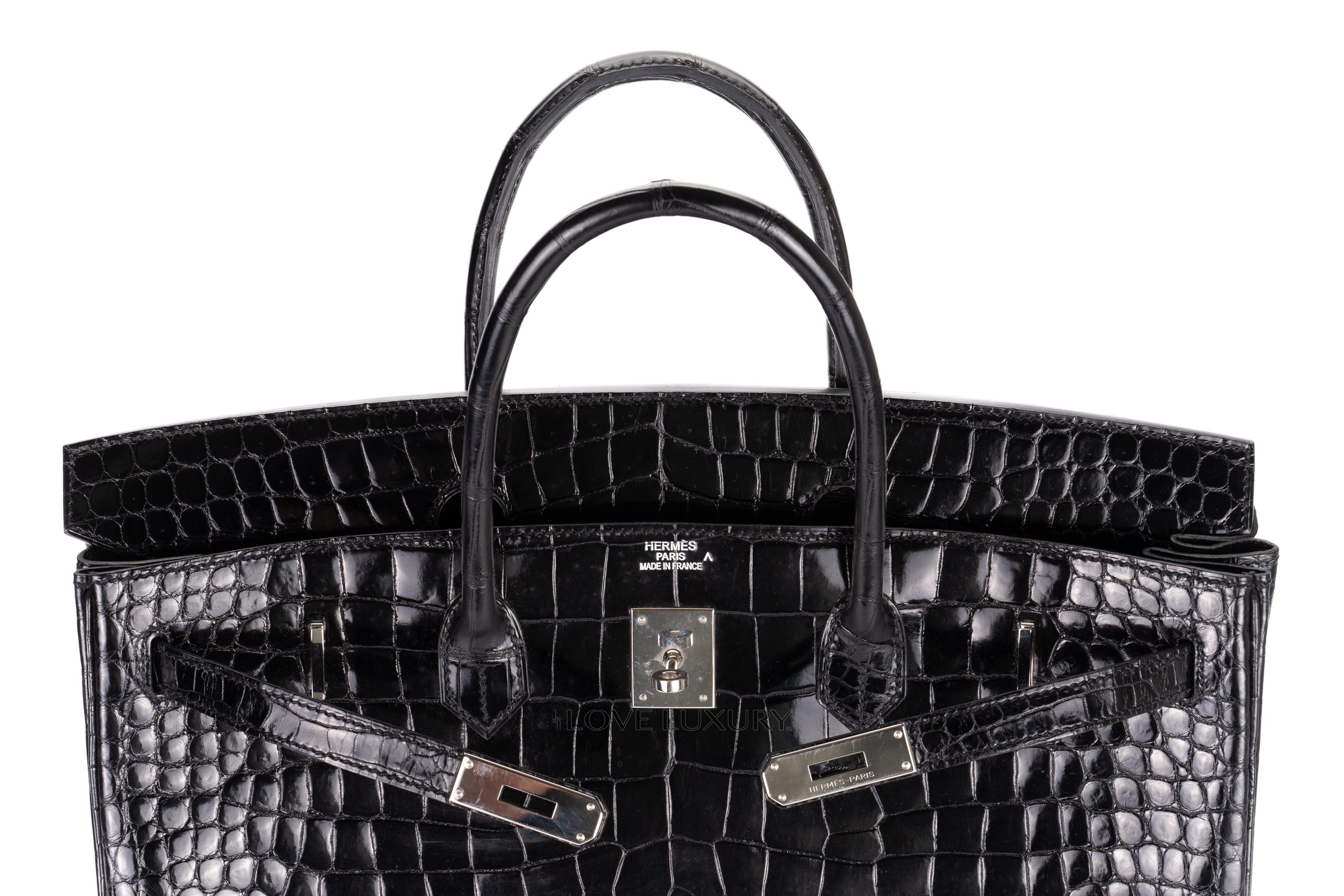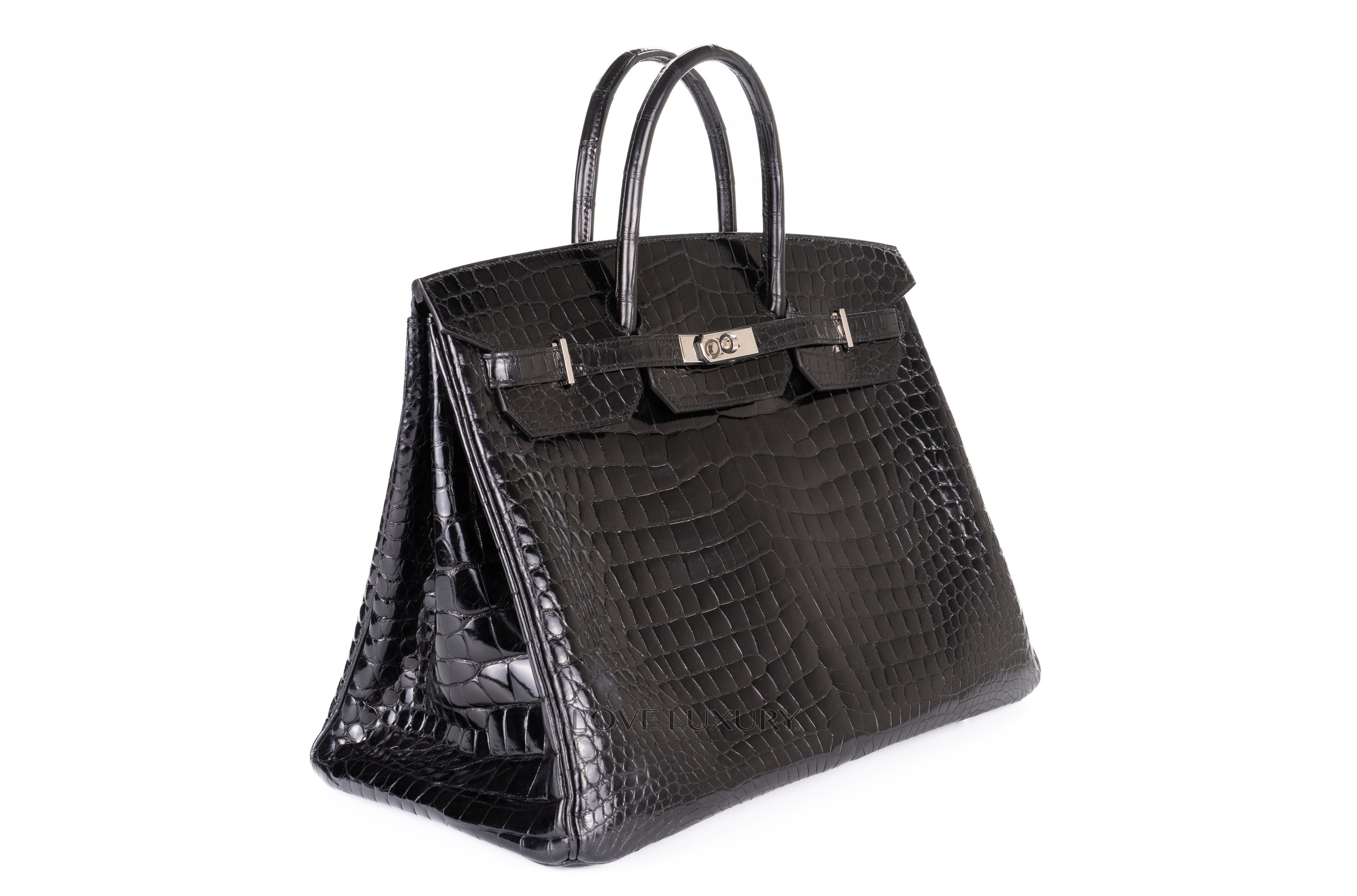 Hermès Birkin 40 Black Shiny Porosus Crocodile Palladium Hardware