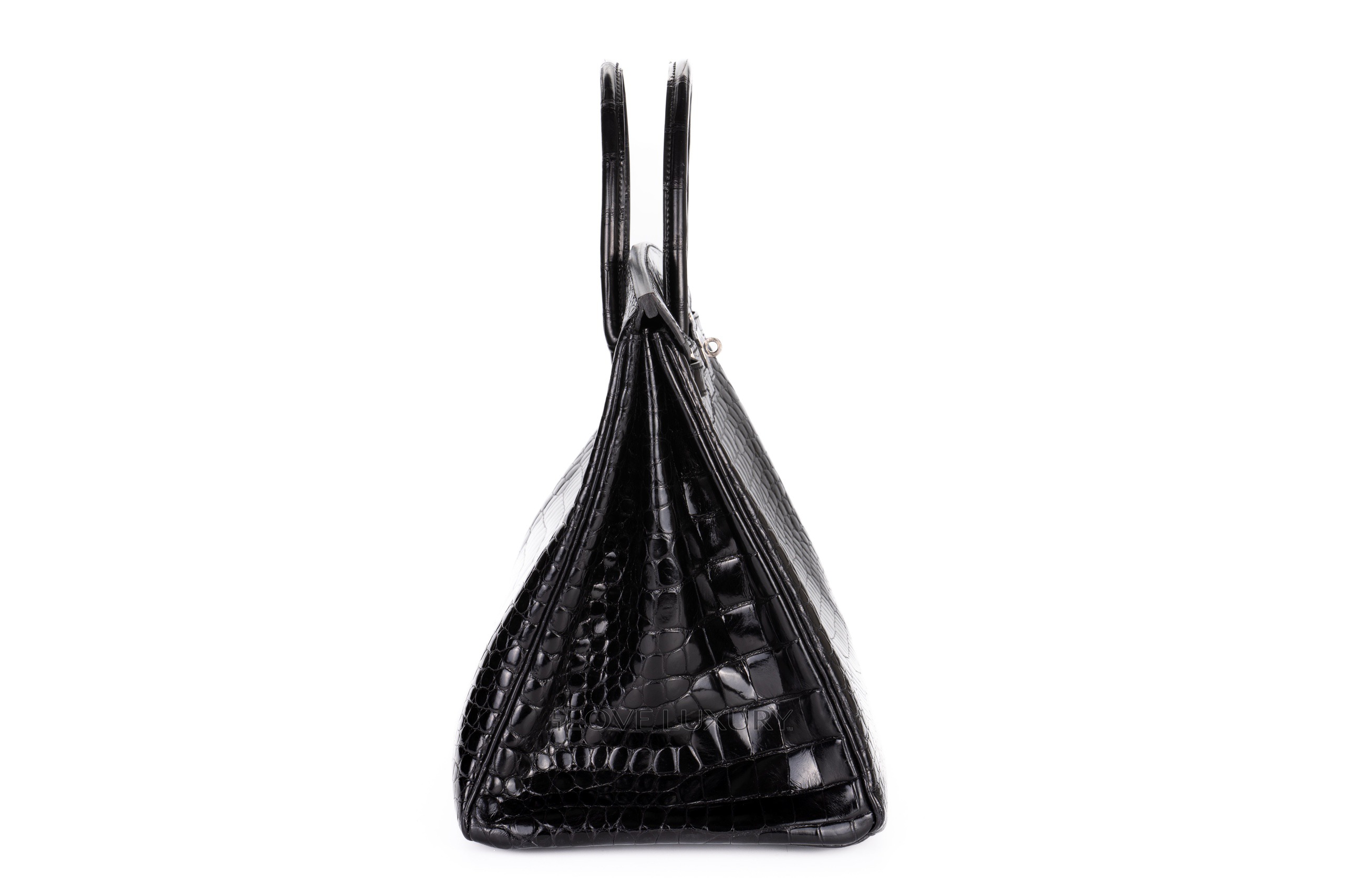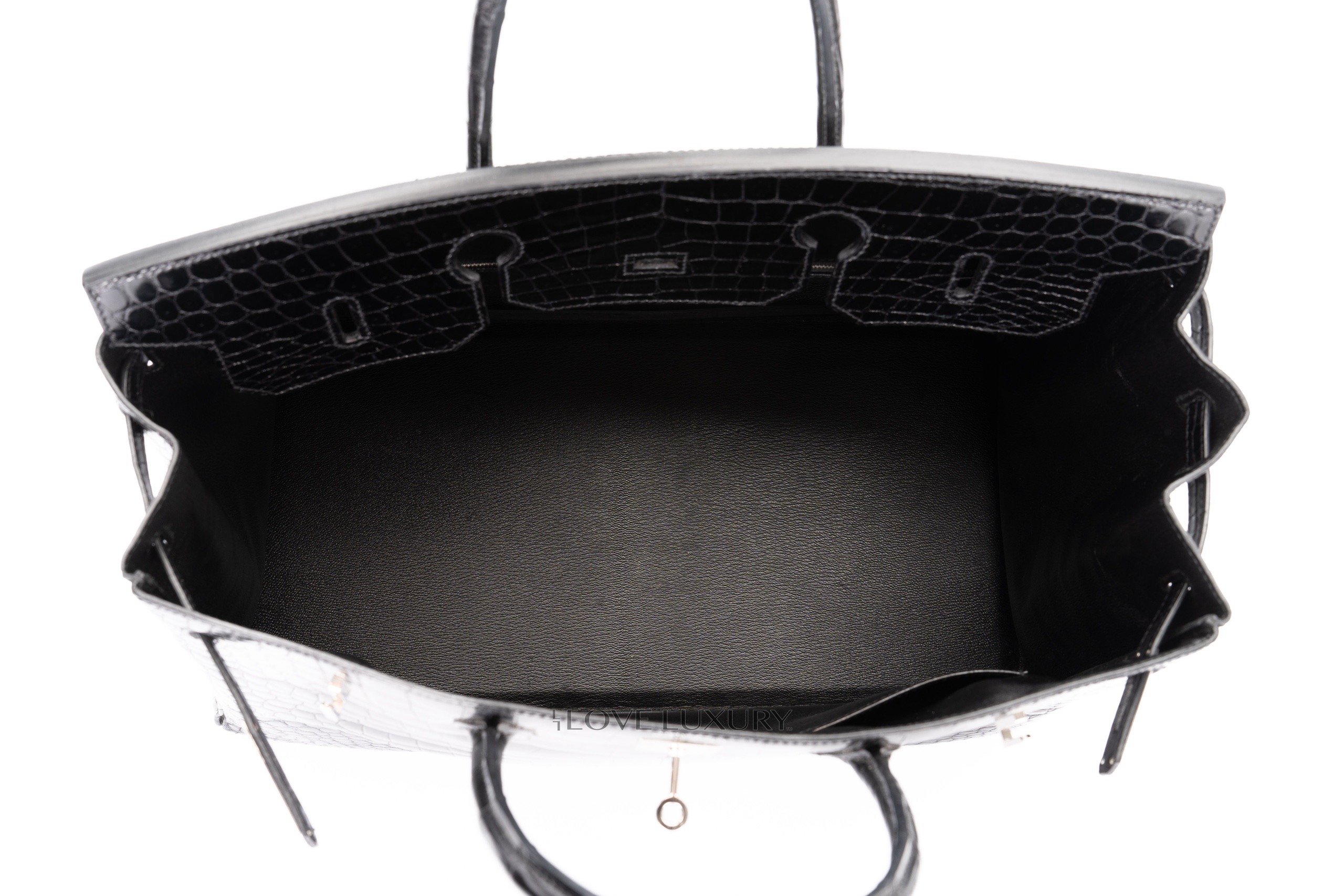 Everyone loves a Birkin 40 as its a perfect traveling bag, Birkin 40 actually makes you look smaller. This specific piece is in the most sought after combo in the Hermès market which is shiny Black Porosus crocodile complemented with Palladium Hardware. The Crocodile Niloticus in Lissè which means shiny, is the perfect day bag. This bag comes in an excellent preloved condition and even comes with cities.