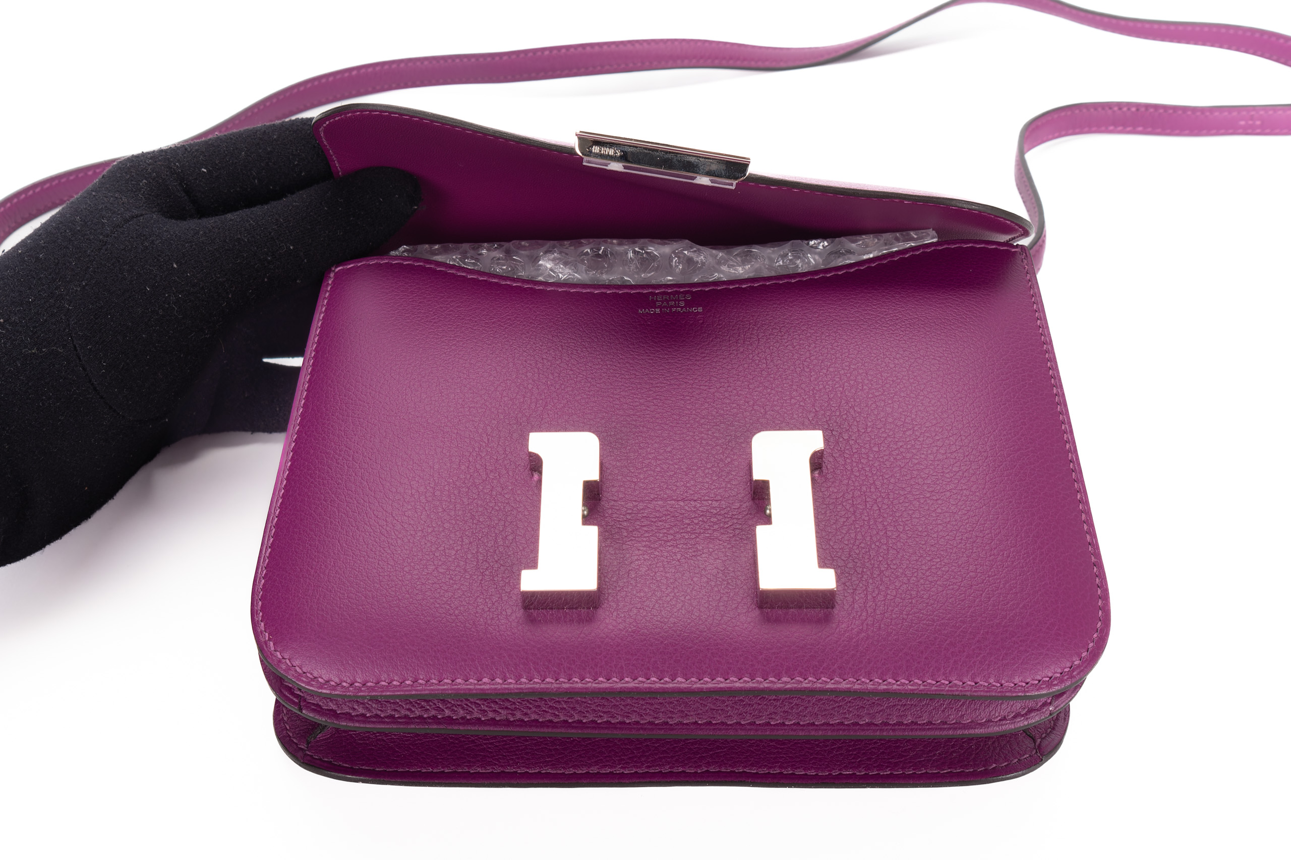 Hermès Constance 18 Anemone Chevre Palladium Hardware / D stamp 2019 Excellent Pre-Loved condition