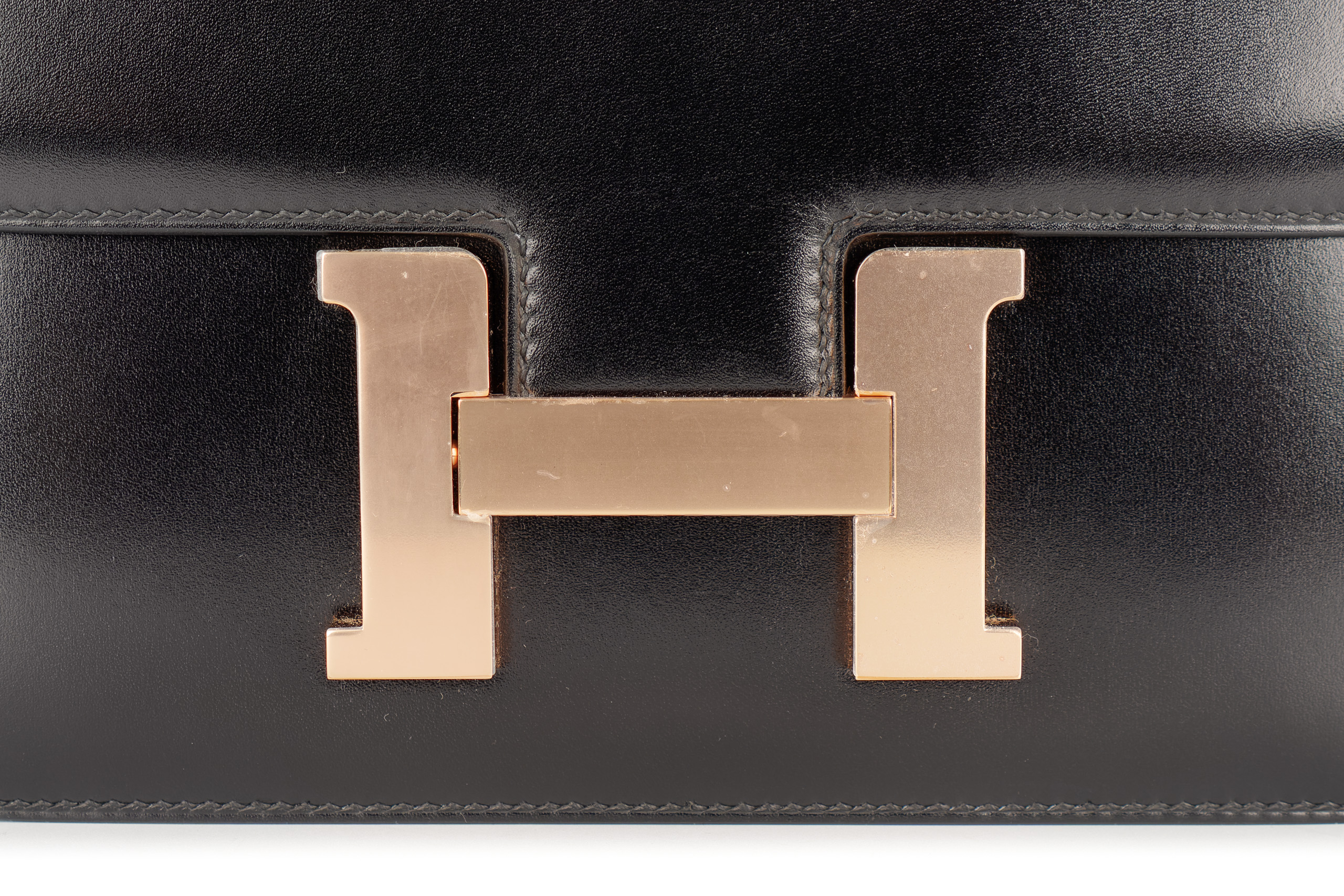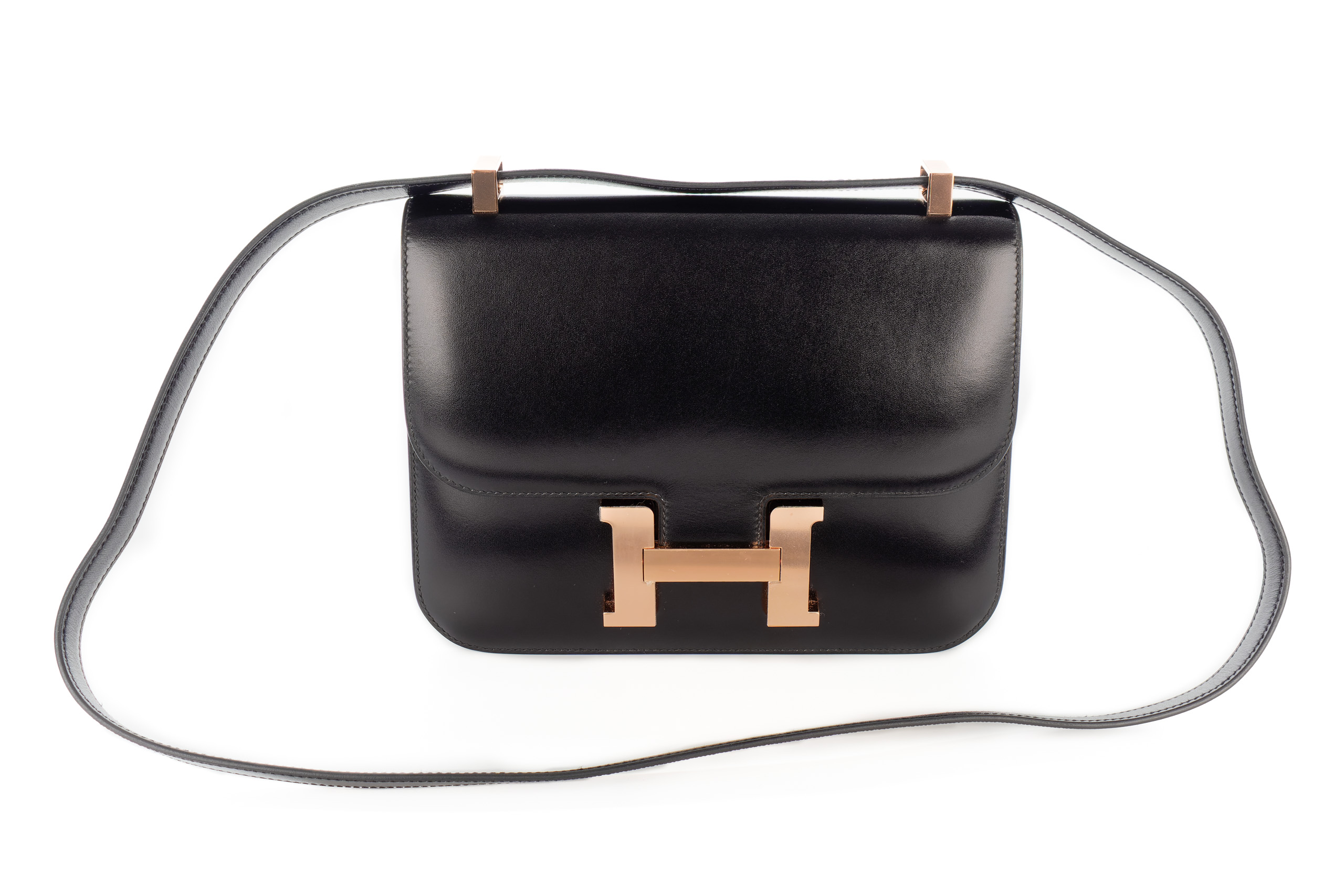 Hermès Constance 24 Noir / Black Box Leather Rose Gold Hardware