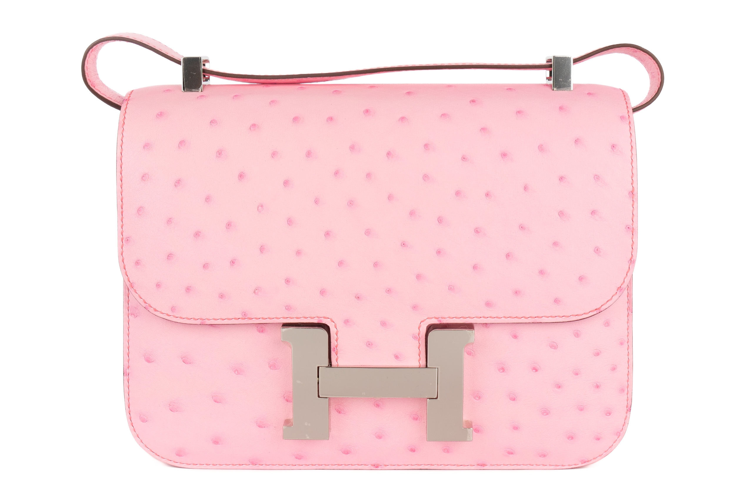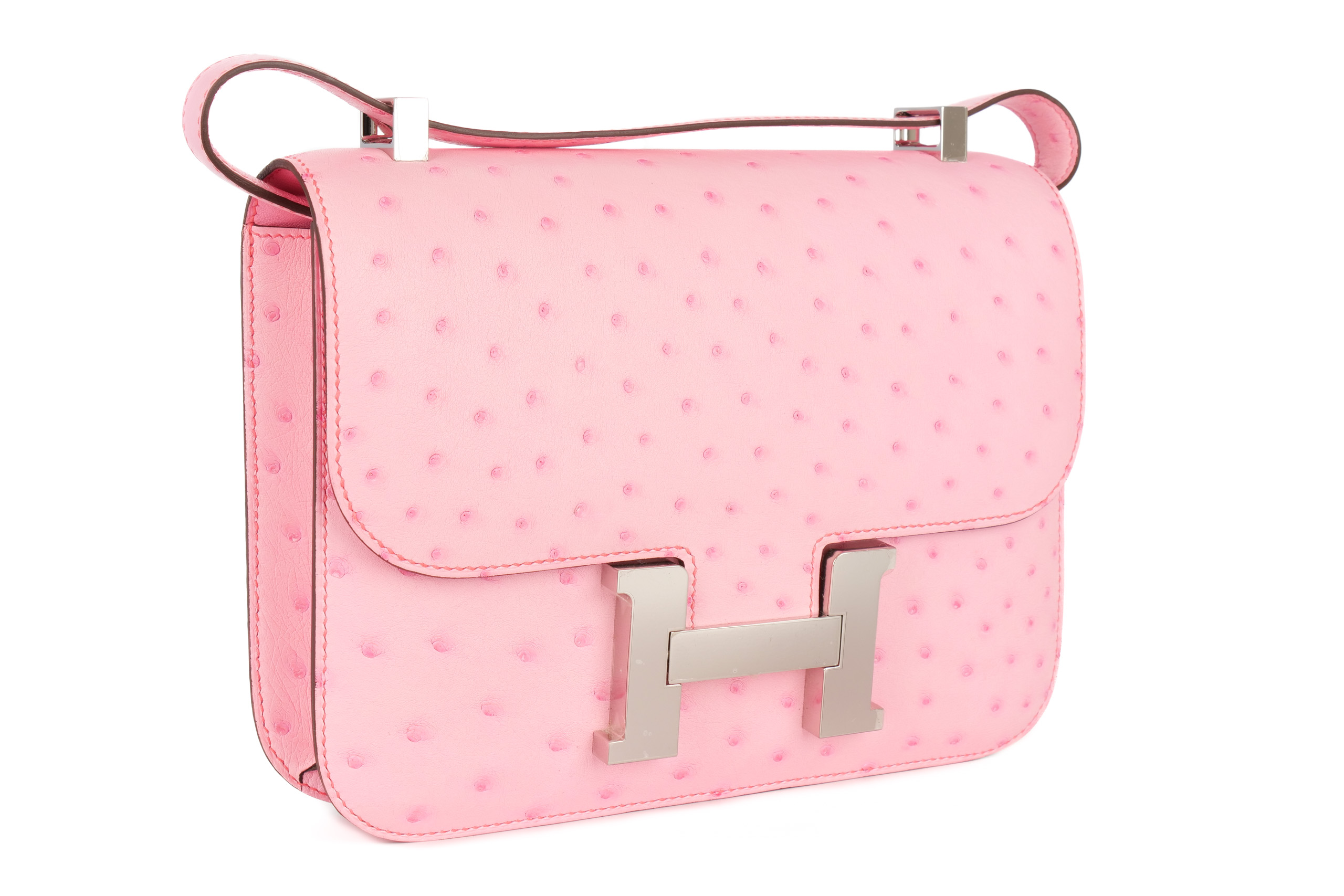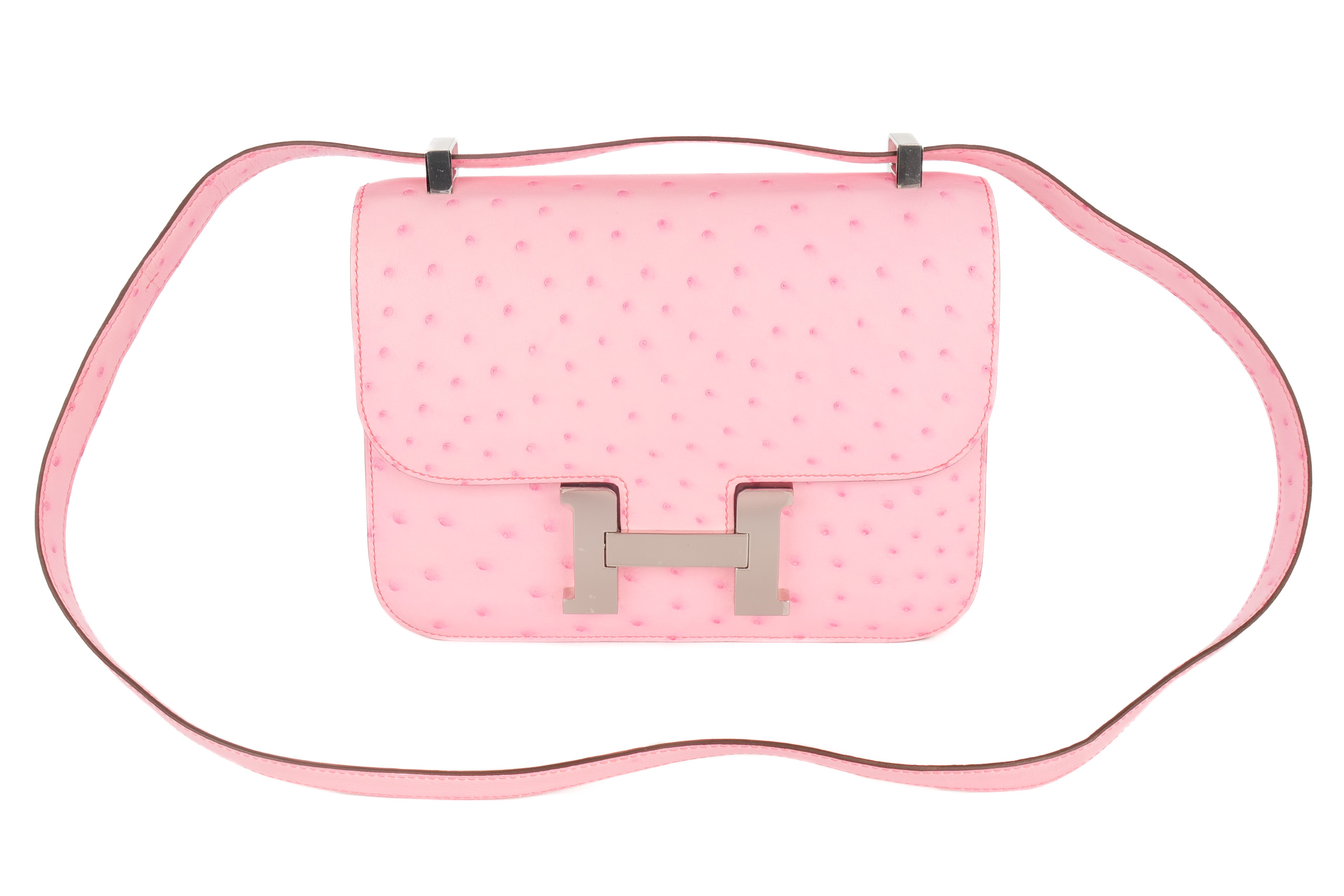 Hermès Constance 24 Rose Bubblegum Ostrich Palladium Hardware / W Stamp 2024, Brand New
