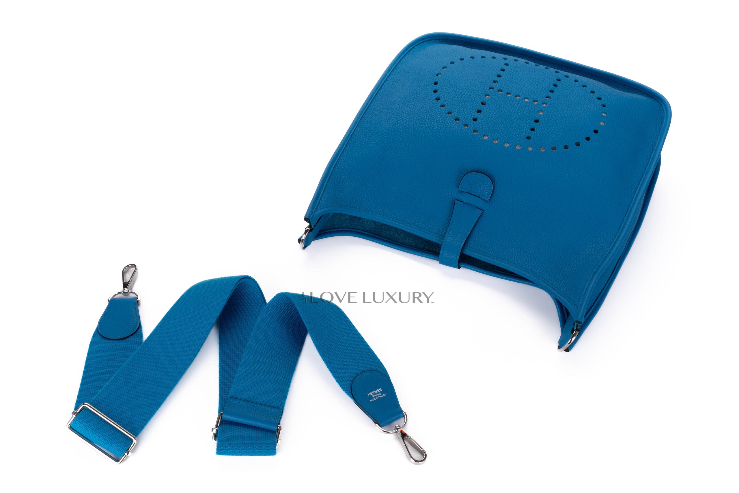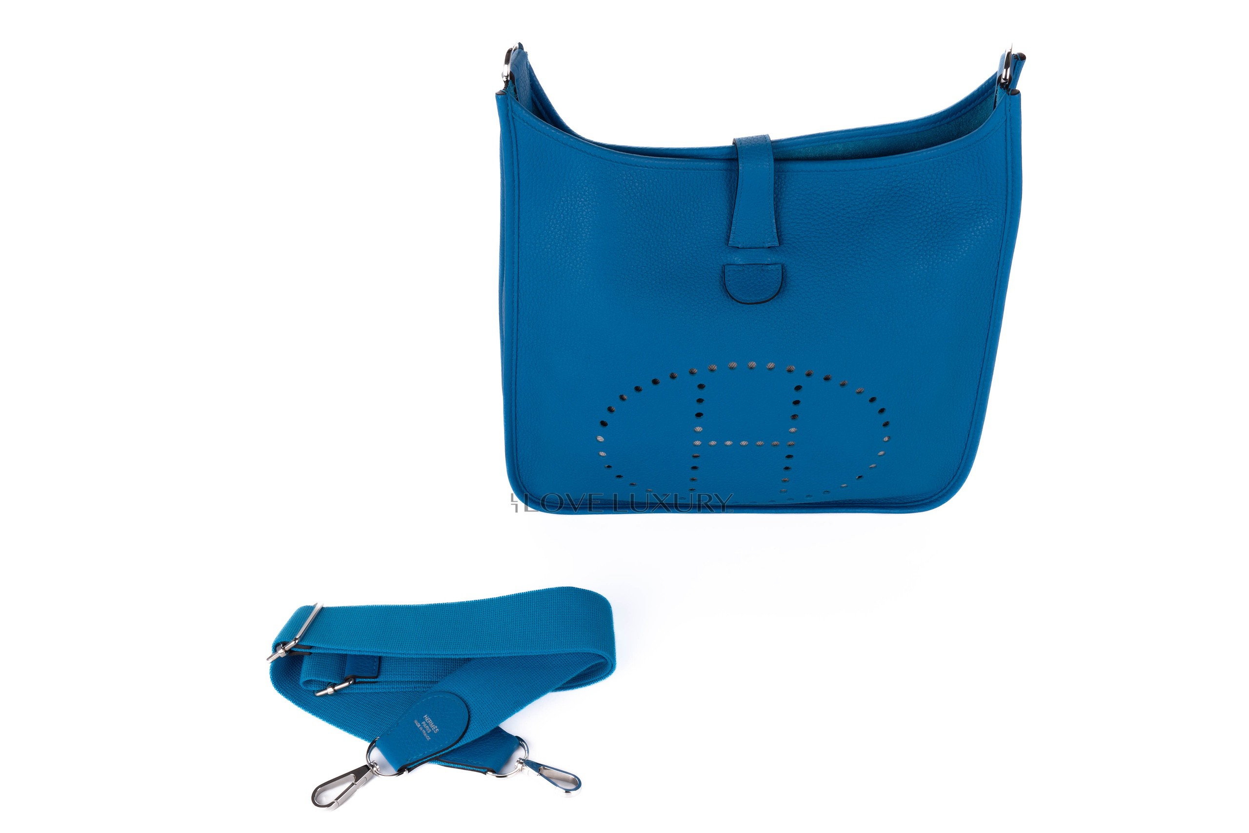 Hermès Evelyne 29 Bleu Zanzibar Clemence Palladium Hardware / A stamp 2017 Pre-Loved condition