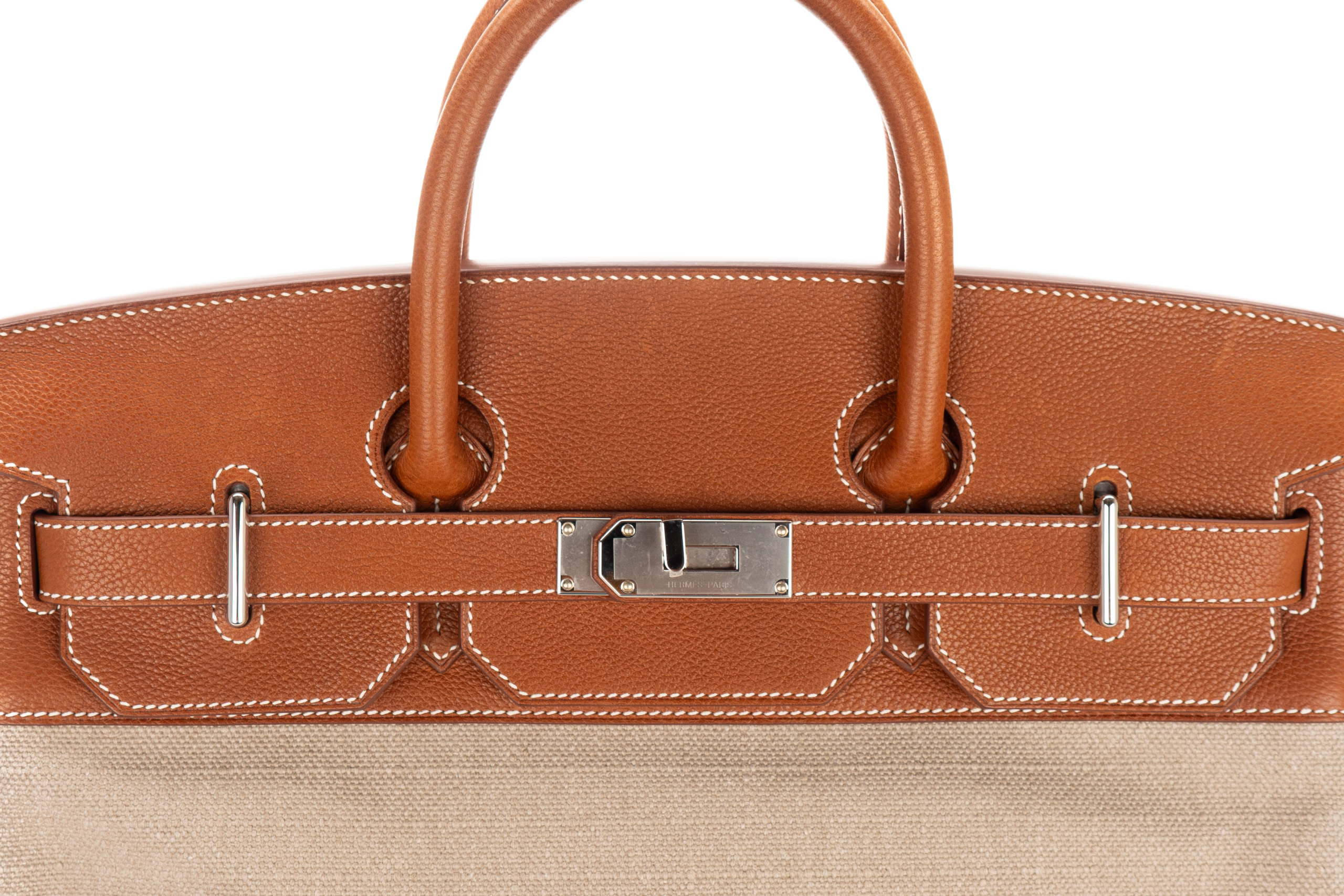 Hermès HAC 40 Barenia Faubourg Toile Palladium Hardware / K Stamp 2025, Brand New