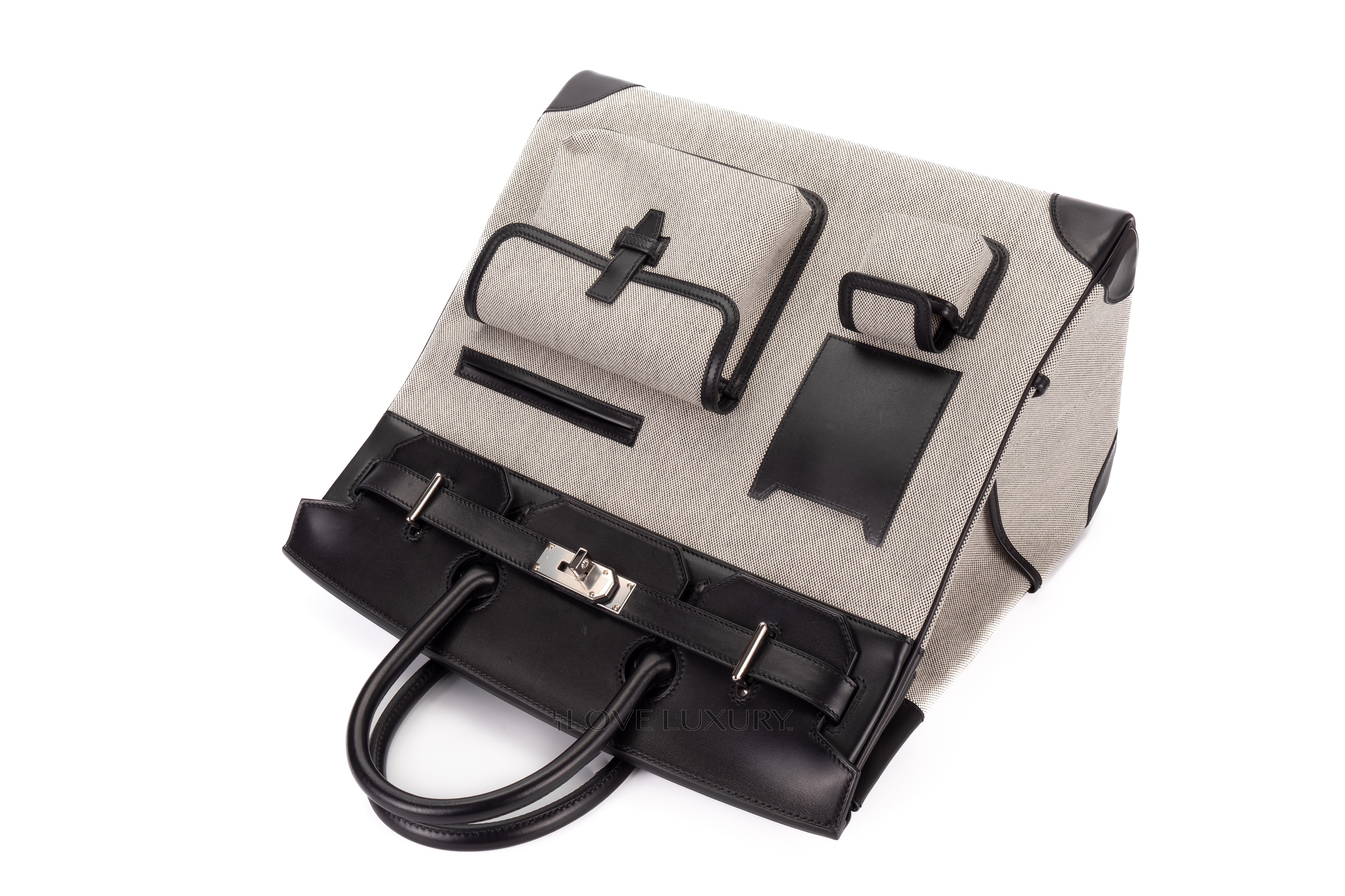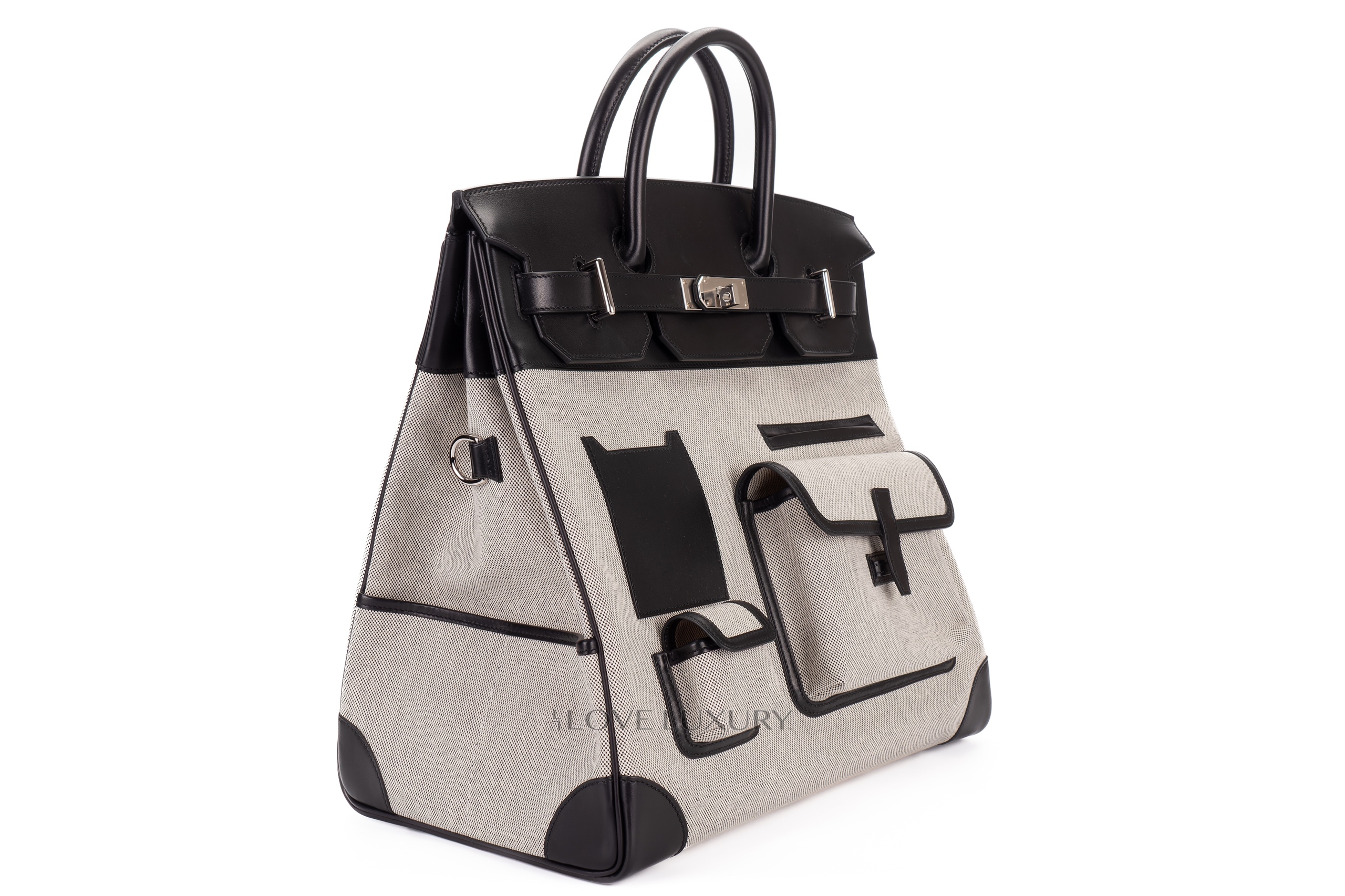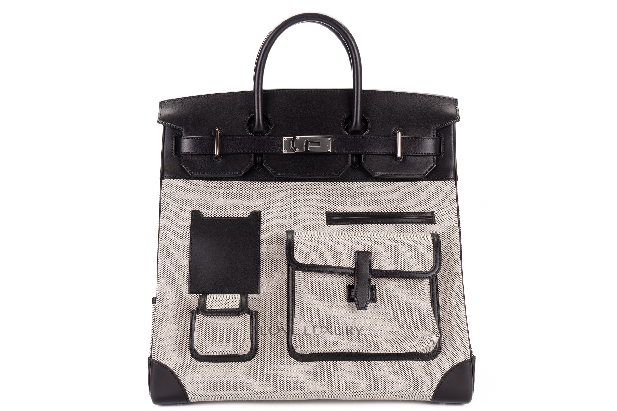 Hermès HAC 40 Black Swift Canvas Palladium Hardware