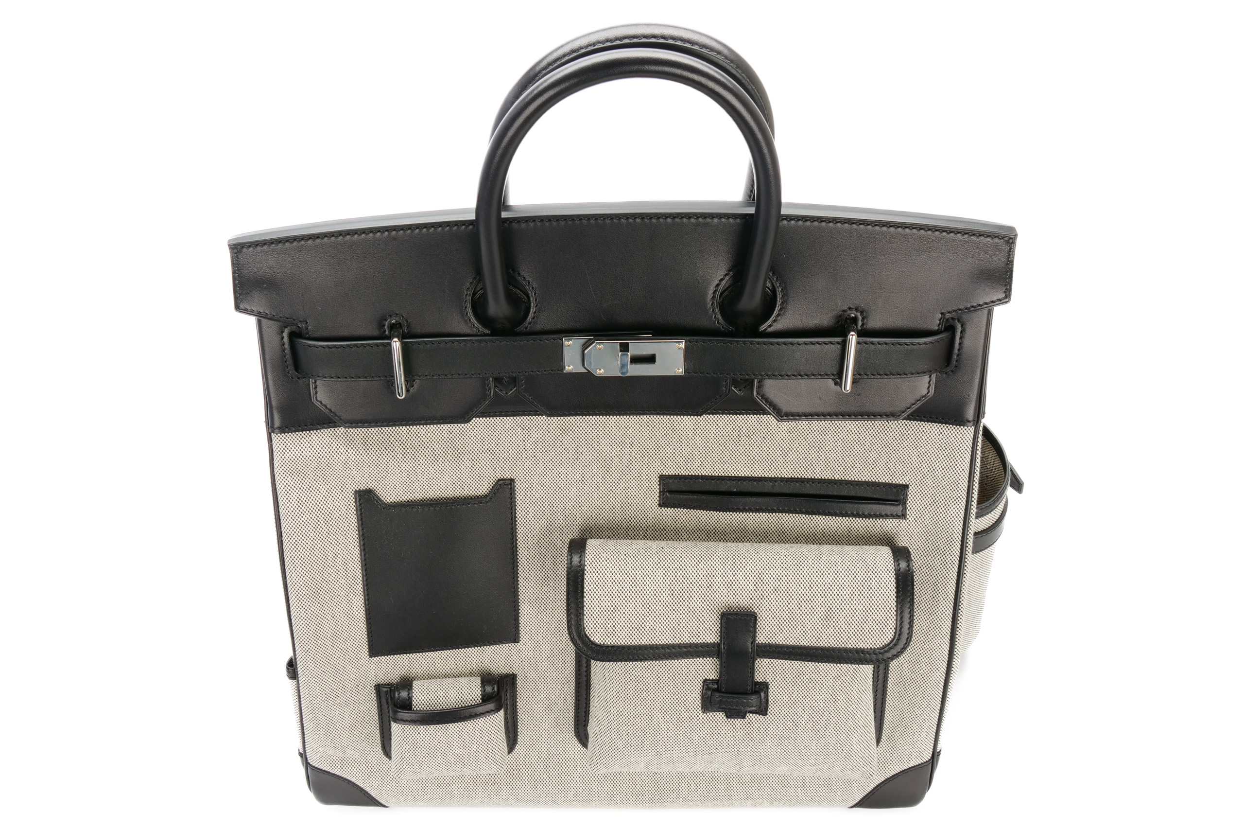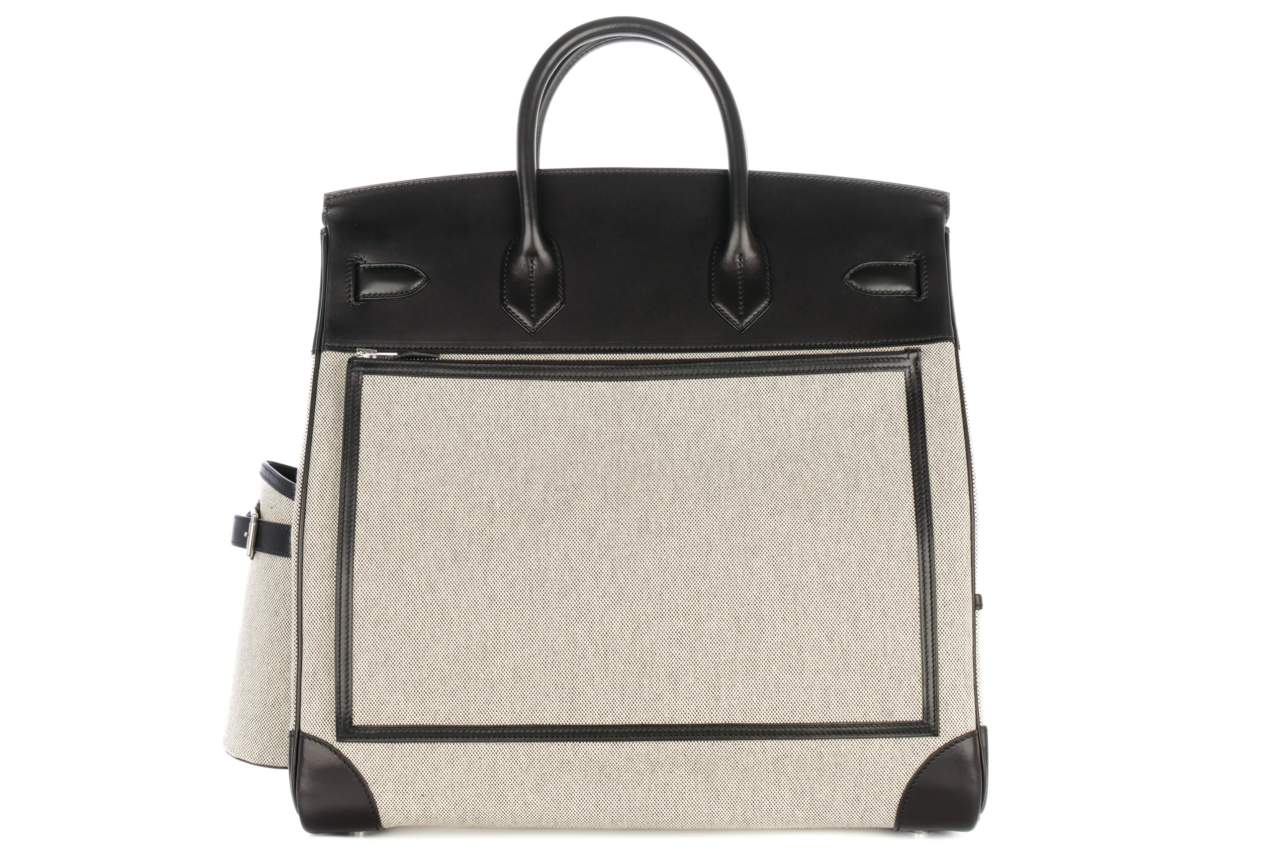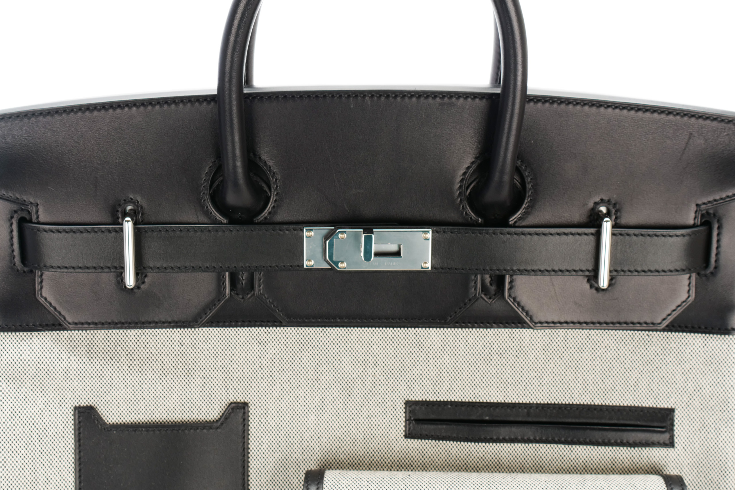 Hermès HAC 40 Cargo Noir/Black Swift/Canvas Palladium Hardware / U Stamp 2023, Brand New