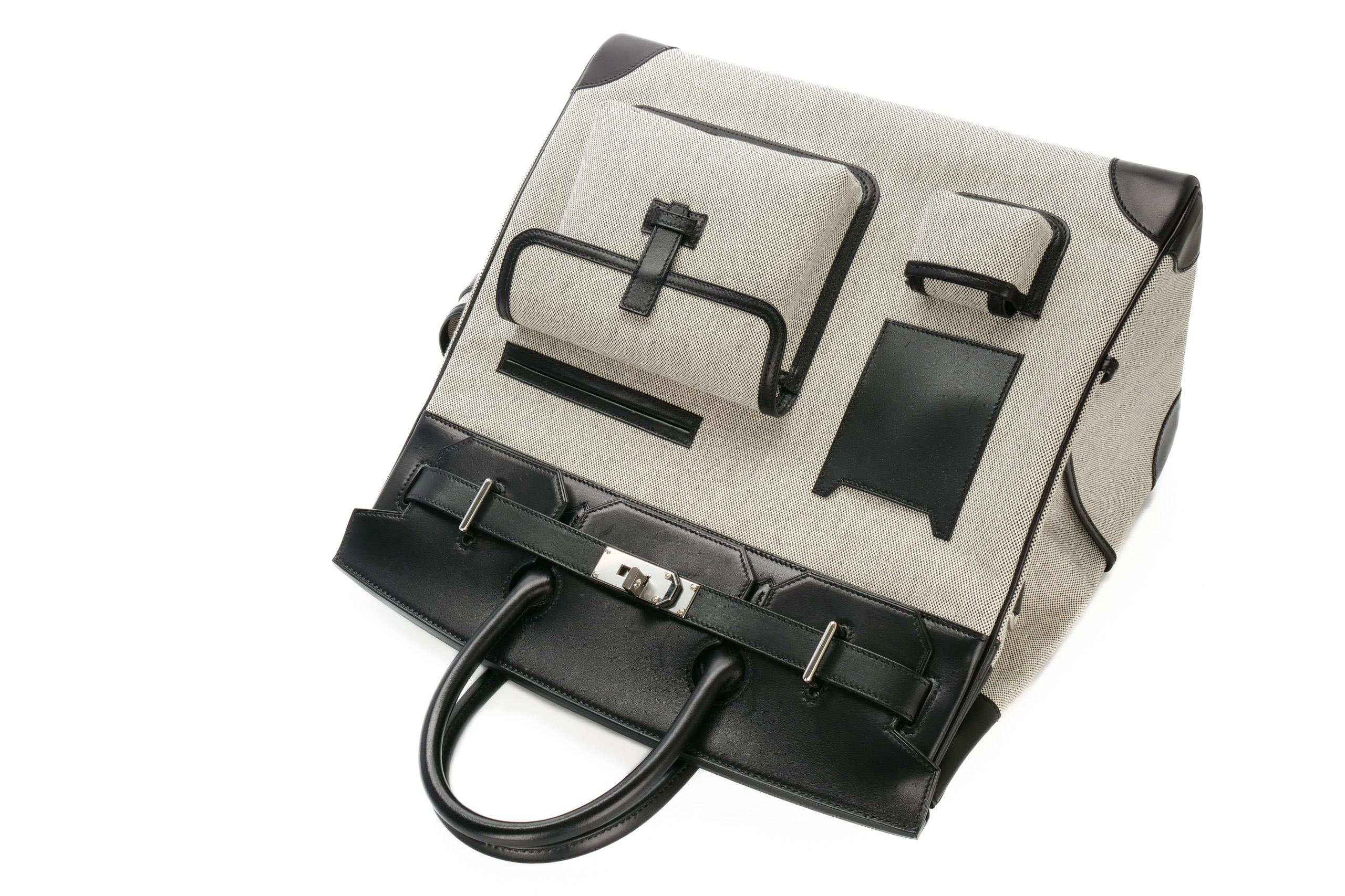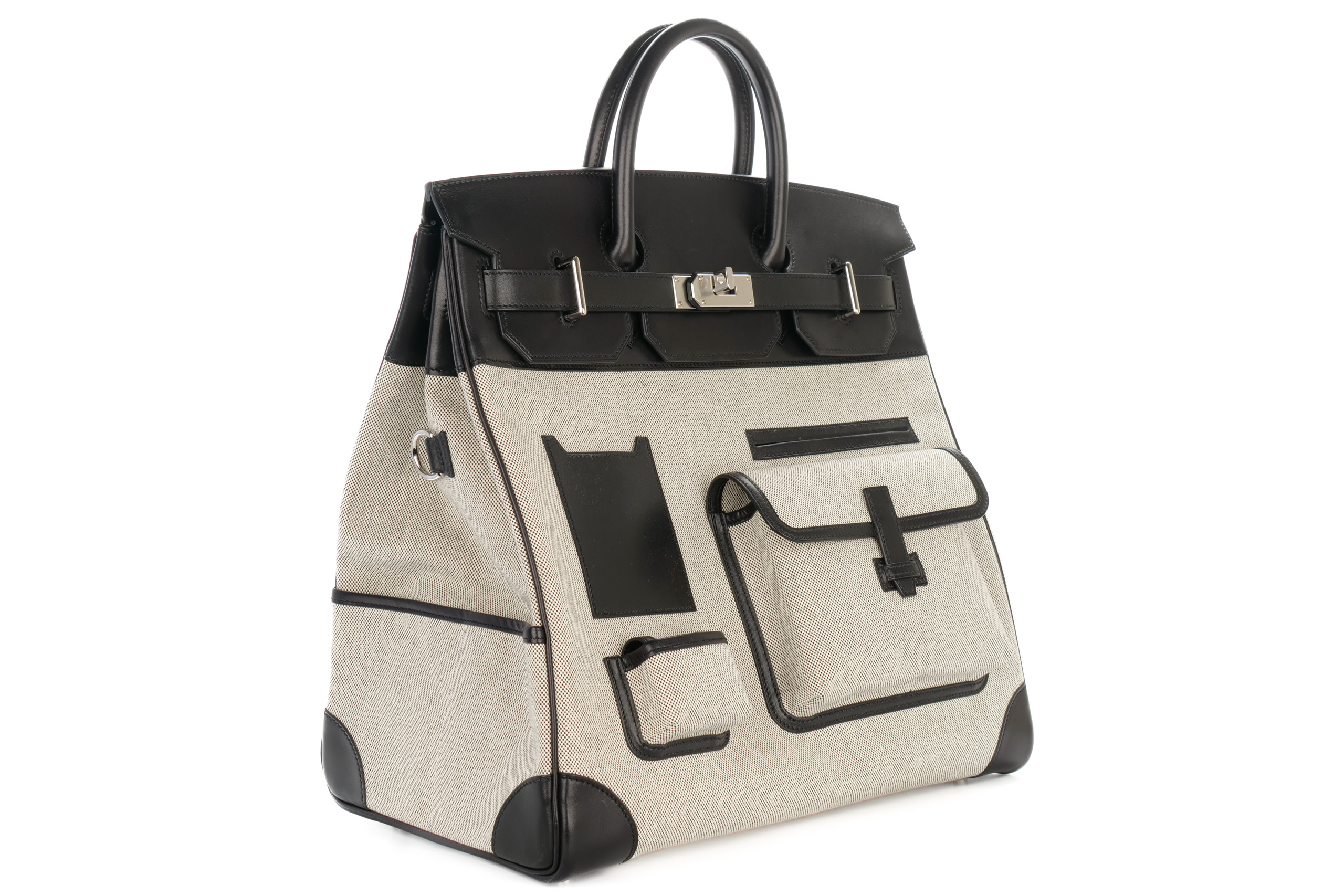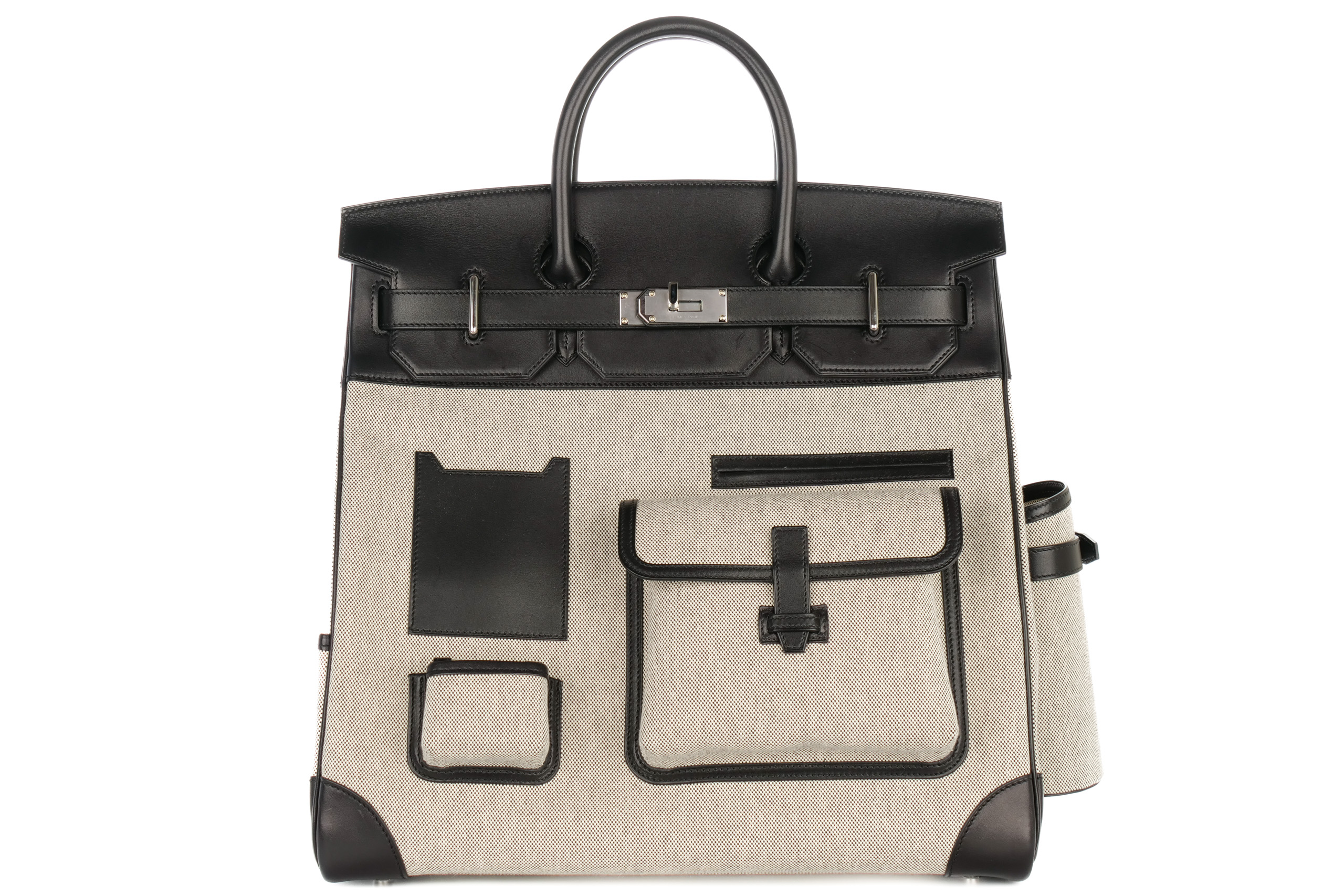 Hermès HAC 40 Cargo Noir/Black Swift/Canvas Palladium Hardware / U Stamp 2023, Brand New