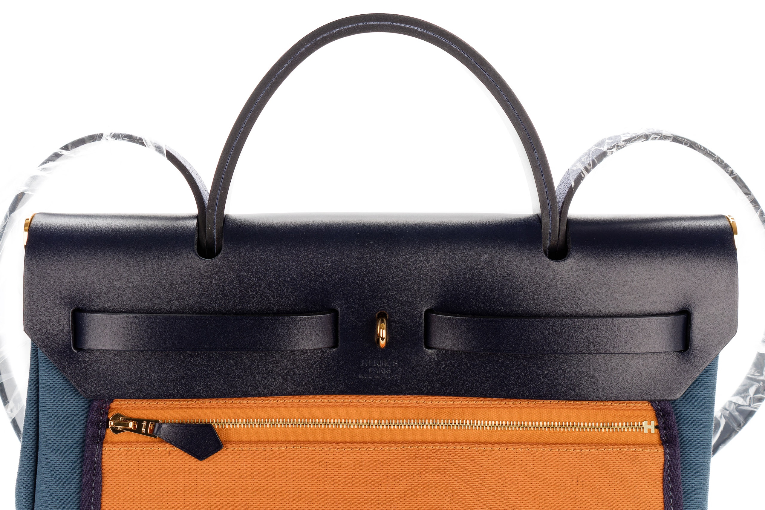 Hermès Herbag 31 Navy/Bleu/Sesame Toile Swift Gold Hardware